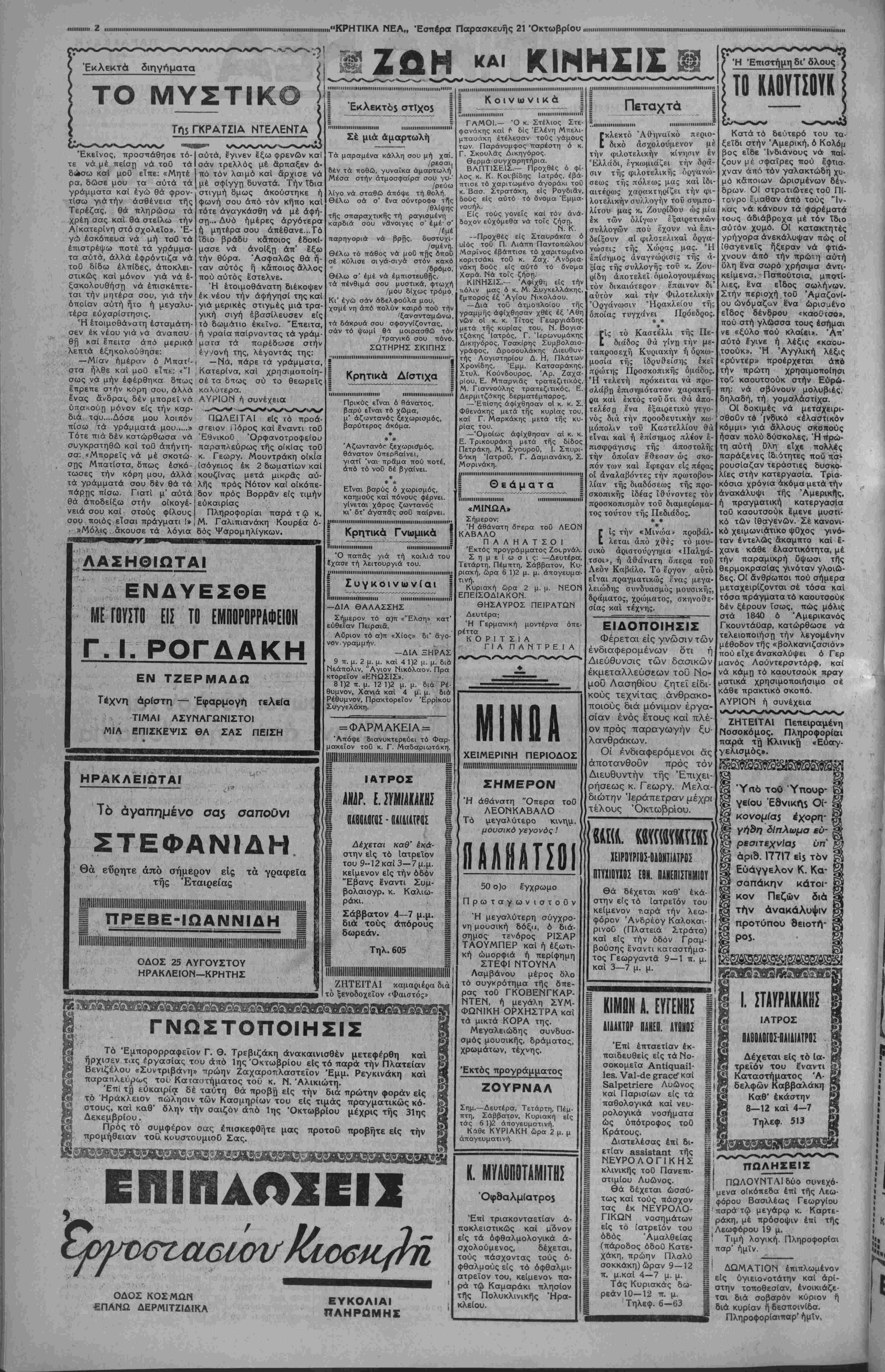 ΑΘΗΝΑΙ21 —10—38 |το0 άνταποκριτοθ