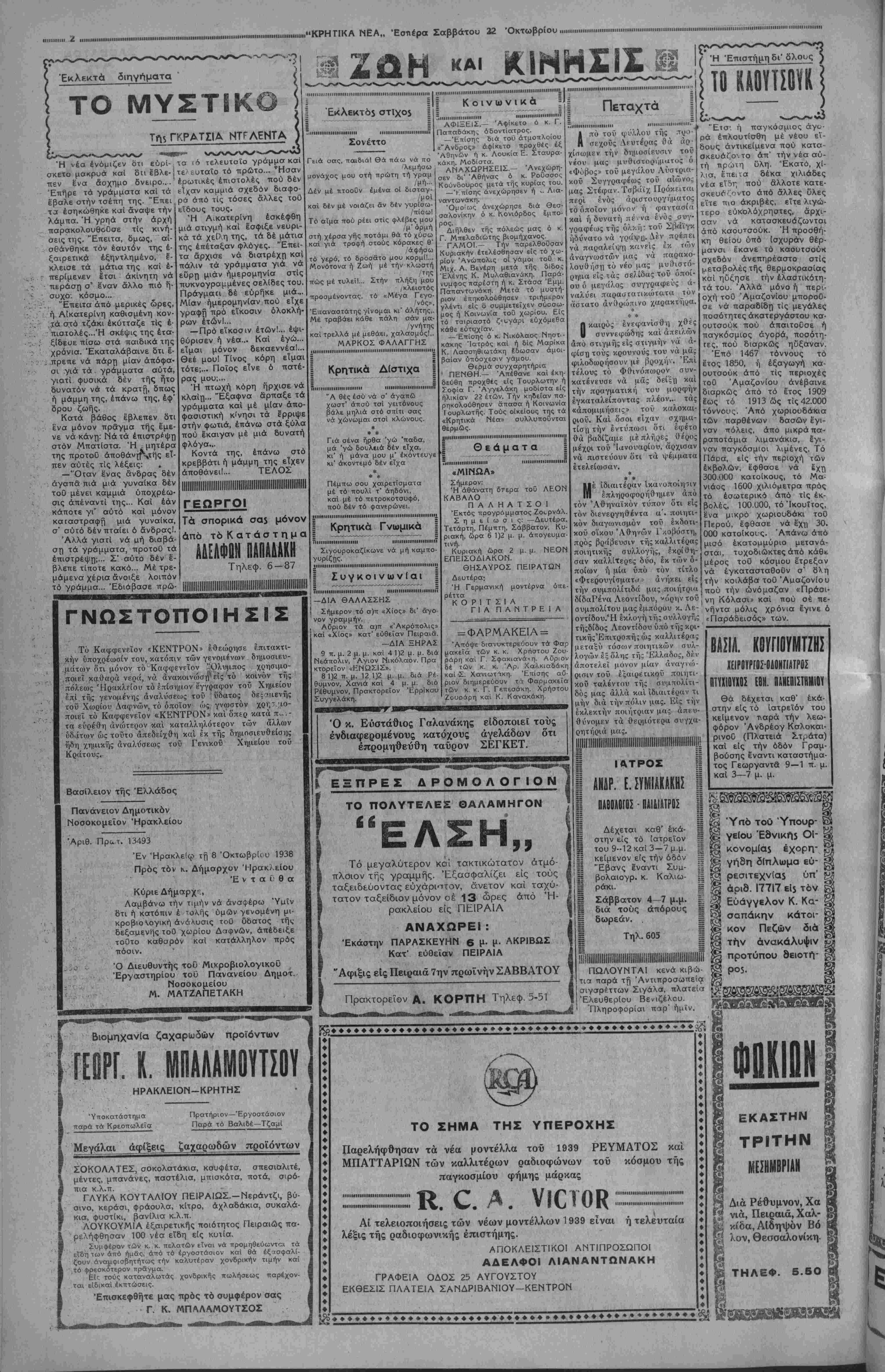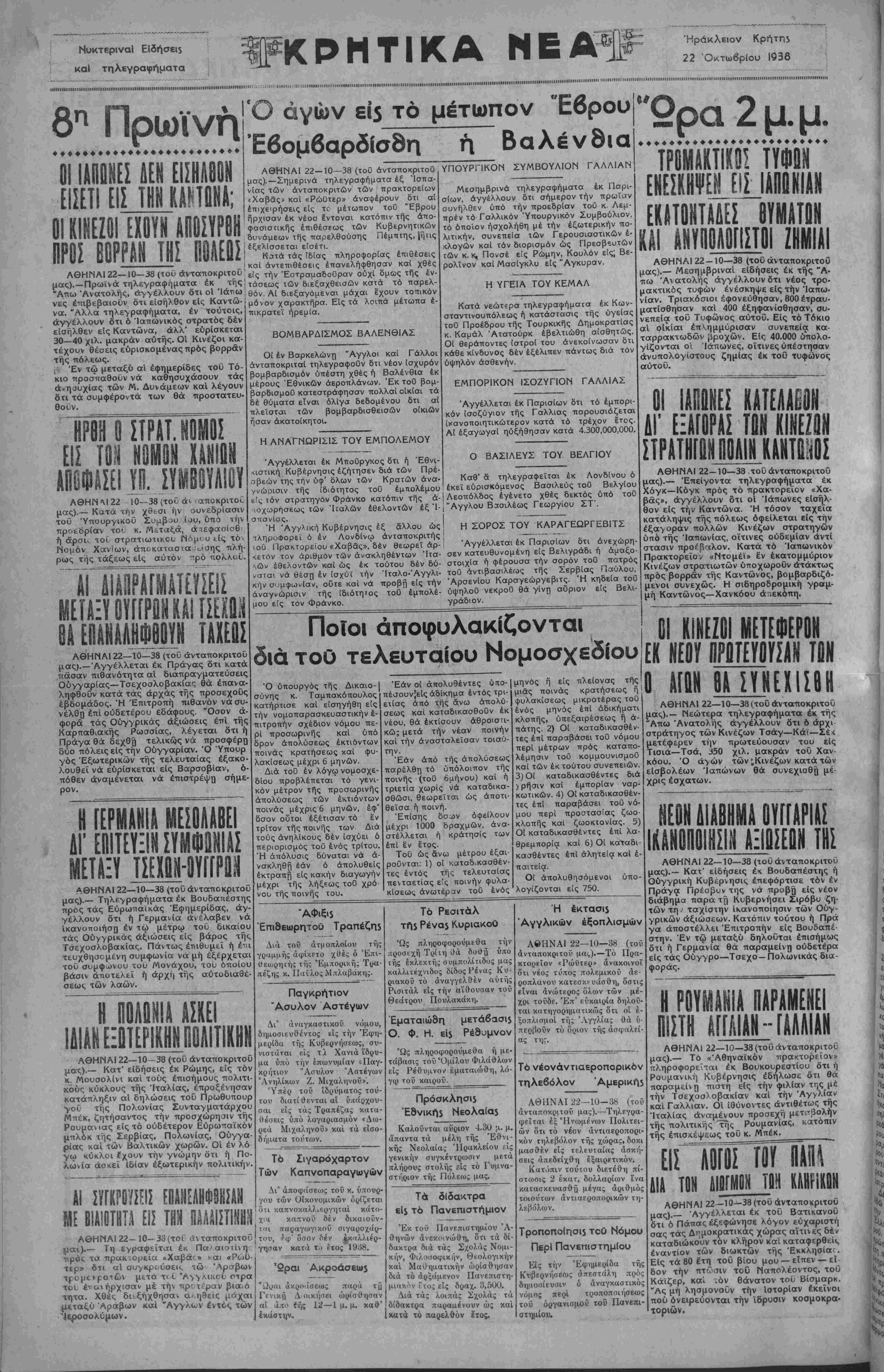 ΑΘΗΝΑΙ 22—10—38 (τοΰ