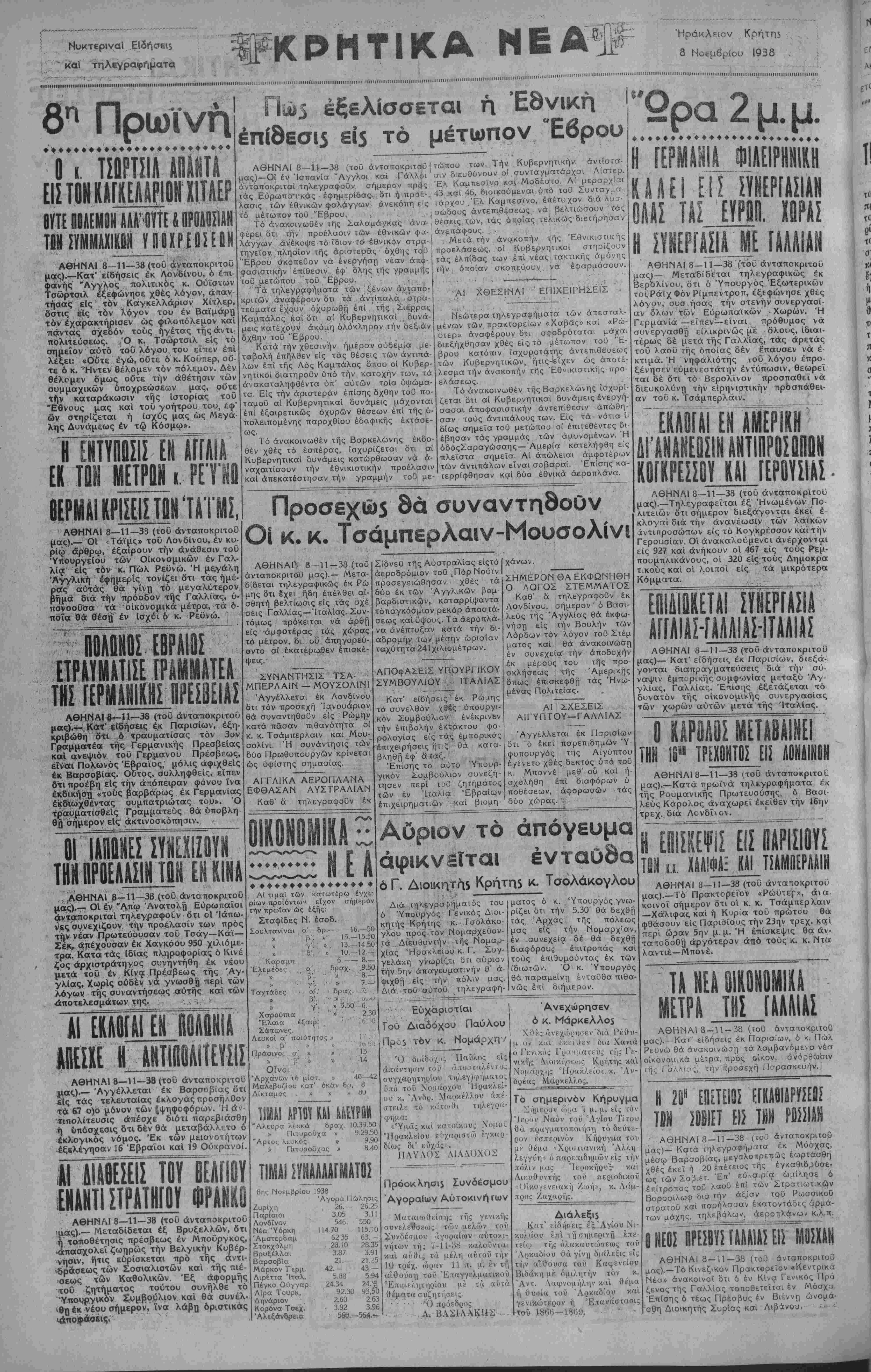 ΑΘΗΝΑΙ 8—11—38 (τοϋ άνταποκριτοΰ