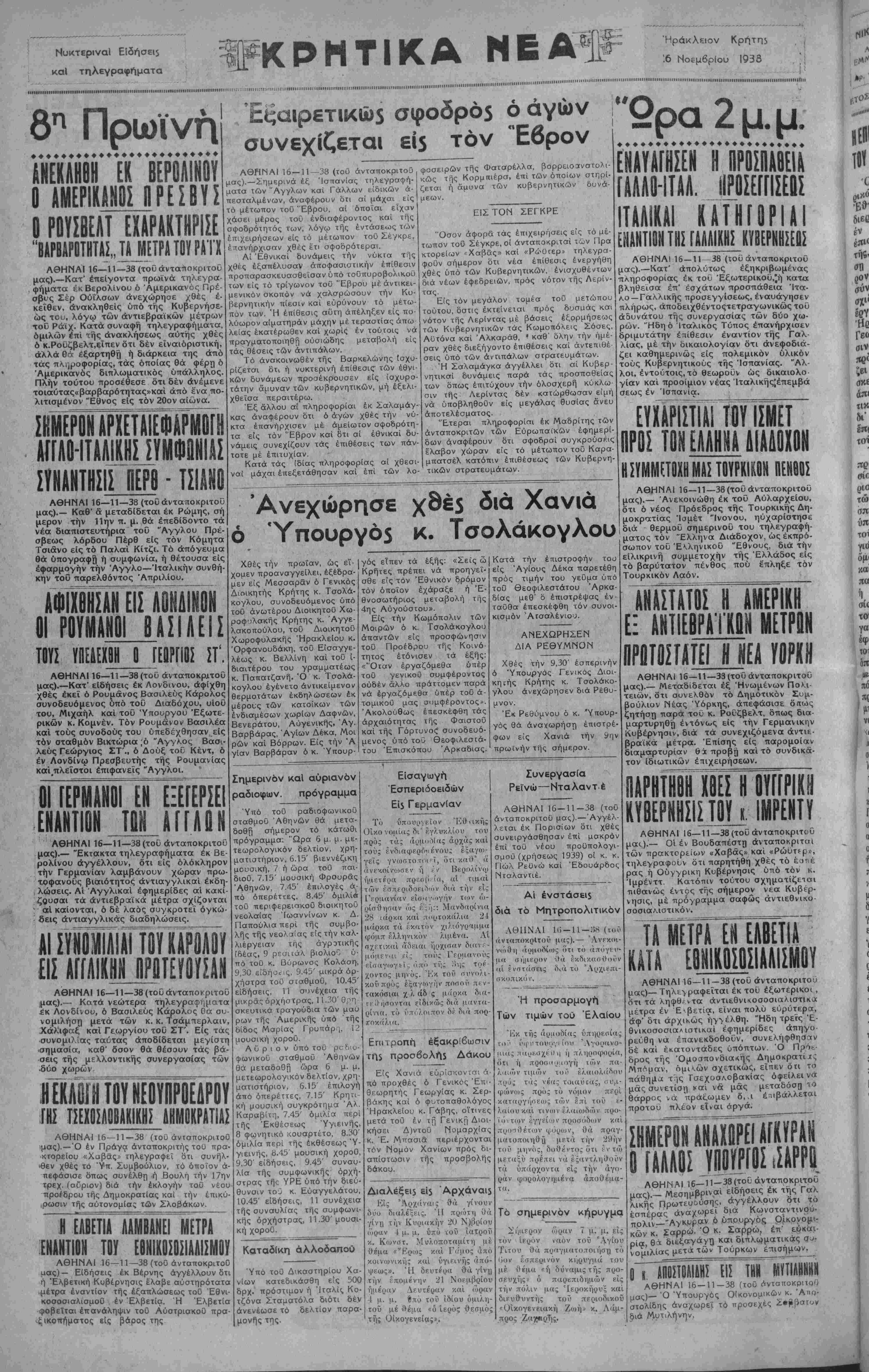 ΑΘΗΝΑΙ 16—11—38 (τοθ άνταποκριτοθ