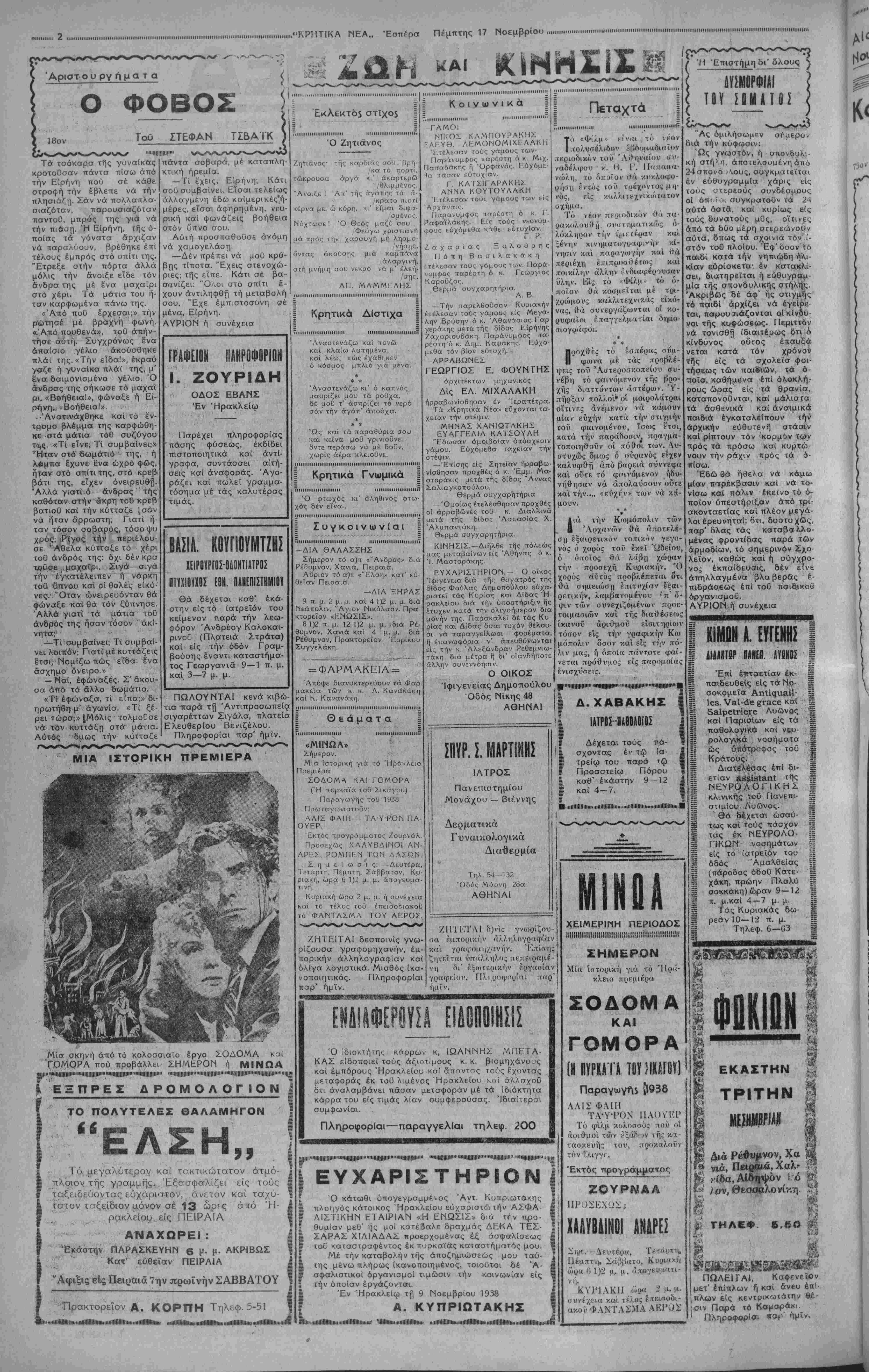 ΑΘΗΝΑΙ 17—11—38(τοΰ άντατΐοκριτοΰ