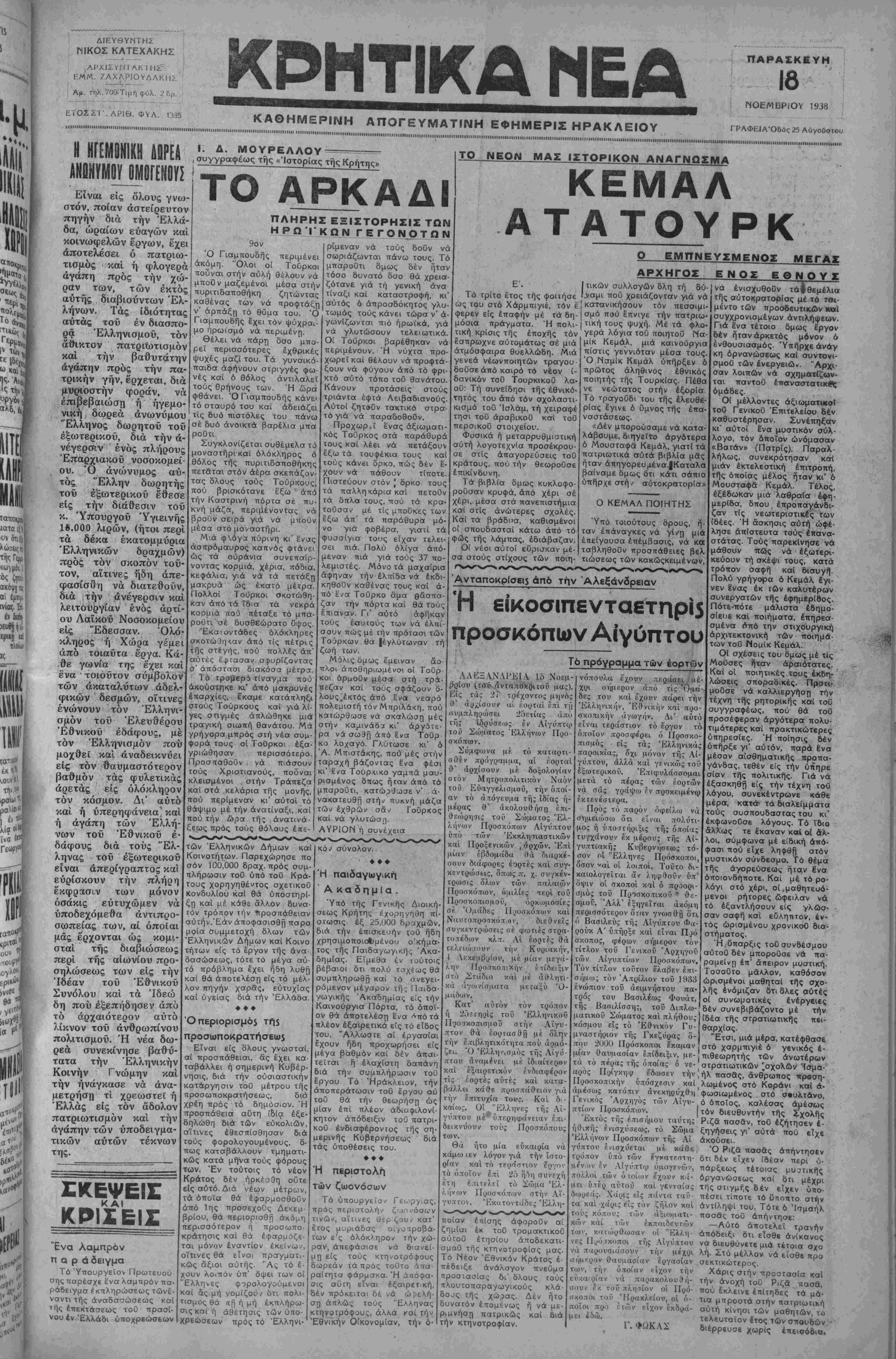 ΑΘΗΜΑΙ 18-11—38 (τοθ άνταποκριτι Ο