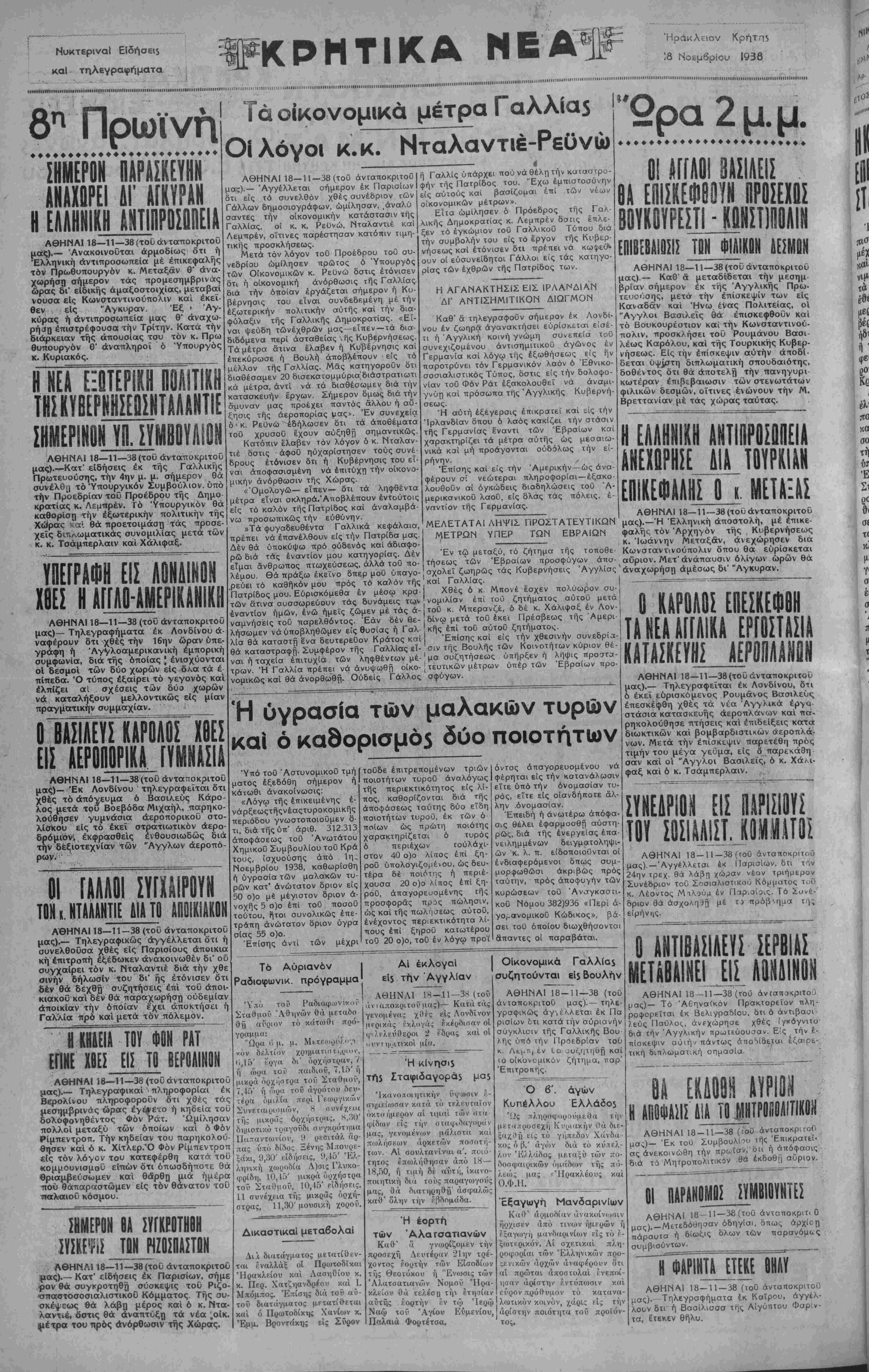 ΑΘΗΝΑΙ 18-11—38 (ιοθ άνταποκριτοθ