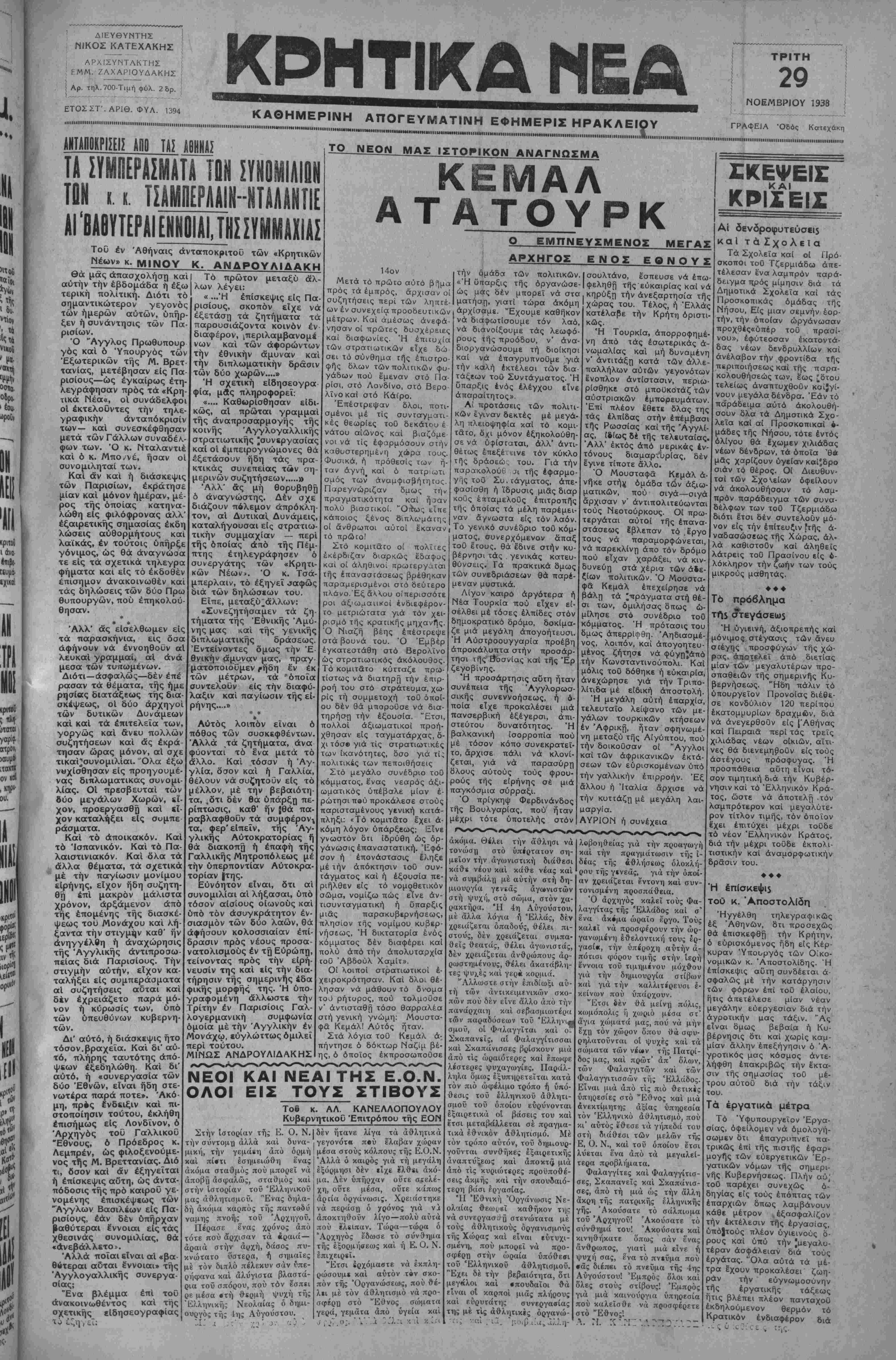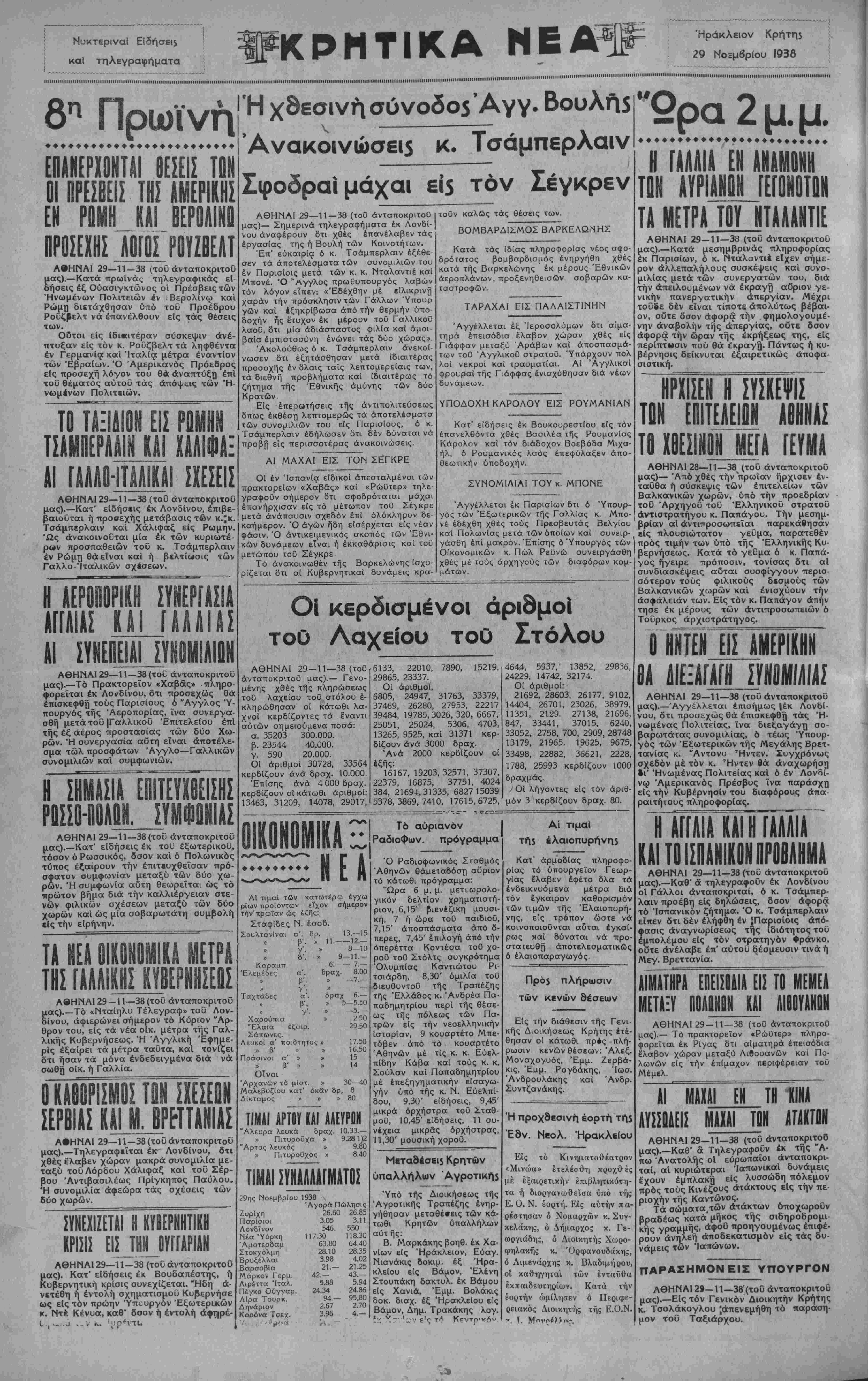 ΑΘΗΝΑΙ 29—11—38 (τοΰ άνταποκριτοΰ