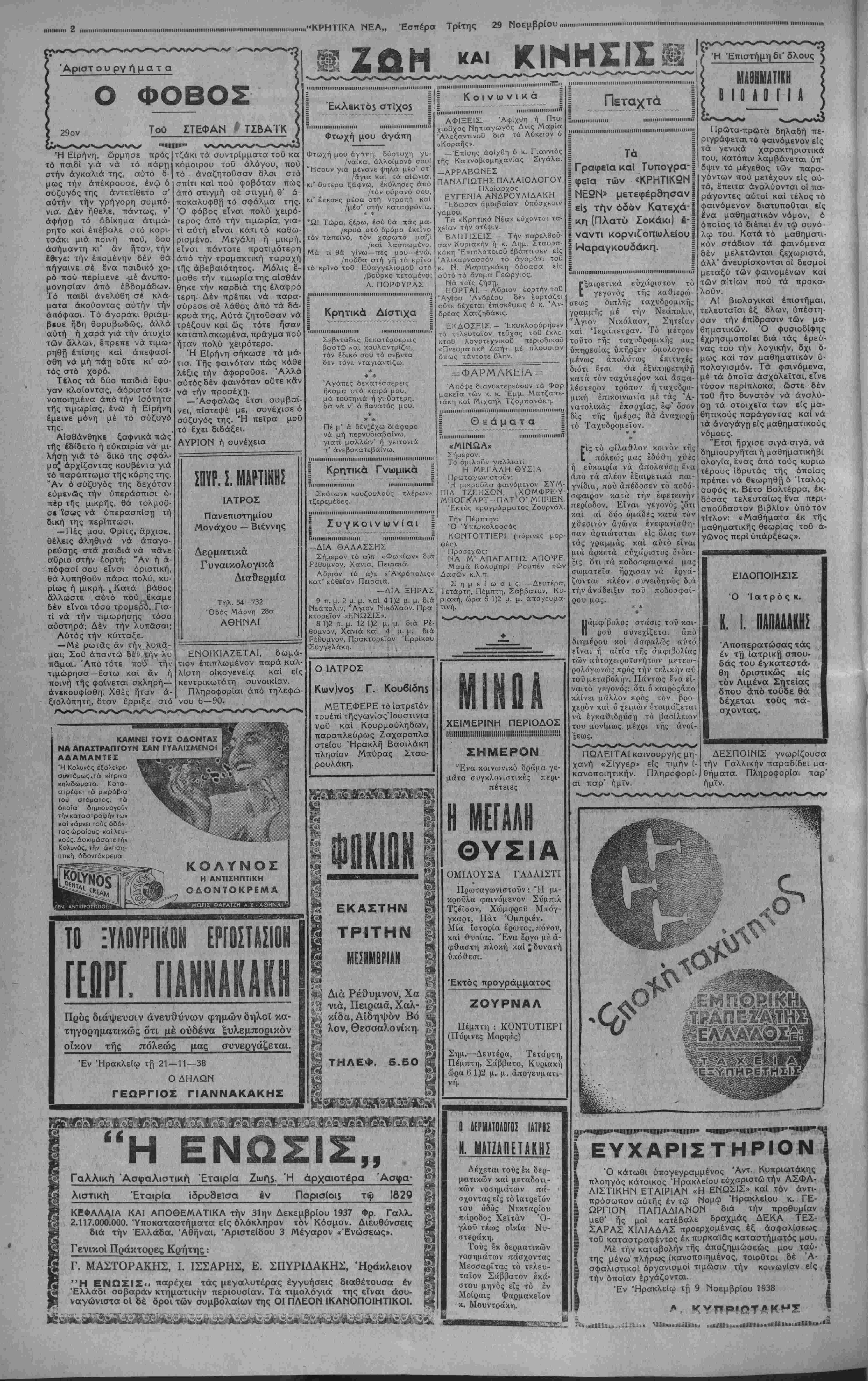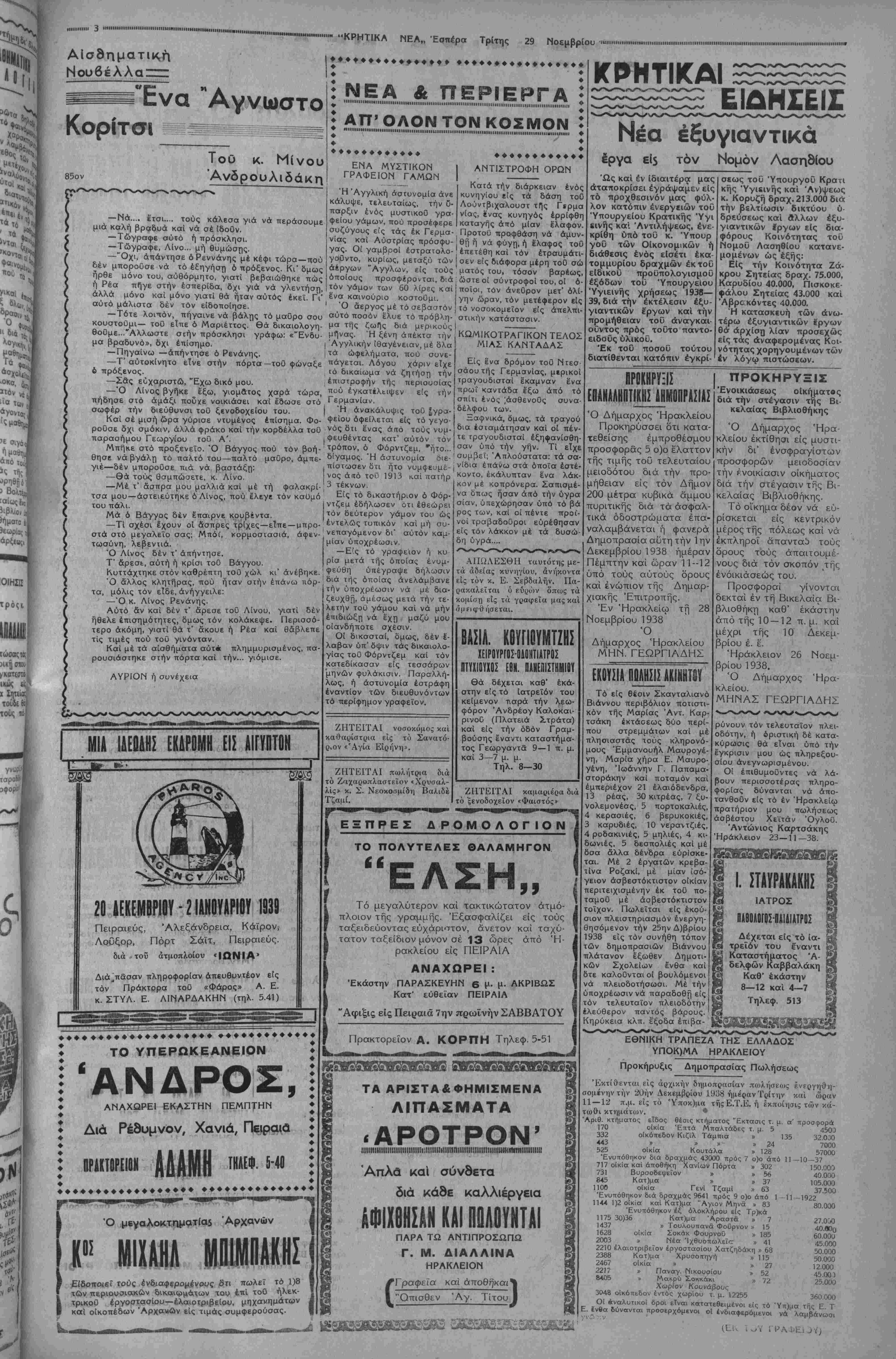 ΑΘΗΝΑΙ 29—11—38 (τοΰ άνταποκριτοθ