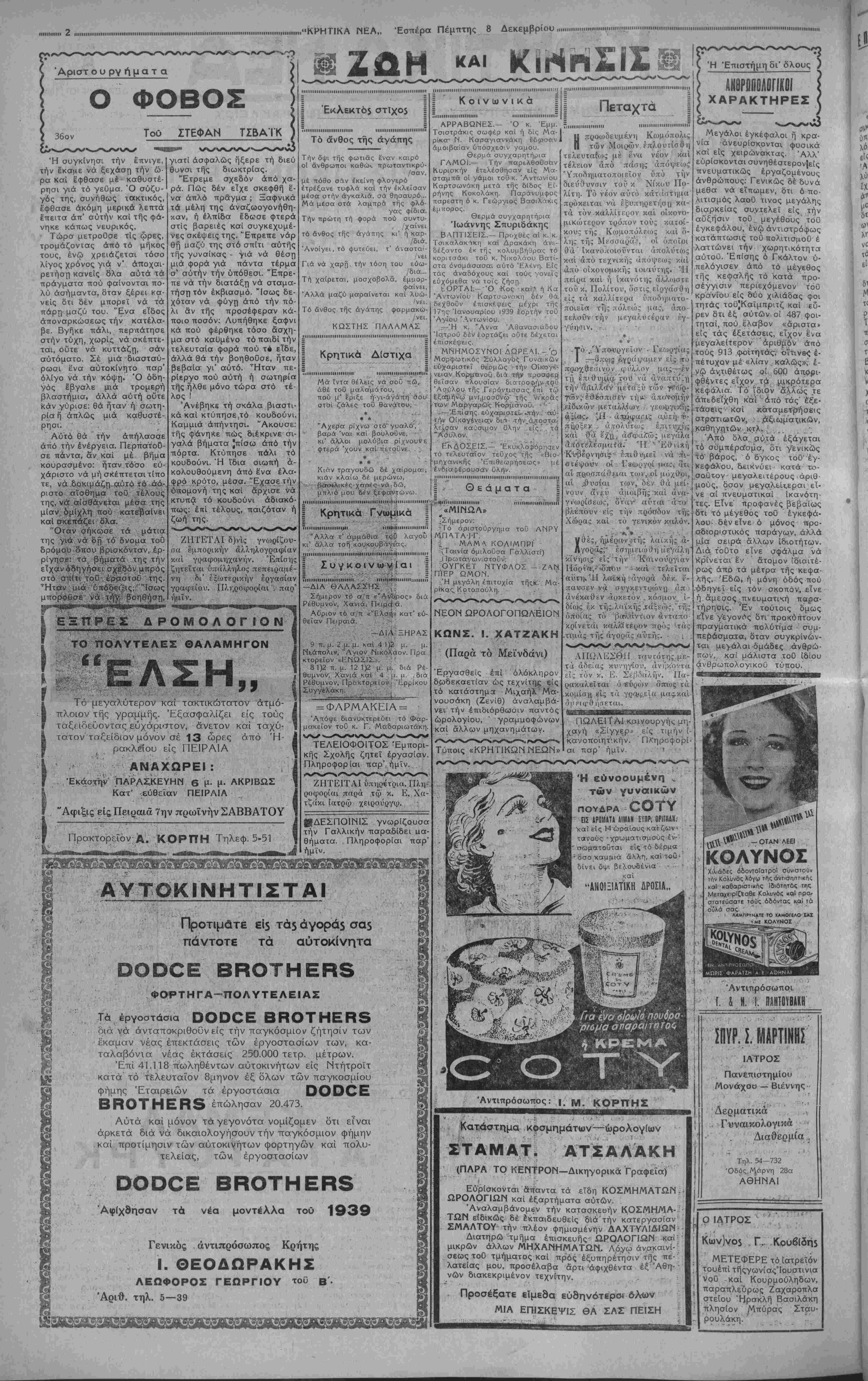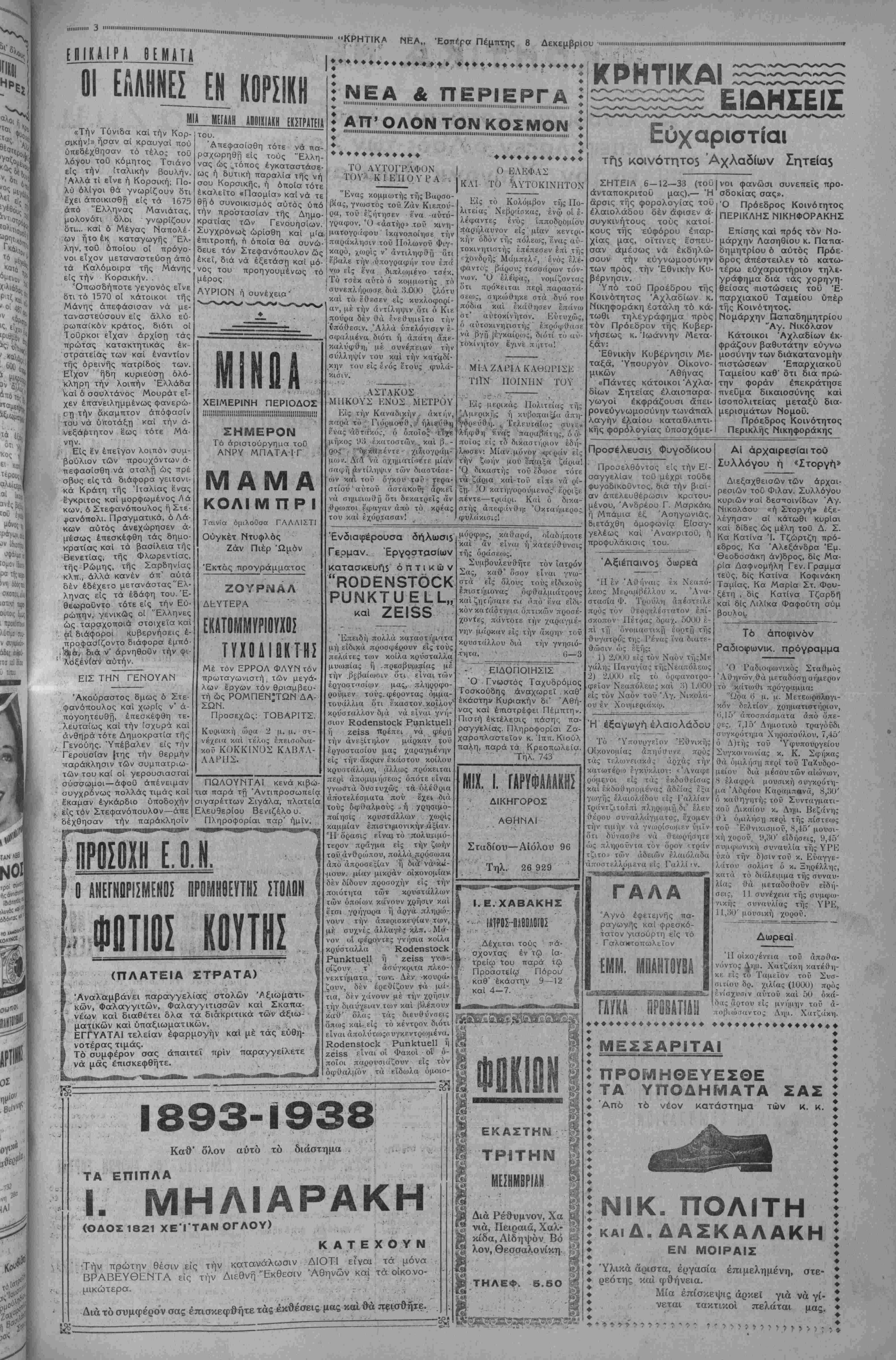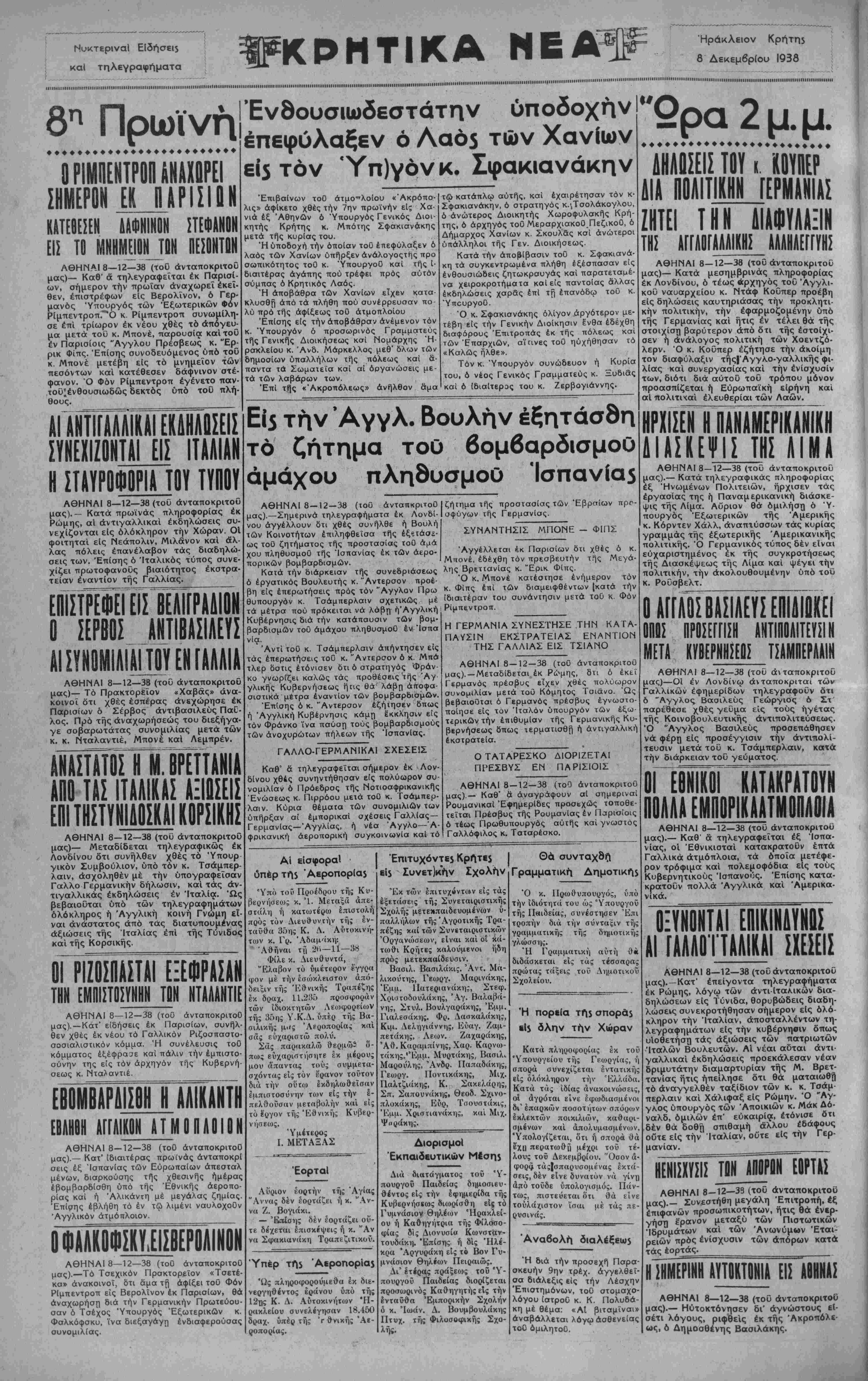 ΑΘΗΝΑΙ 8-12—38 (τοθ άνταποκριτοθ