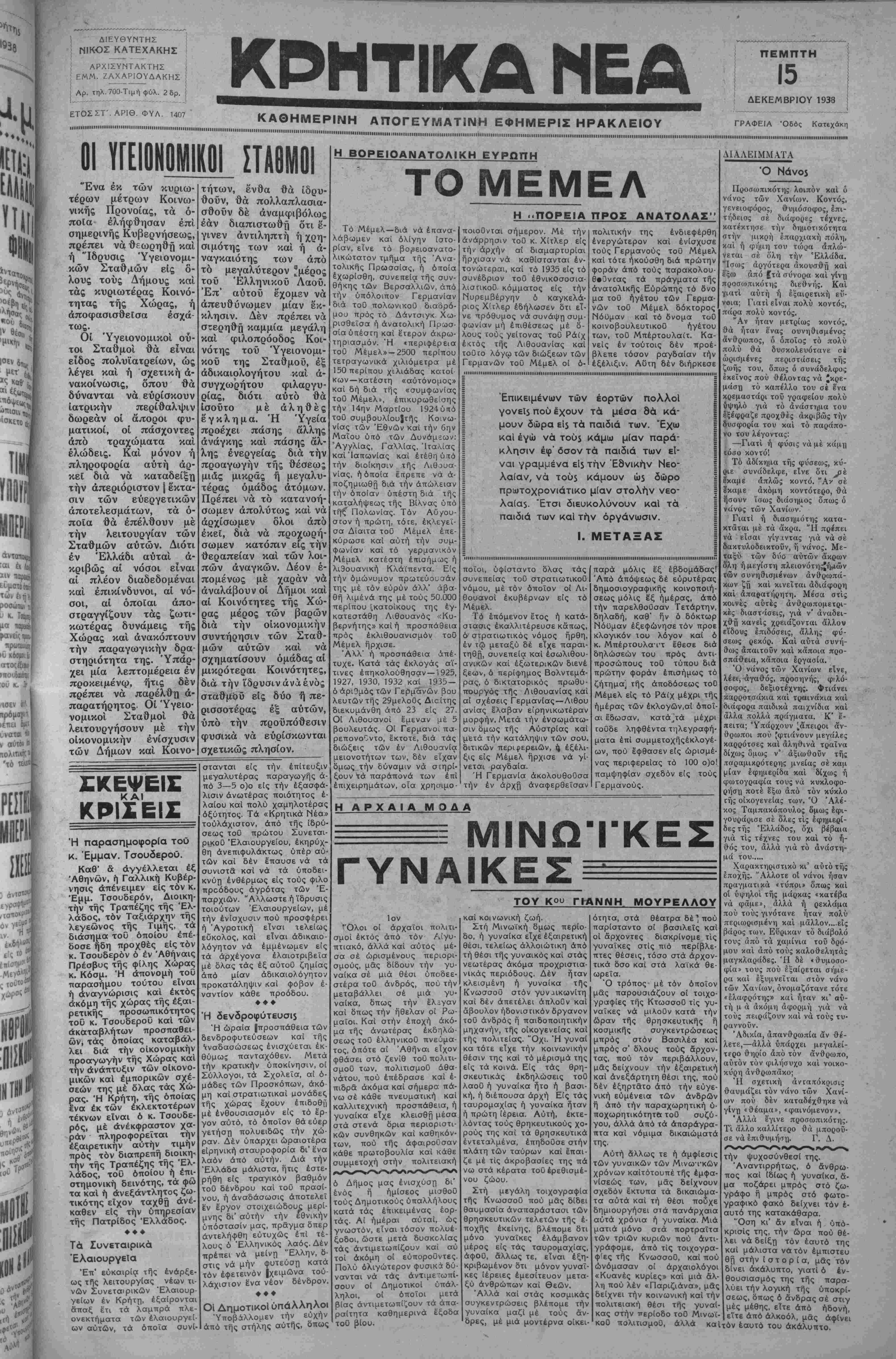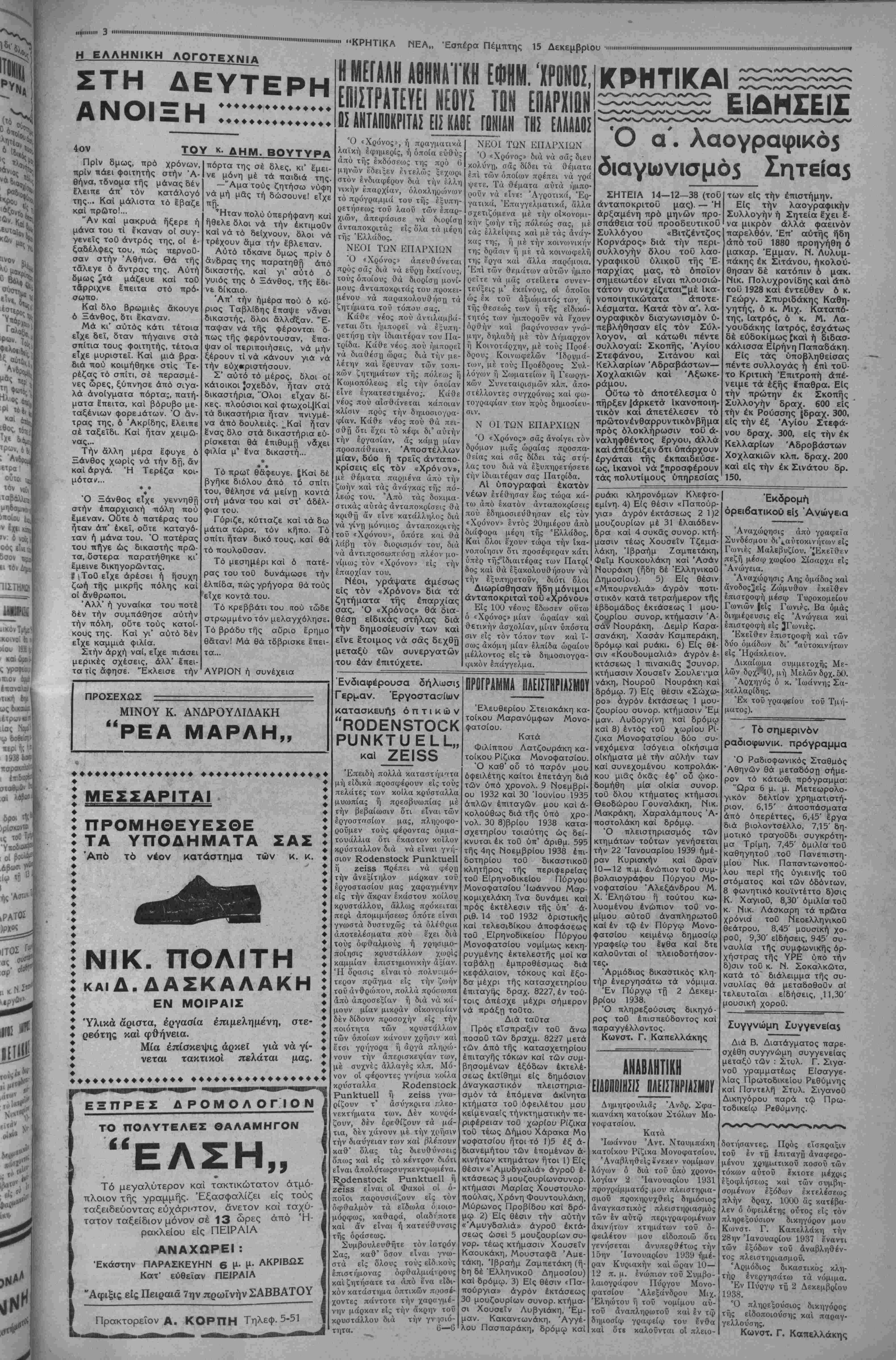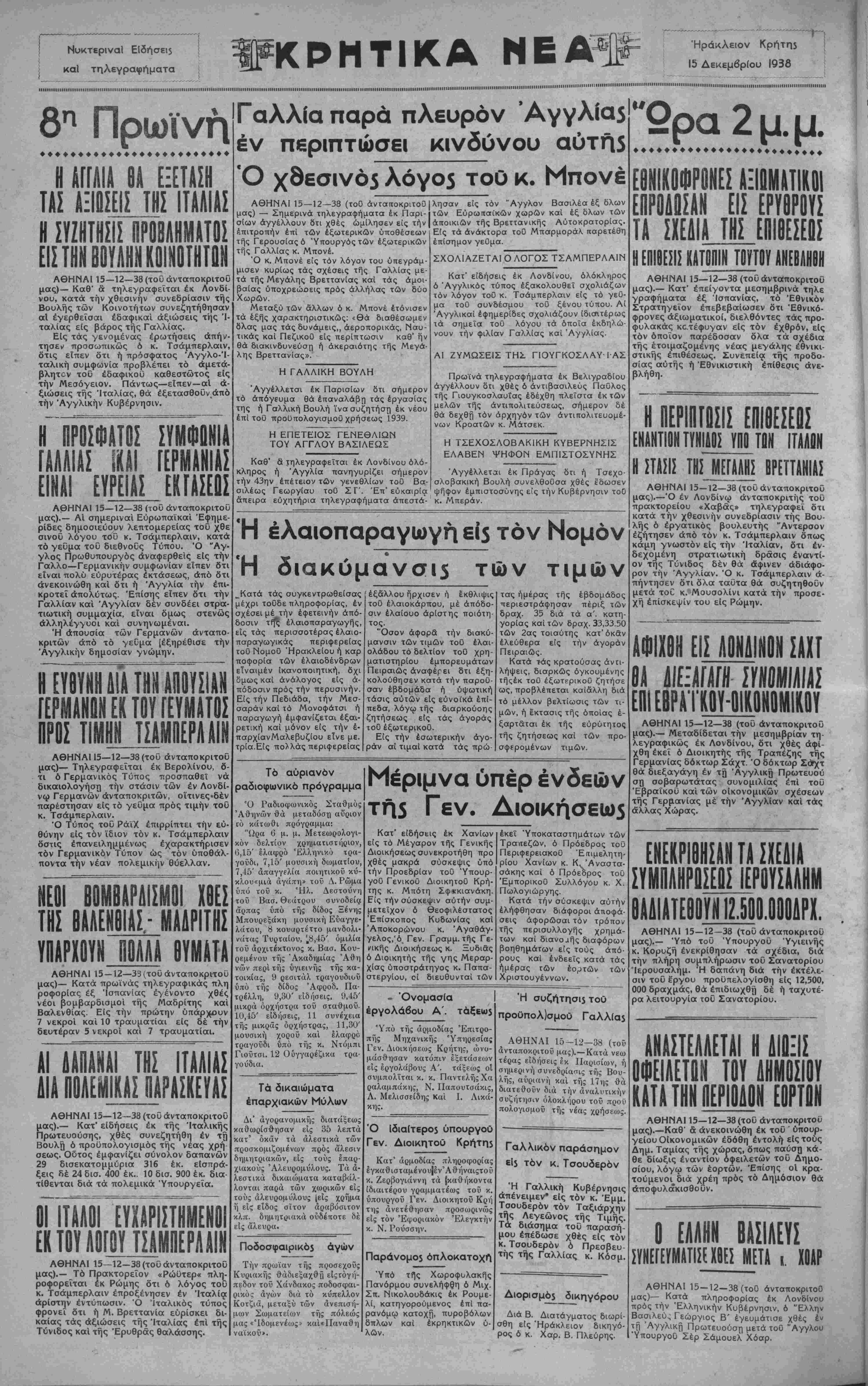 ΑΘΗΝΑΙ 15—12—38 (τού άνταποκριτοΰ