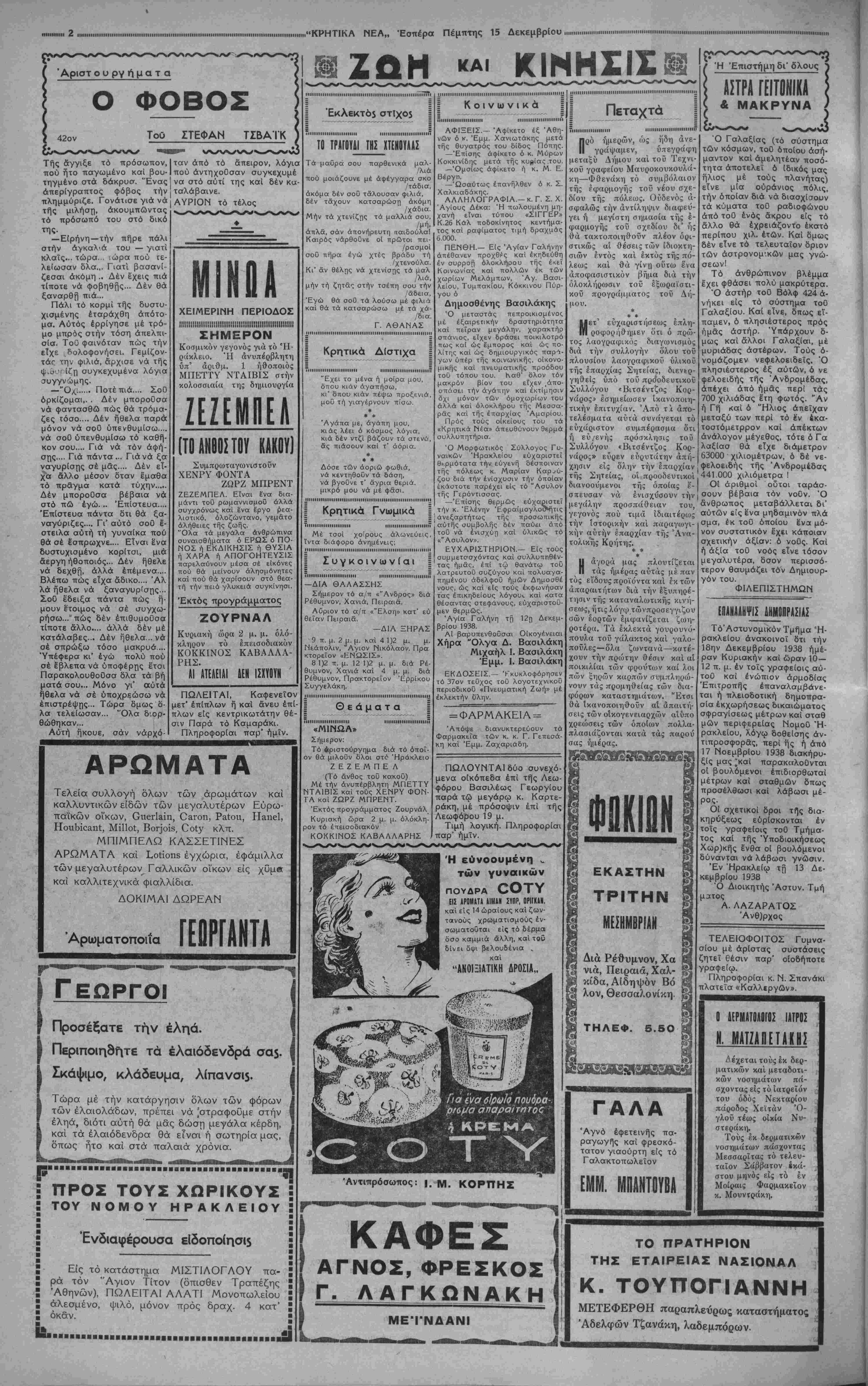 ΑΘΗΝΑΙ 15—12-38 (τοθ άνταποκριτοθ