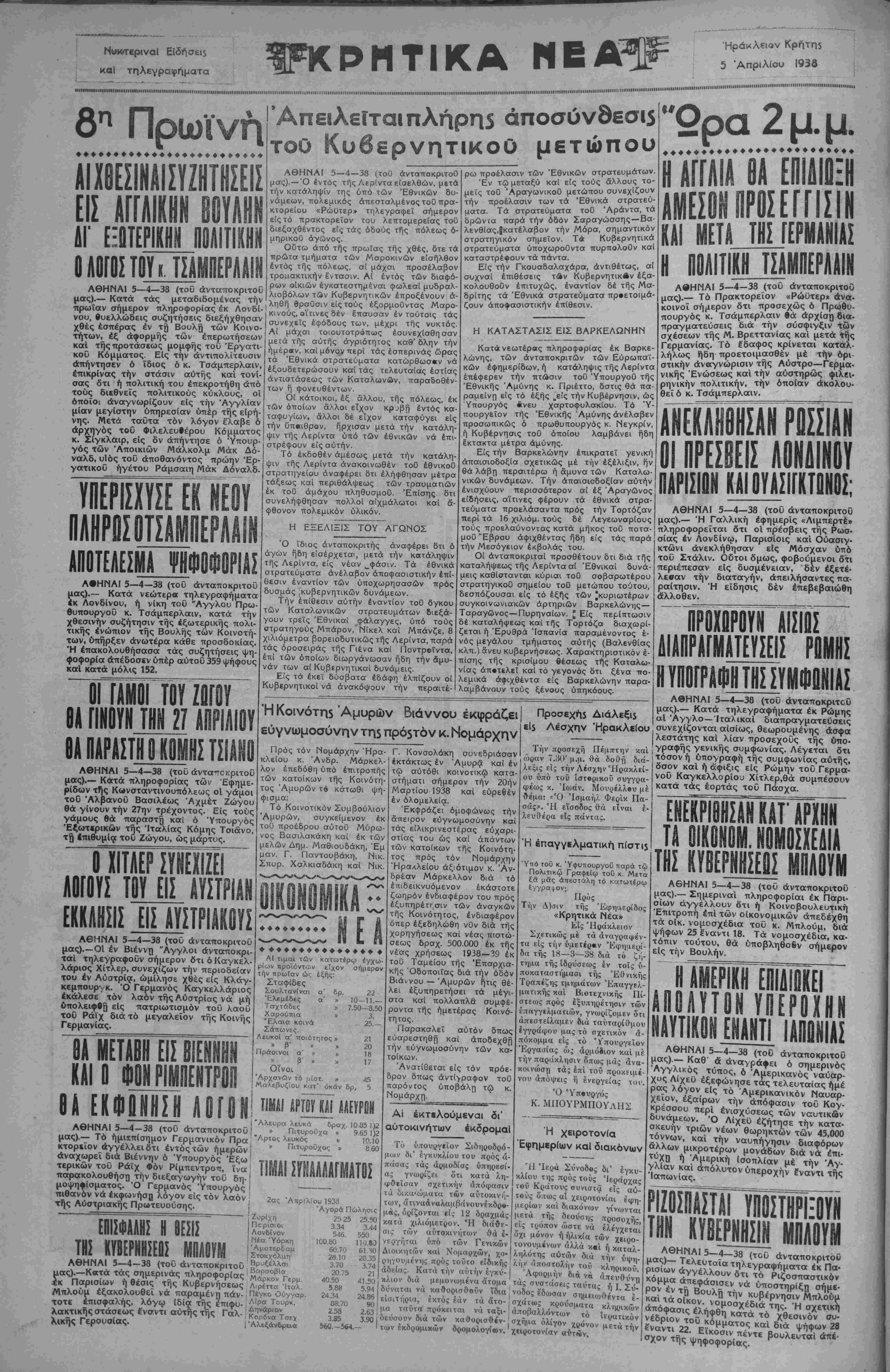 ΑΘΗΝΑΙ 5—4—38 (τοϋ άνταποκριτοΰ