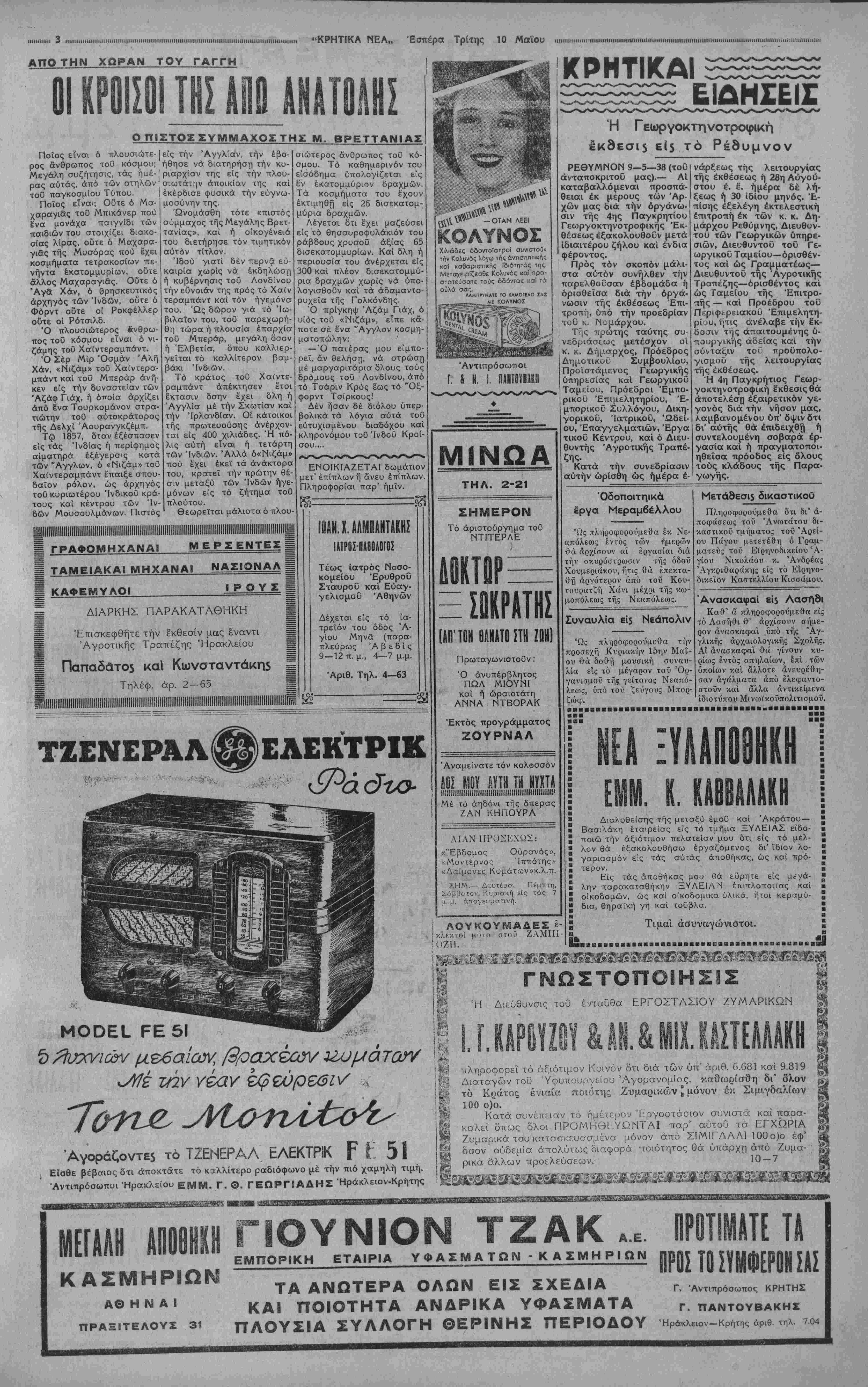 ΑΘΗΝΑΙ 10—5—38 (τοϋ άνταποκριτοΰ