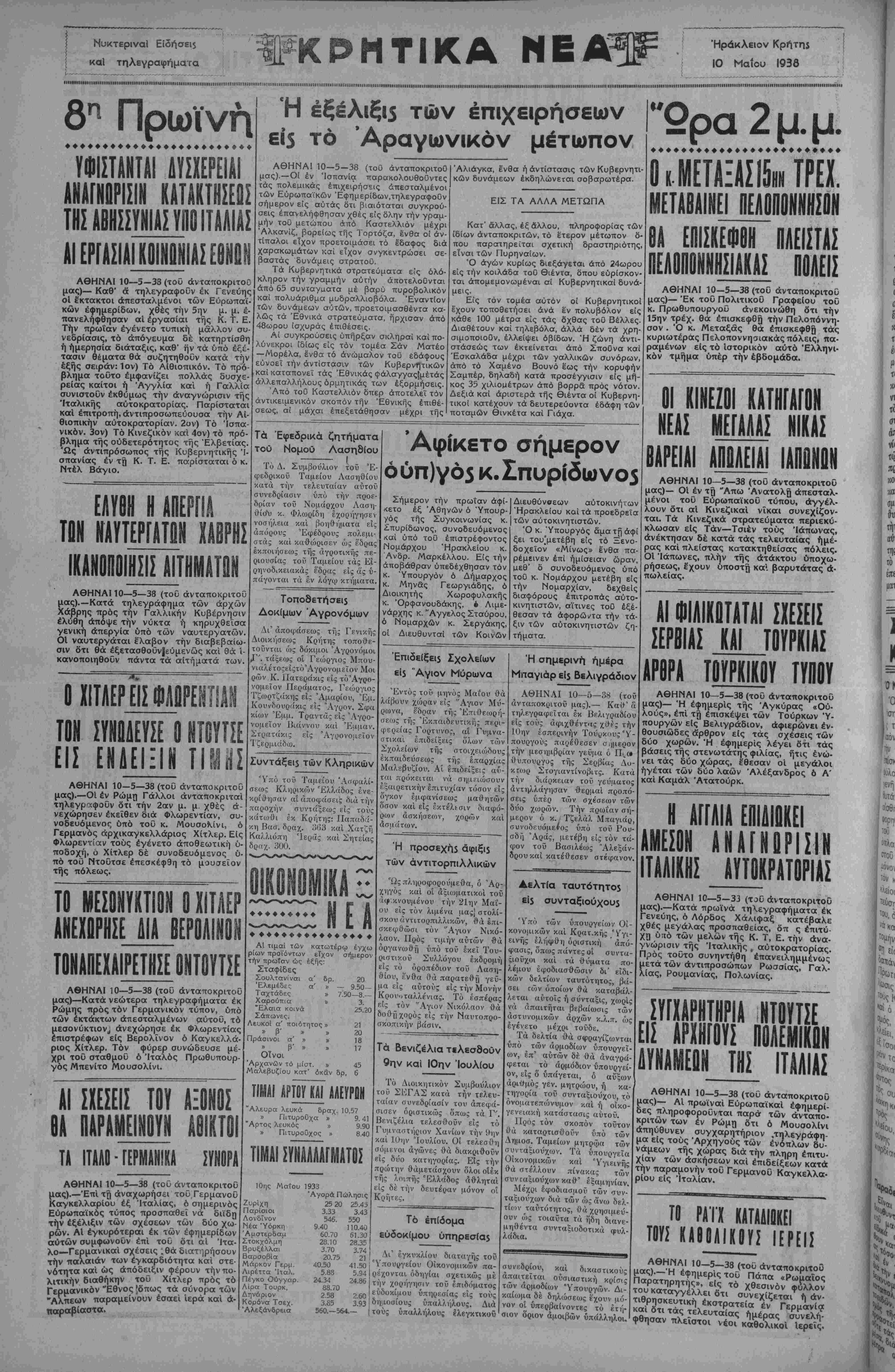 ΑΘΗΝΑΙ 10-5-38 (τού άνταποκριτοθ