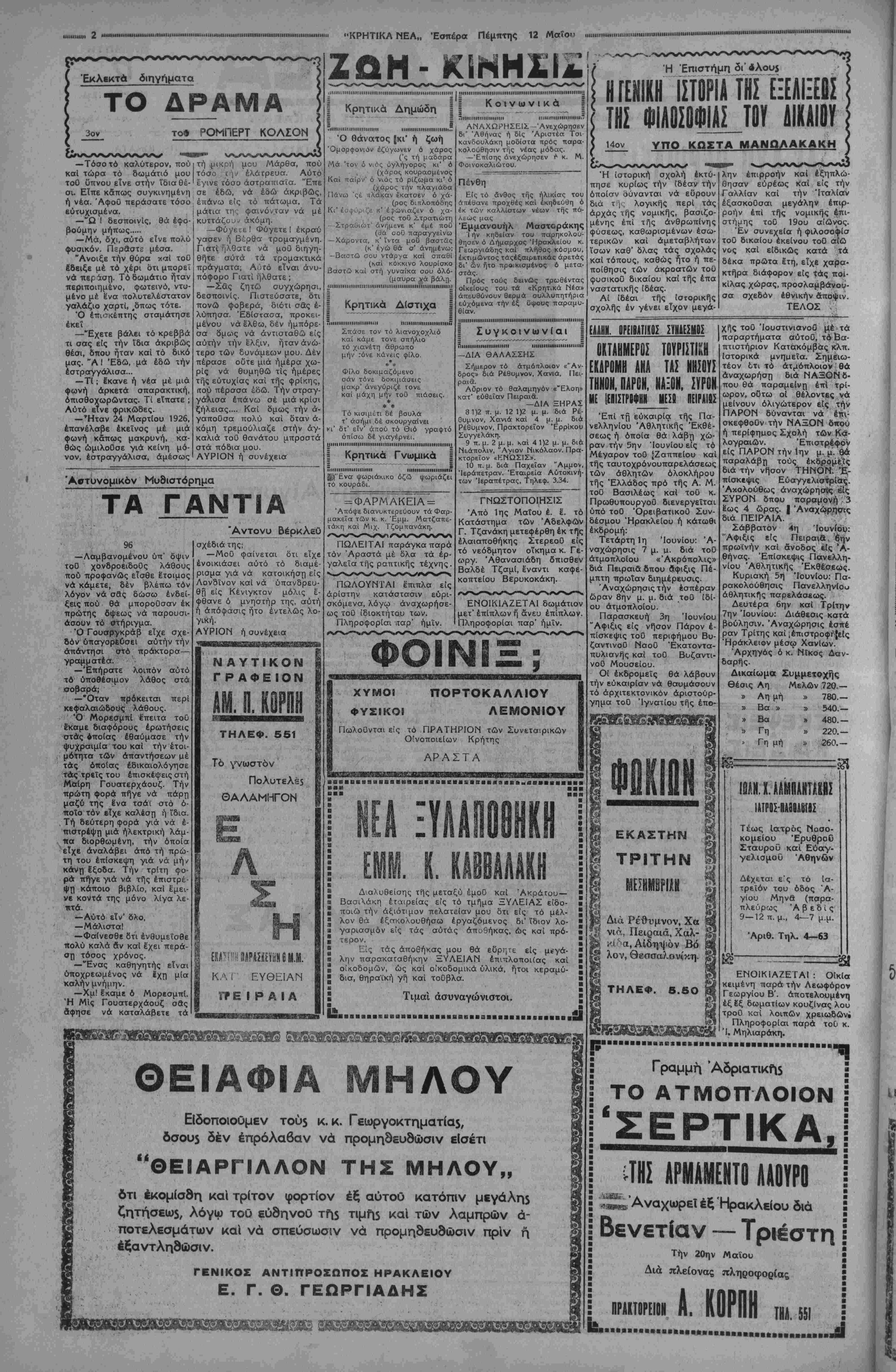 είναι ό Λαός μέ τα ττ<χ τριωτικώτερα αίσθ/|μα- τα και την θεαμοτέραν αγάπην πρός την Χώ^αν τού. Τό άποδεικνύει ή ύπερτρισχιλιετής ίστο- ρία τού, ή όποία είναι γεμάτη άπό άσύγκριτα πατριωτικά τρόπαια, τα όποία έφώτισαν καί ένέπνευσαν πλείστους αλλους λαούς. Μόλις λοιπόν ήρθη ή κακοδαι- μονία τού, μόλις έτερμα- τίσθη ή άδιαφορία τοΰ Κράτους διά την κατά¬ στασιν τού, ό Λαός αύτός έπανεΰρε εαυτόν καί μετεβλήθη είς τό στερεώτερον βάθρον τής πατριωτικής προσπα¬ θείας, ήτις καταβάλλεται υπό την καθοδήγησιν τής Α. Μ. τοΰ Βασι¬ λέως καί τού Πρωθυ- πουργοΰ κ. Μεταξά. Αύ¬ τός είναι ό λόγος, διά τόν οποίον ό Έλληνι- κός Λαός έπιφυλάσσει παντοΰ συγκινητικάς καί άποθεωτικάς έκδηλώ- σεις είς τόν Πατριώ· την καί συμφιλιωτήν Άνακτα καί τόν Εθνι¬ κόν Κυβερνήτην κ. Ιω¬ άννην Μεταξάν. ΕΚΕΨΕΙΕ ΚΑΙ ΚΡΓ-ΕΙΣ Υστότη παράτασιν. Τό Γεωργικόν Έταμε- λητήριον τής πόλεώς μας, ώς έκπρόσωπος τής Ά- γροτικής τάξεως, εζήτη¬ σεν άπό την Εθνικήν Κυ¬ βέρνησιν όπως χορηγηθή τελευταία παράτασις των προθεσμιών διά την δήλωσιν των Άγροτικών χρεών. Είμεθα βεβαιοί οτιή έπιτυχής αυτή πρό¬ τασις θά εύρη απολύτως σύμφωνον την Εθνικήν μας Κυβέρνησιν. Διότι καί έπιθυμία αυτής υπήρ¬ ξεν όνέκαθεν νά έξυπη- . ρετηθή ή Άγροτική Τά- , ξις, καί δι* αύτό κατήρτι¬ σε τόν νόμον, καί διότι οί ' αγρόται, μέ τάς πολλα- πλάς καλλιεργητάς Φροντίδας, μέ τάς οποίας είναι έπιφορτισμένοι κα¬ τά την εποχήν αυτήν, δέν ηδυνήθησαν νά έκπληρώ- σουν τάς έκ του νόμου προβλεπομένας δι' αΰ- τούς ύποχρεώσεις. Άλ- λωστε ή μή χορήγησις τής παρατάσεως ταύτης οϋτε τούς πιστωτάς τ£ν άγροτών πρόκειται νά ώφελήση έφ' όσον ή δή¬ λωσις των χρεών θά £χη γίνη ασφαλώς άπό τό μέγιστον μέρος των χρεω μένων άγροτών. ♦ ♦♦ Τό Ταμείον άφαλίσεως Έπαγγελματιών Ελλάδος, δημοσιευθέντος τού κατα- στατικοΰ τού, ήρχισε λει- τουργοΰν. Είμεθα βεβαιοί 6τι την εξαιρετικήν σπου¬ δαιότητος τού Ταμείου αυ¬ τού συναισθάνεται απολύ¬ τως ή συμπαθείς'τάξις των έπαγγελματιών " καί διά τουτο τό περιβάλλει μι τόσην στοργήν καί Μχει έκ δηλωσει τόσην ευγνωμοσύ¬ νην πρός την Εθνικήν Κυ· βερνησιν διά την "ίδρυσιν τού. Πρέπει δμως ή στορ γή αυτή των 'Επαγγελμα τιών νά τό περιβάλλτ) μέ χρι τέλους καί νά άποτε λέσουν άπαντες άφωσιω μένους παραστάτας τού, οιά νά δυνηθή νά εκπλη¬ ρώση τόν Ιερόν προορι¬ σμόν τού. ♦ ♦♦ Ή συσκευασία των Έ8ν. προίόντων Λίαν ορθώς υπό τοθ ση μερινοΰ Έθνικοΰ Κράτους άποδίδεται ή διαπιστουμένη σοβαρότης 'είς τό ζήτημα τής συσκβυασίας των Έθνι· κων μας προϊόντων. Διότι διά νά κατακτήστ) τό διε θνές καταναλωτικόν κοινόν Ινα προίόν, δέν άρκεΐ νά είναι εκλεκτόν είς ποιότητα άλλά πρέπει καί νά είναι συ- σκευασμένον κατά τρόπον έλκυστικόν καί έπαυξάνοντα την ποιοτικήν τού ύπεροχήν Ημείς ιδία, οί όποΐοι τελευ- ταΐοι αντελήφθημεν την σπουδαιότητα τής συσκευα- σίας καί έ'χομεν νά άντιπα- λαίσωμεν πρός συναγωνι στάς έπιφόβους, πρέπει νά άποδόσωμεν μεγίστην προ σοχήν καί σημασίαν ε'ς τό κεφάλαιον αύτό. ♦ ♦♦ Ή Αγροτικη Ασιρώλεια. Μετά την δημοσίευσιν τοθ τελευταίου άναίγκαστικοθ νόμου περί Άγροτικής Α¬ σφαλείας, τό "Υπουργείον Έσωτρρικών έκοινοποΐησεν καΐ έπεξηγηματικήν εγκύ¬ κλιον είς τούς Νομάρχας, διά την άκριβη" εφαρμογήν τοθ νόμου. Δέν γνωρίζομεν τί γίνεται ε'ς τούς άλλους νομούς. Ένταθθα ομως, χά¬ ρις είς τα έπ'τυχή μέτρα δ- λων των αρμοδίων Άρχών, καί την έργατικότητα των όργάνων τοθ Σώματος Ά- γροφυλακής, έχομεν παρα- δειγματικήν Άγροτικήν α¬ σφά