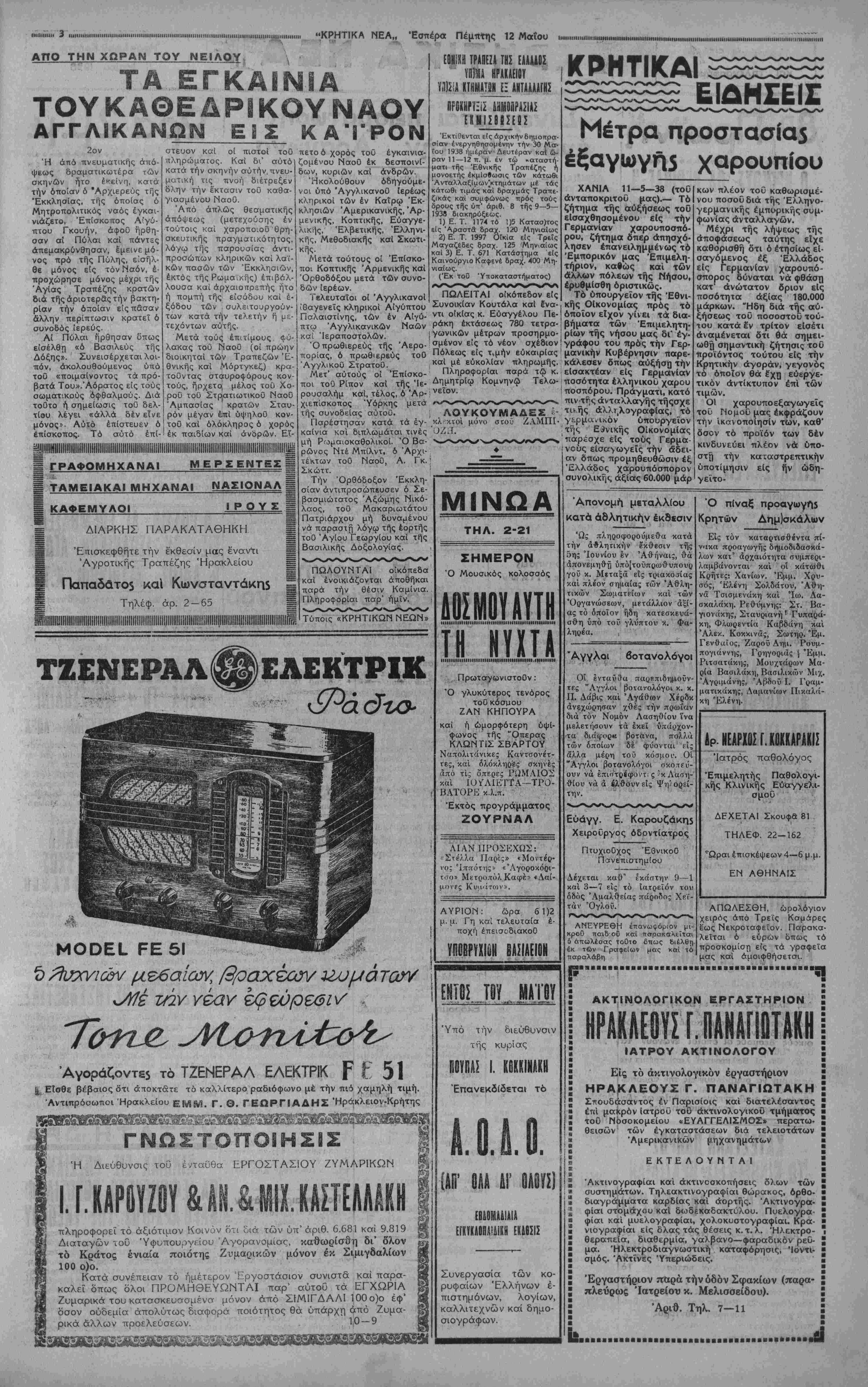 ΑΘΗΝΑΙ 12—5—38 (τοθ άνταποκριτοΰ