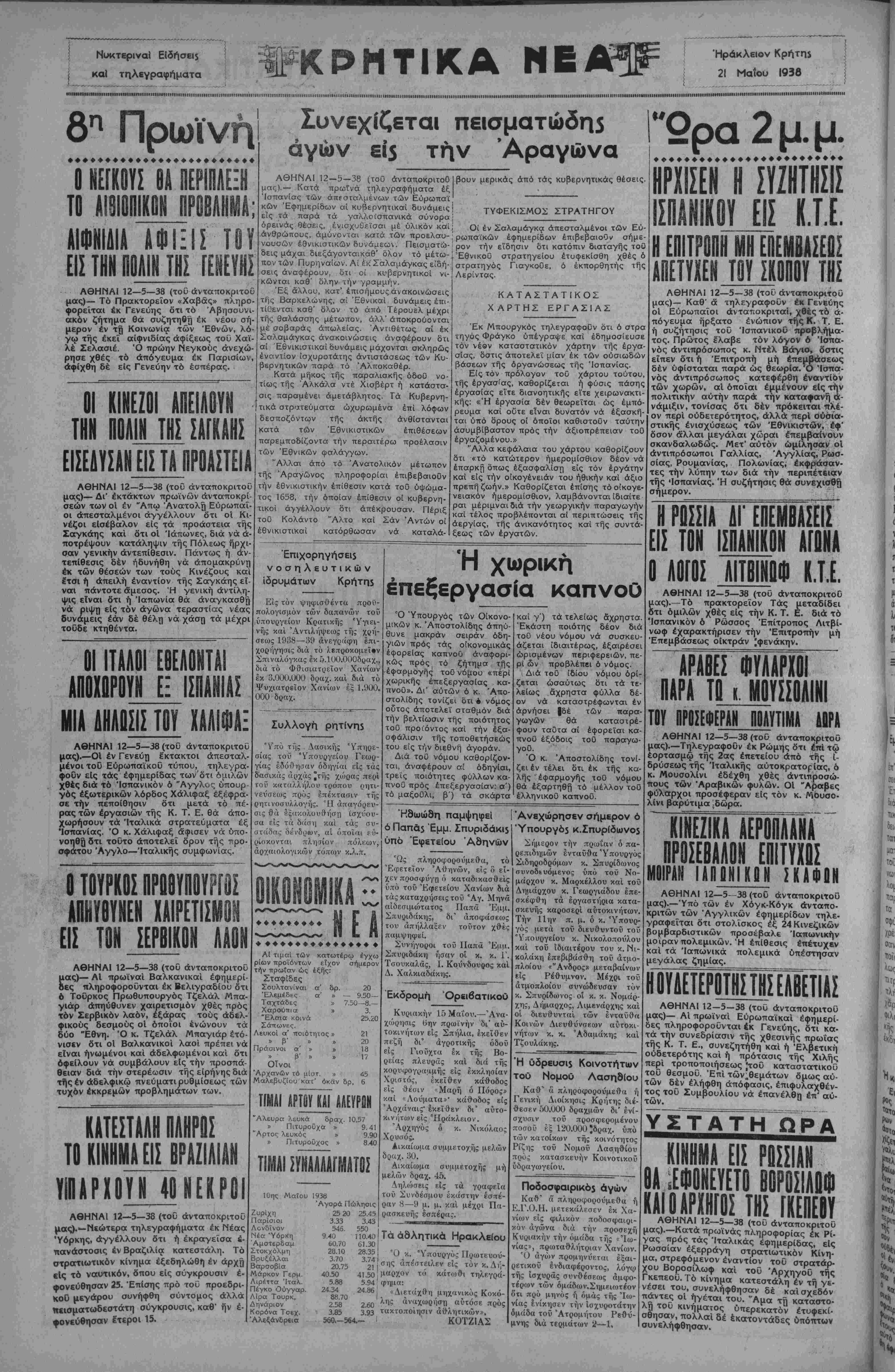 ΑΘΗΝΑΙ 12—5—38 (τοΰ άνταποκριτοθ