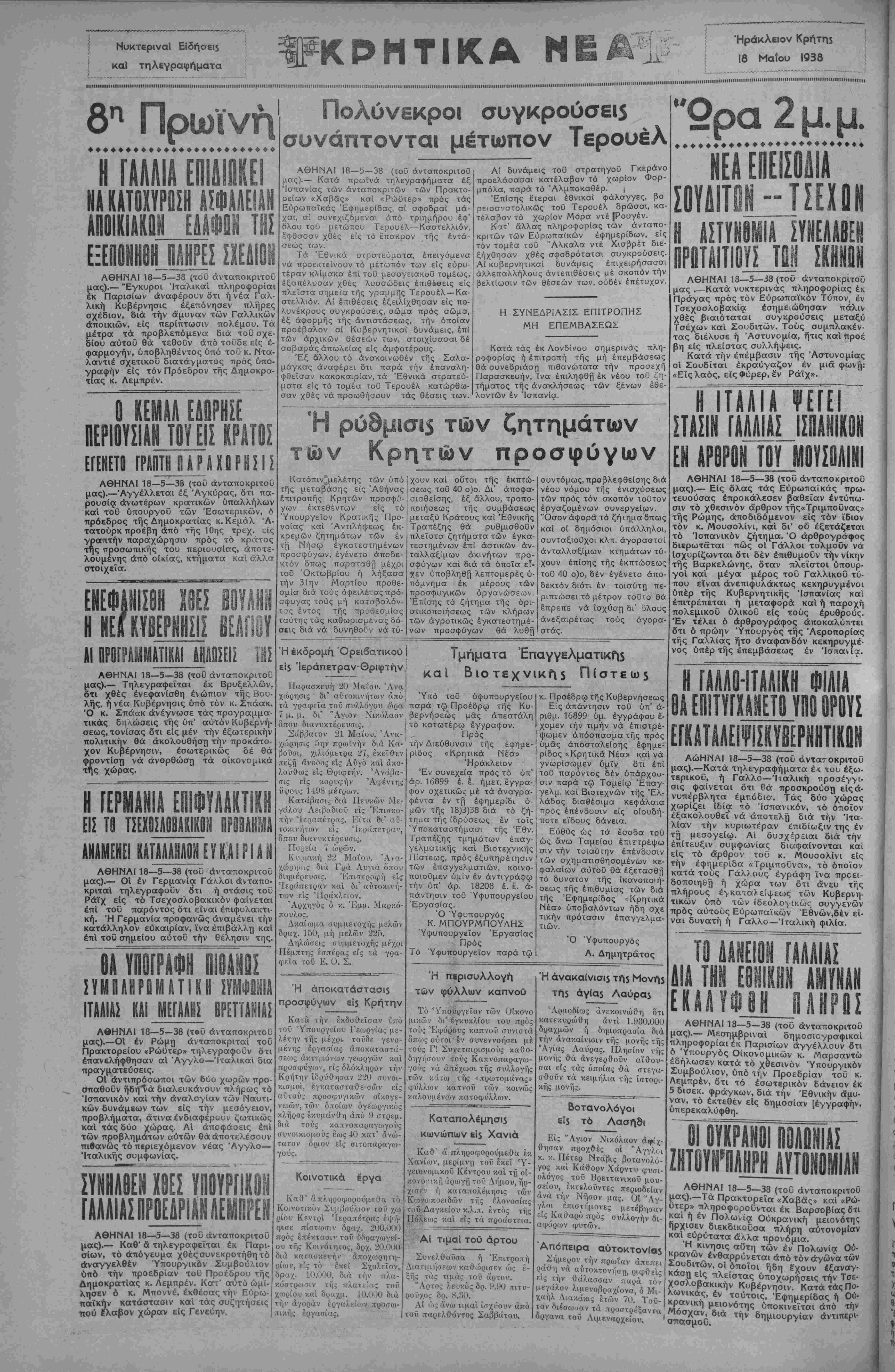 ΑΘΗΝΑΙ 18—5—38 (τοΰ άνταποκριτοΰ