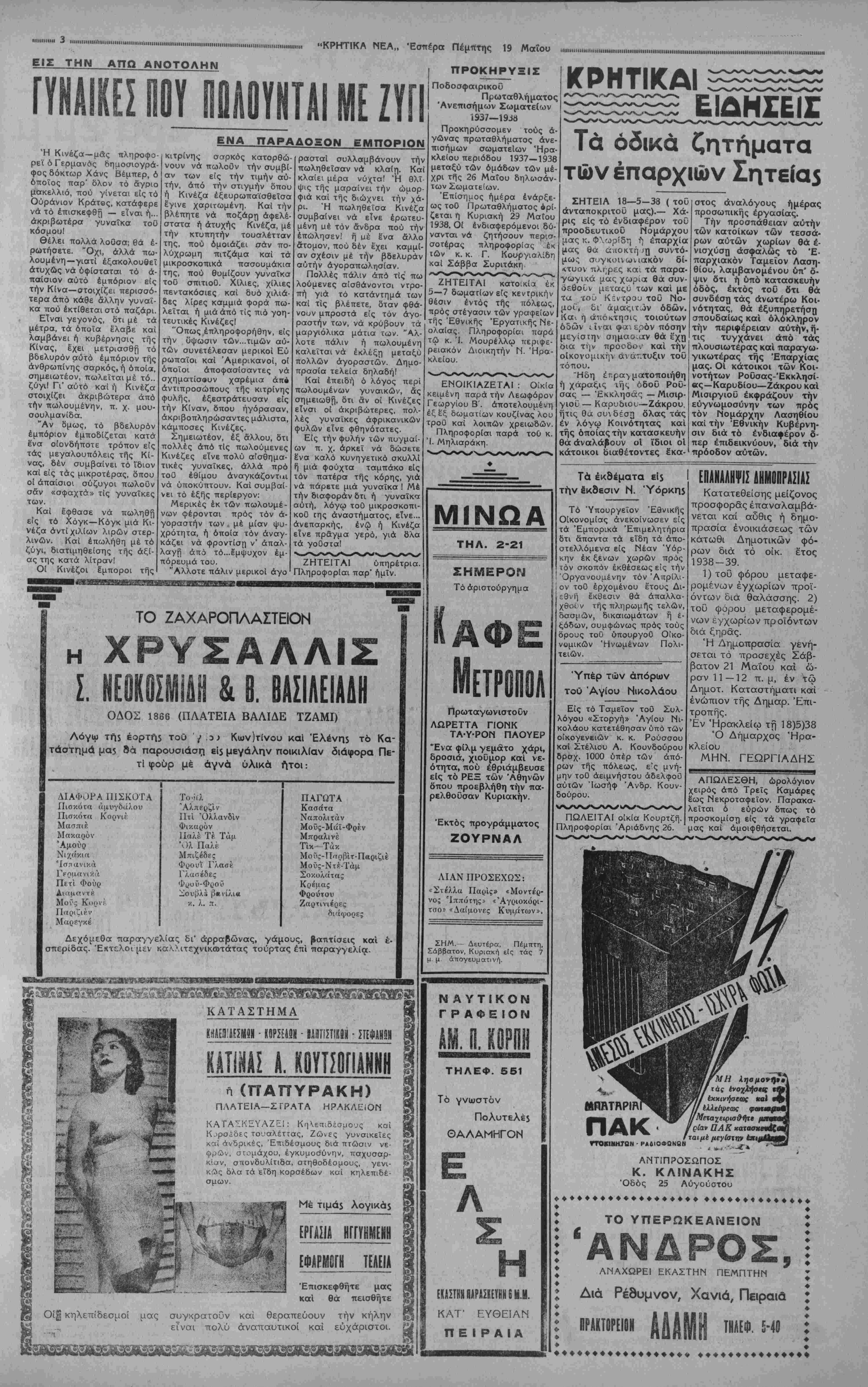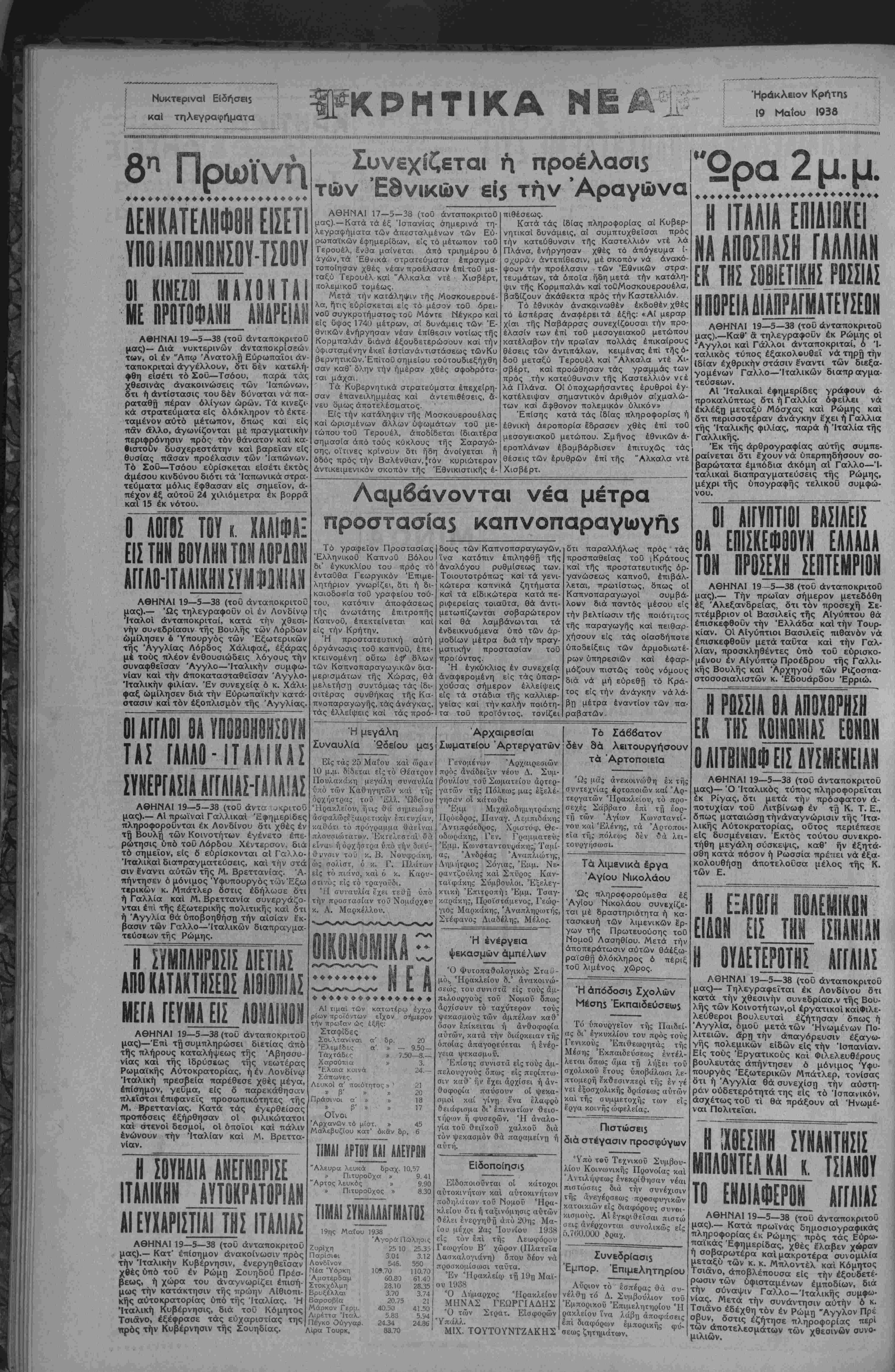 ΑΘΗΝΑΙ 19—5—38 (τοϋ άνταποκριτοΰ