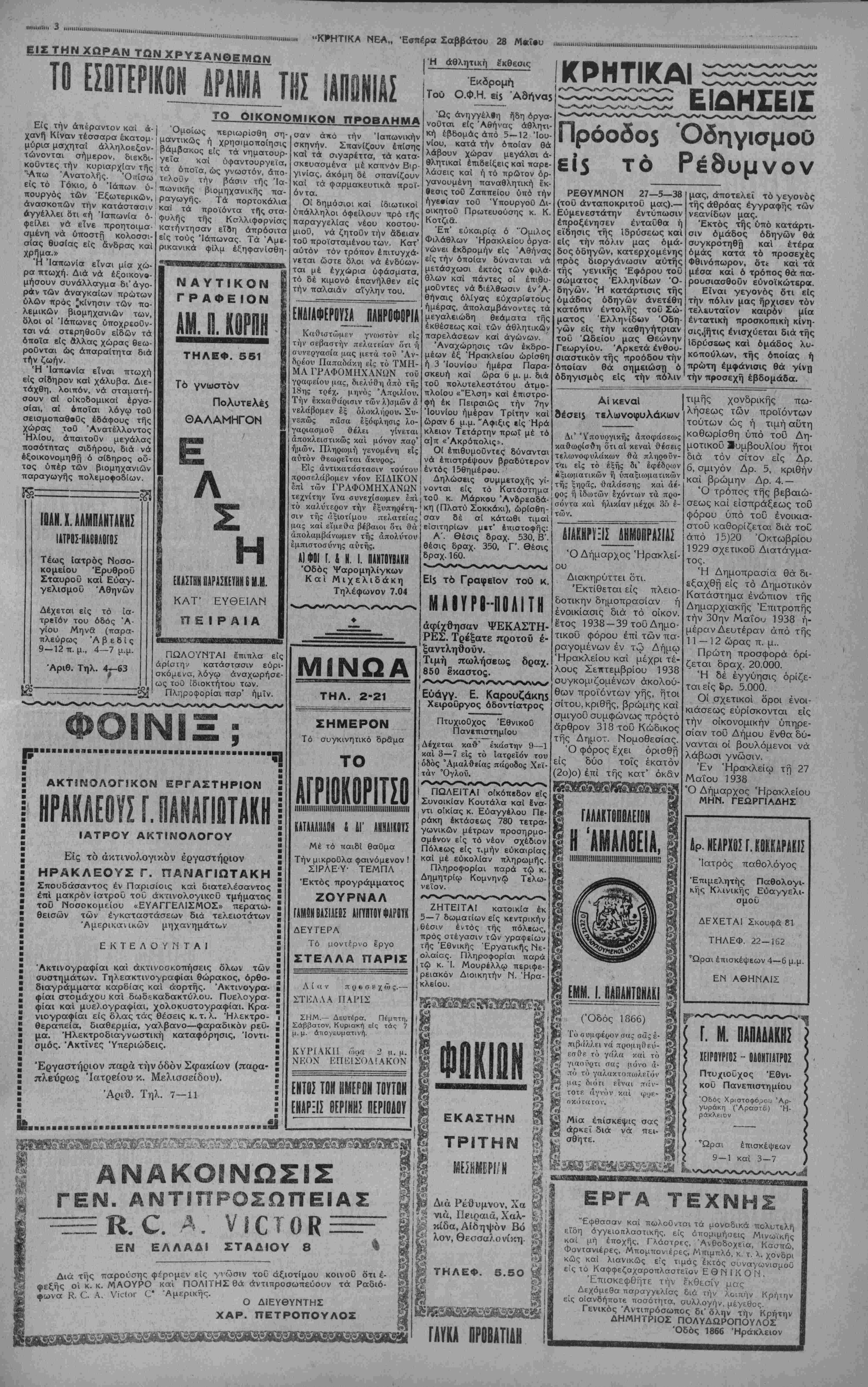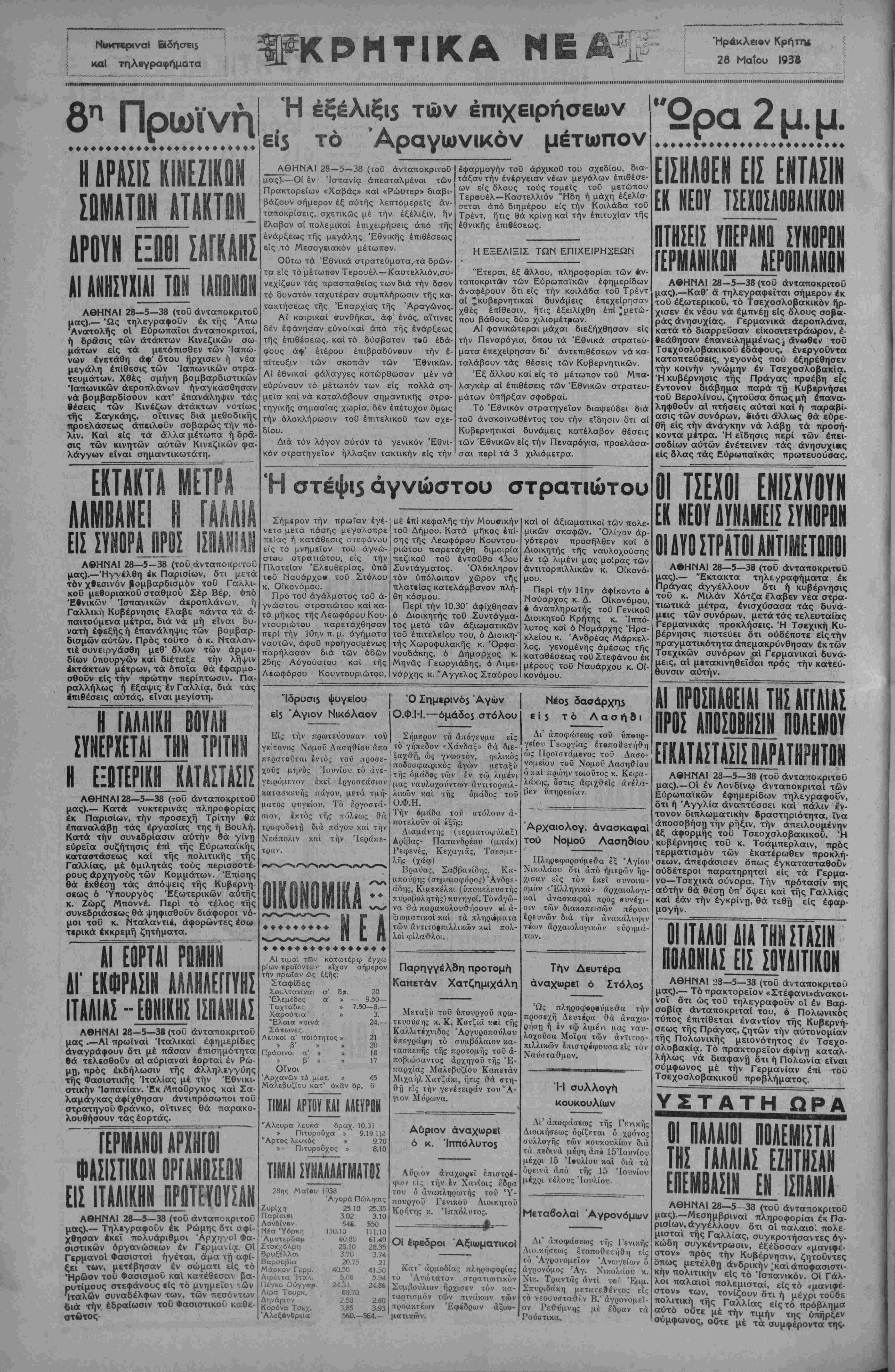 ΑΘΗΝΑΙ 28—5—38 (τοΰ άνταποκριτοΰ