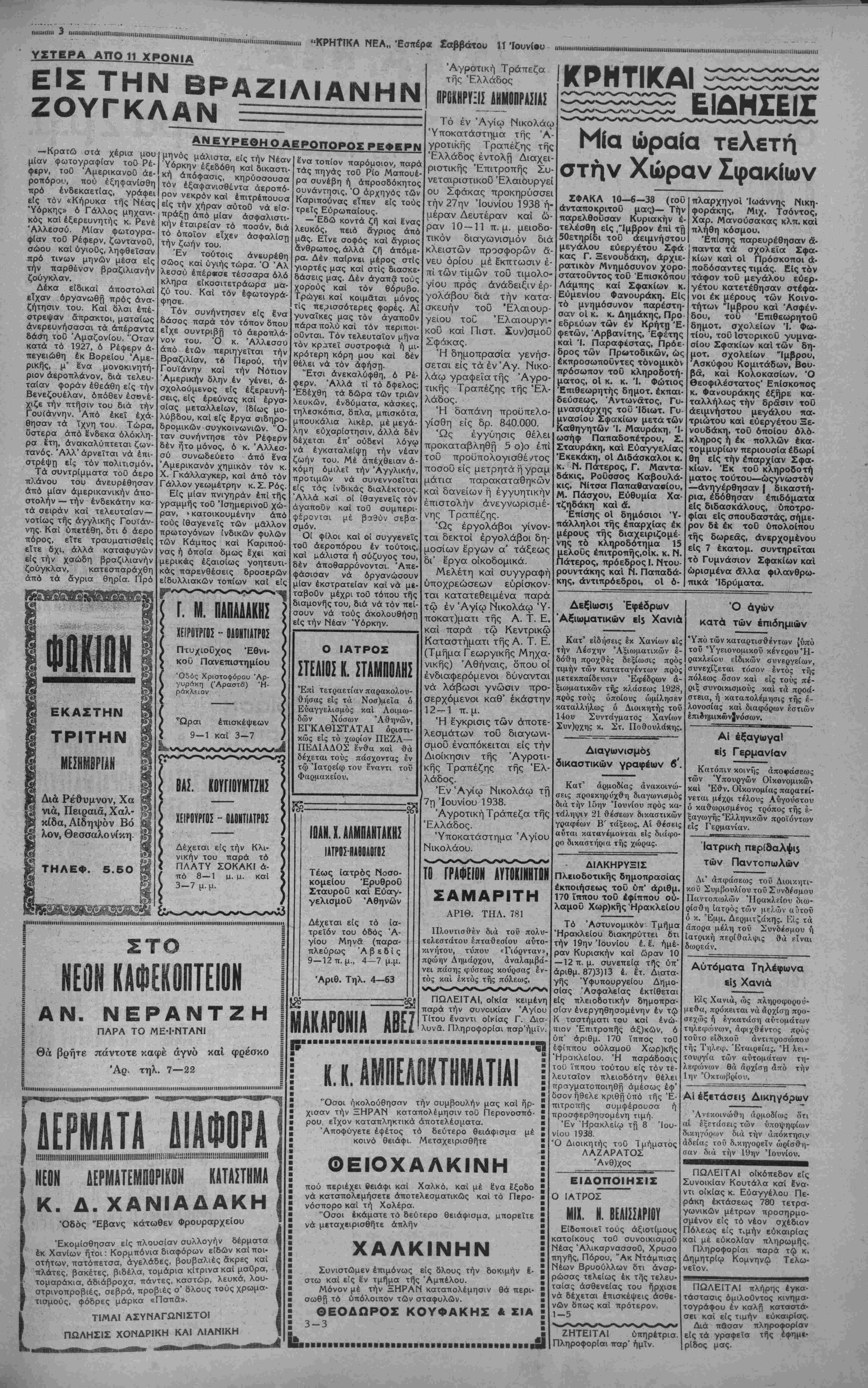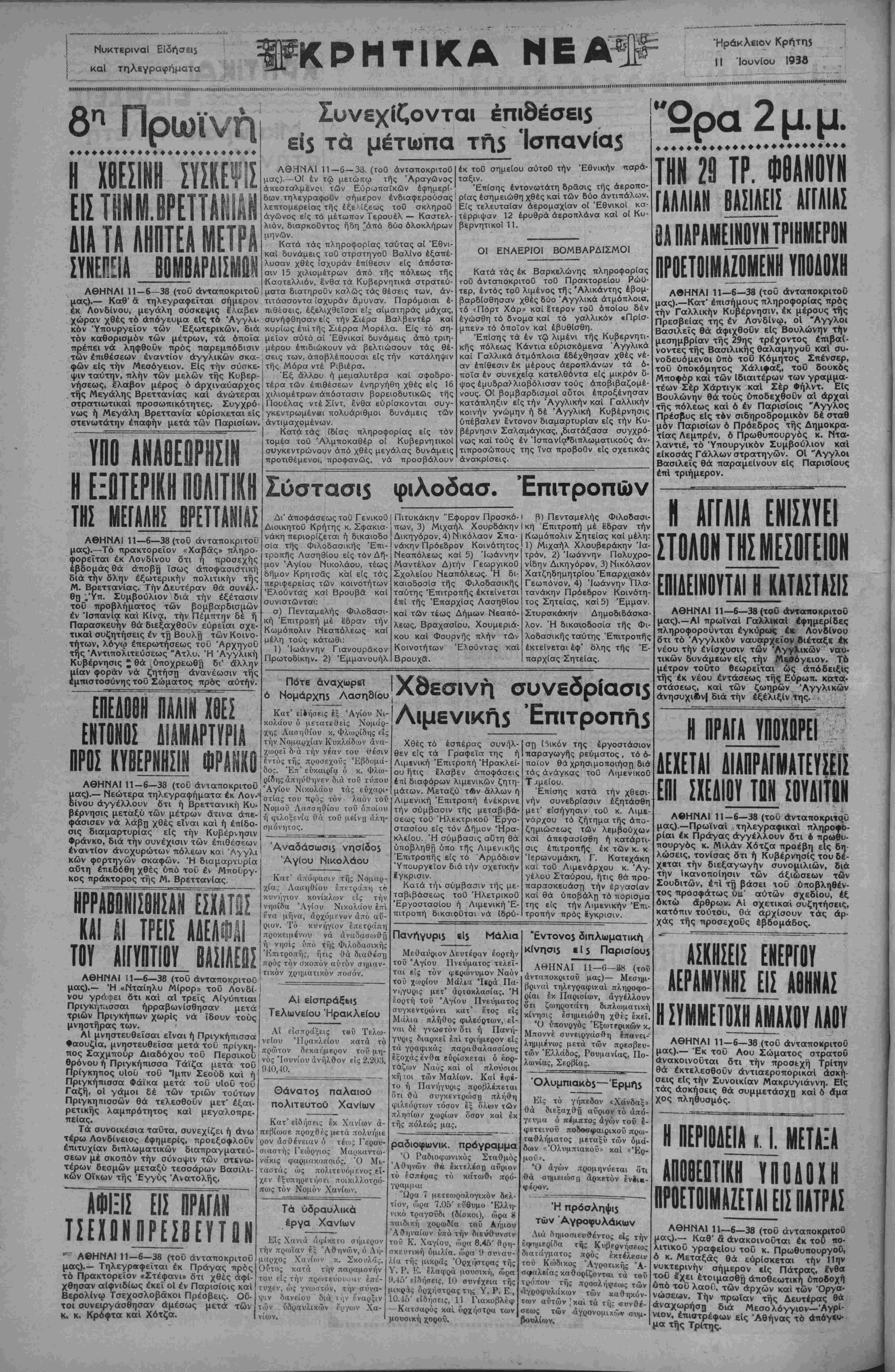 ΑΘΗΝΑΙ 11—6—38 (τοΰ άνταποκριτοΰ