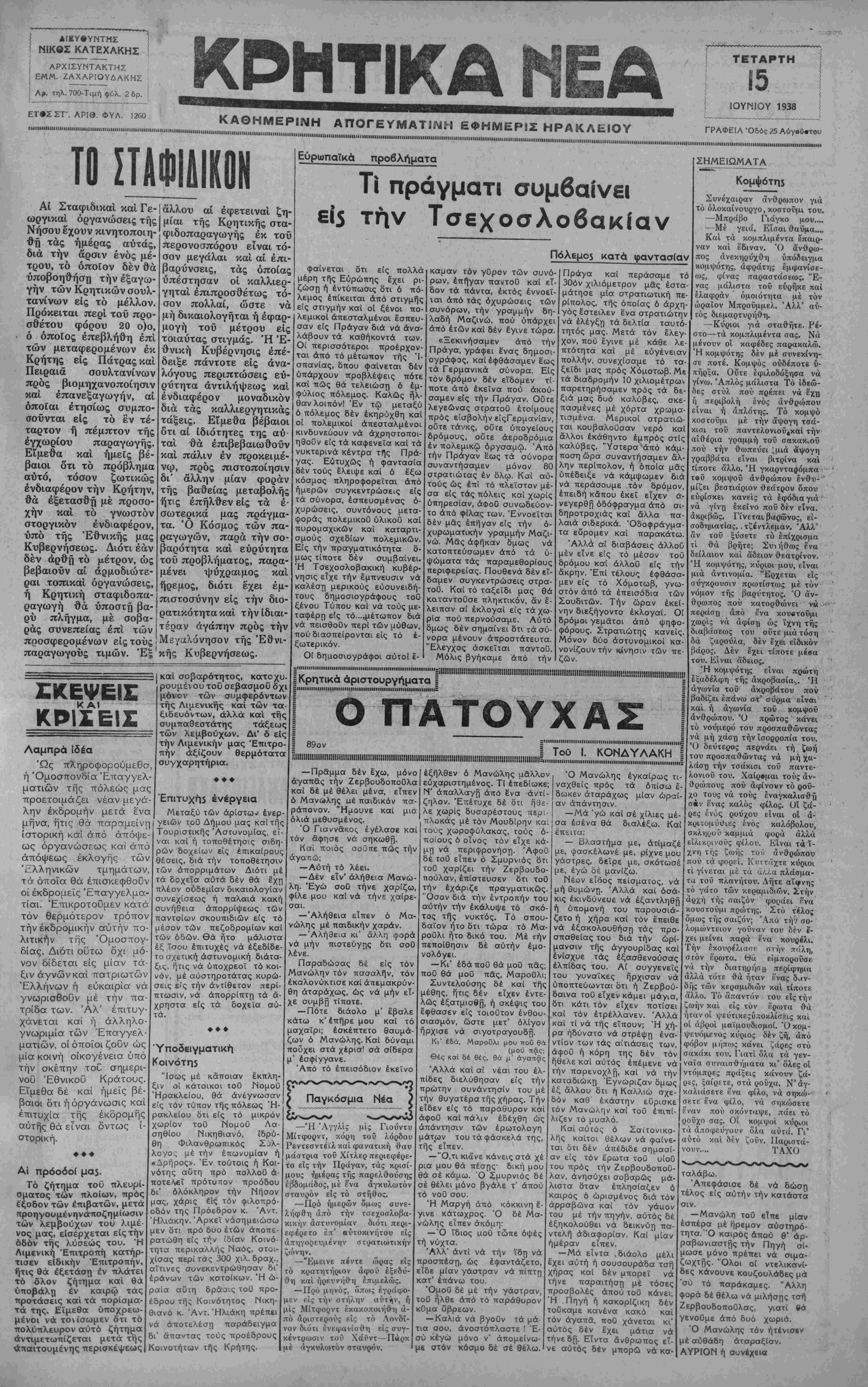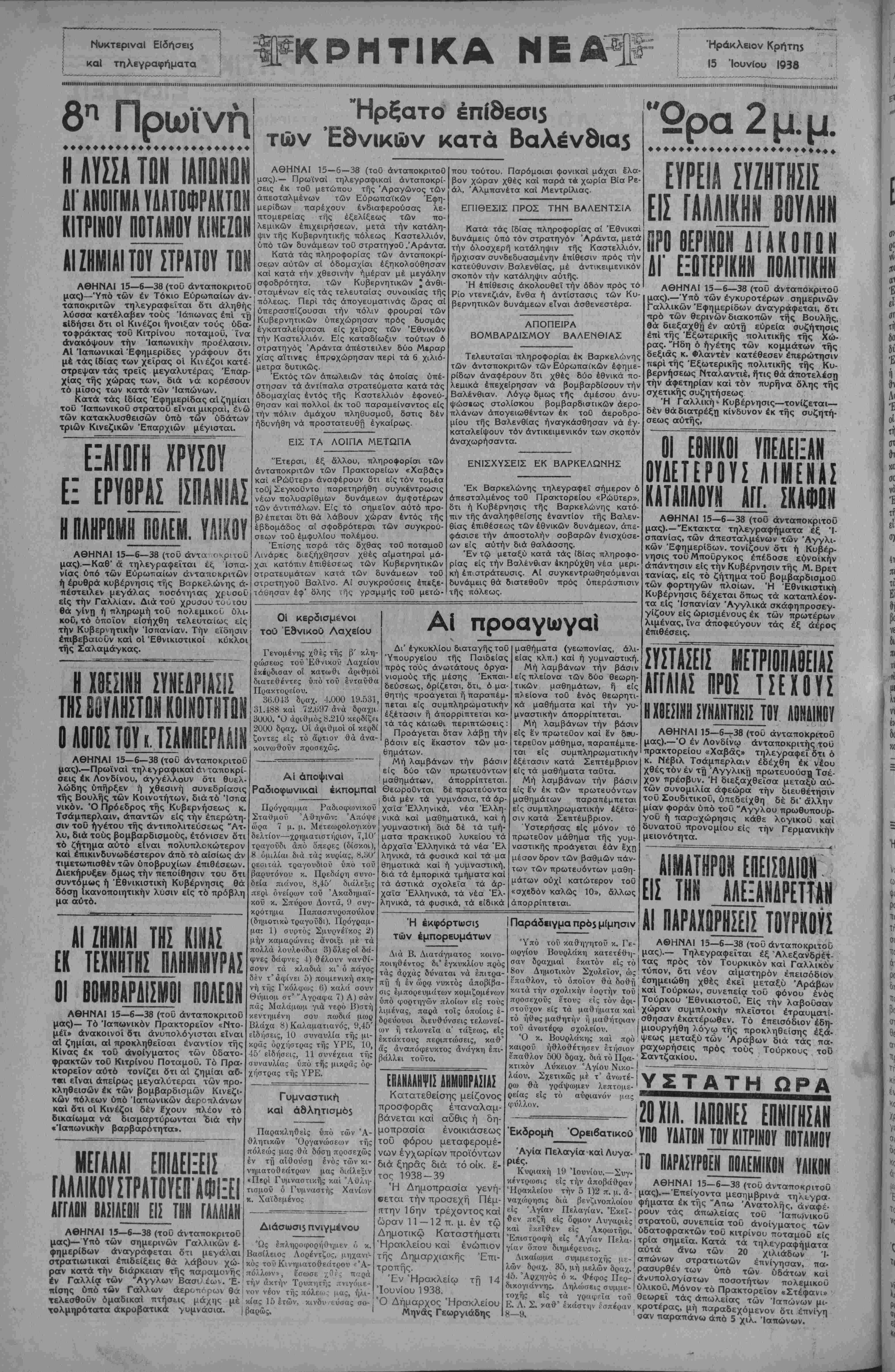 ΑΘΗΝΑΙ 15—6—38 (τοϋ άνταποκριτοΰ