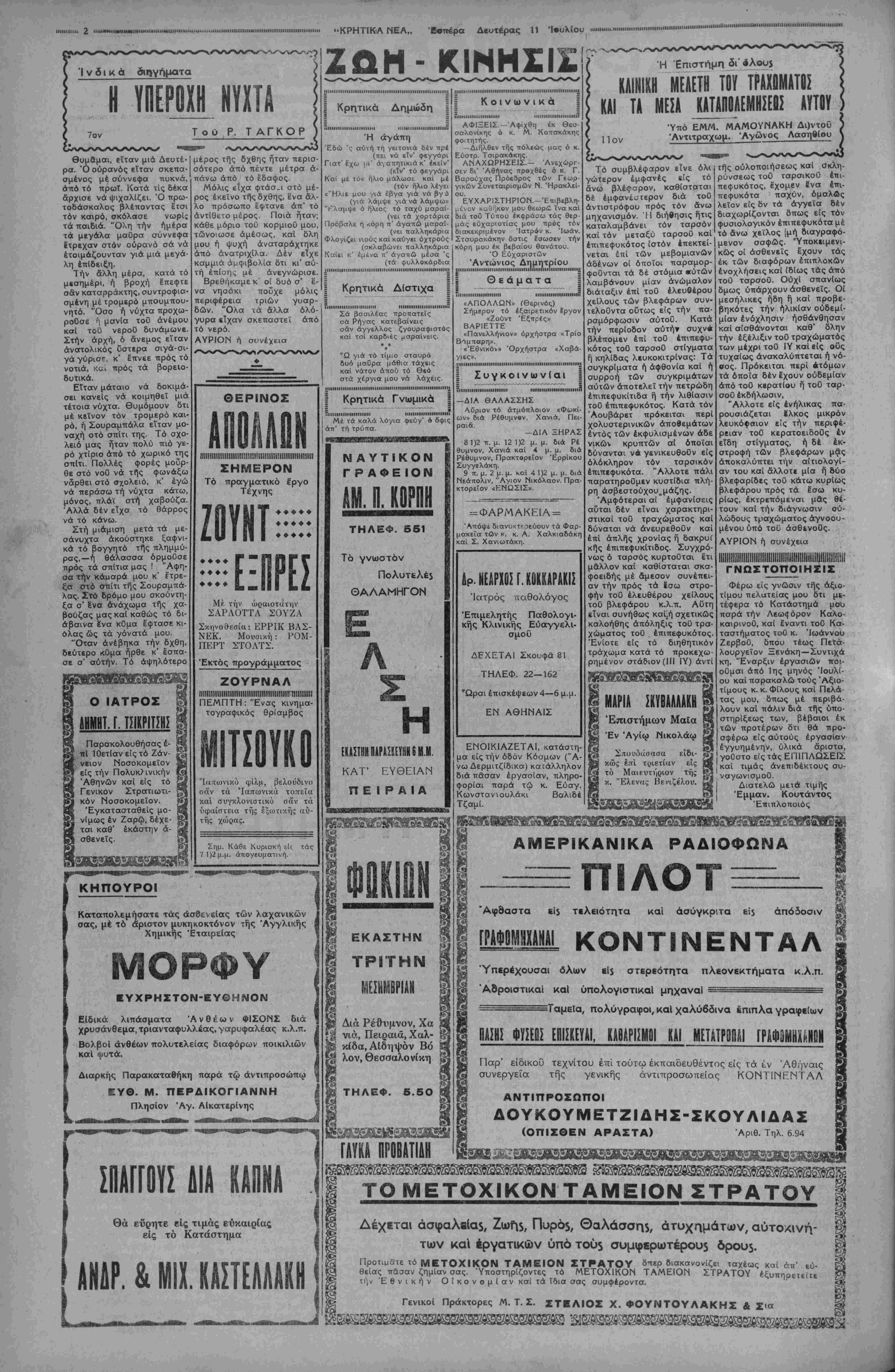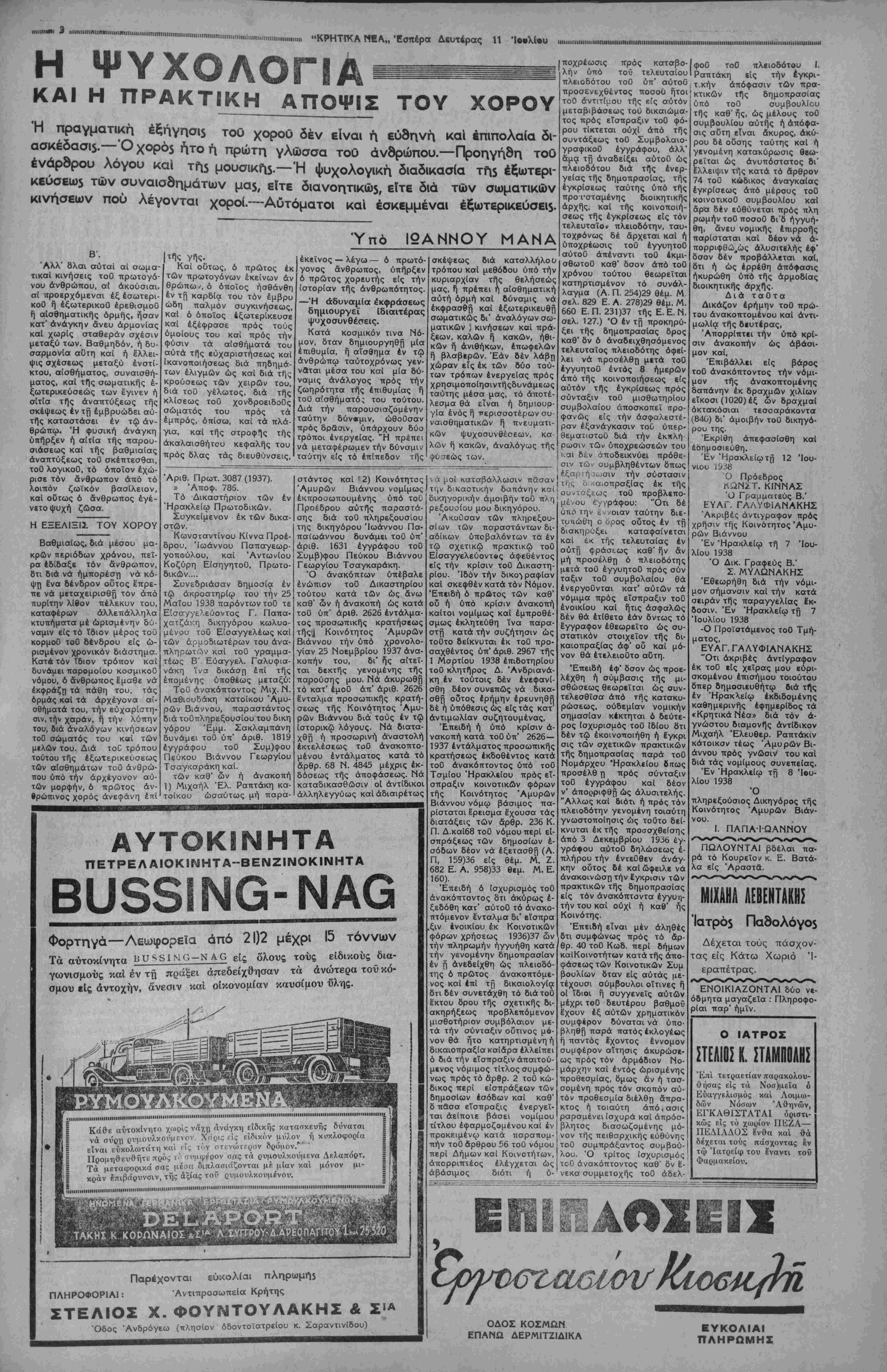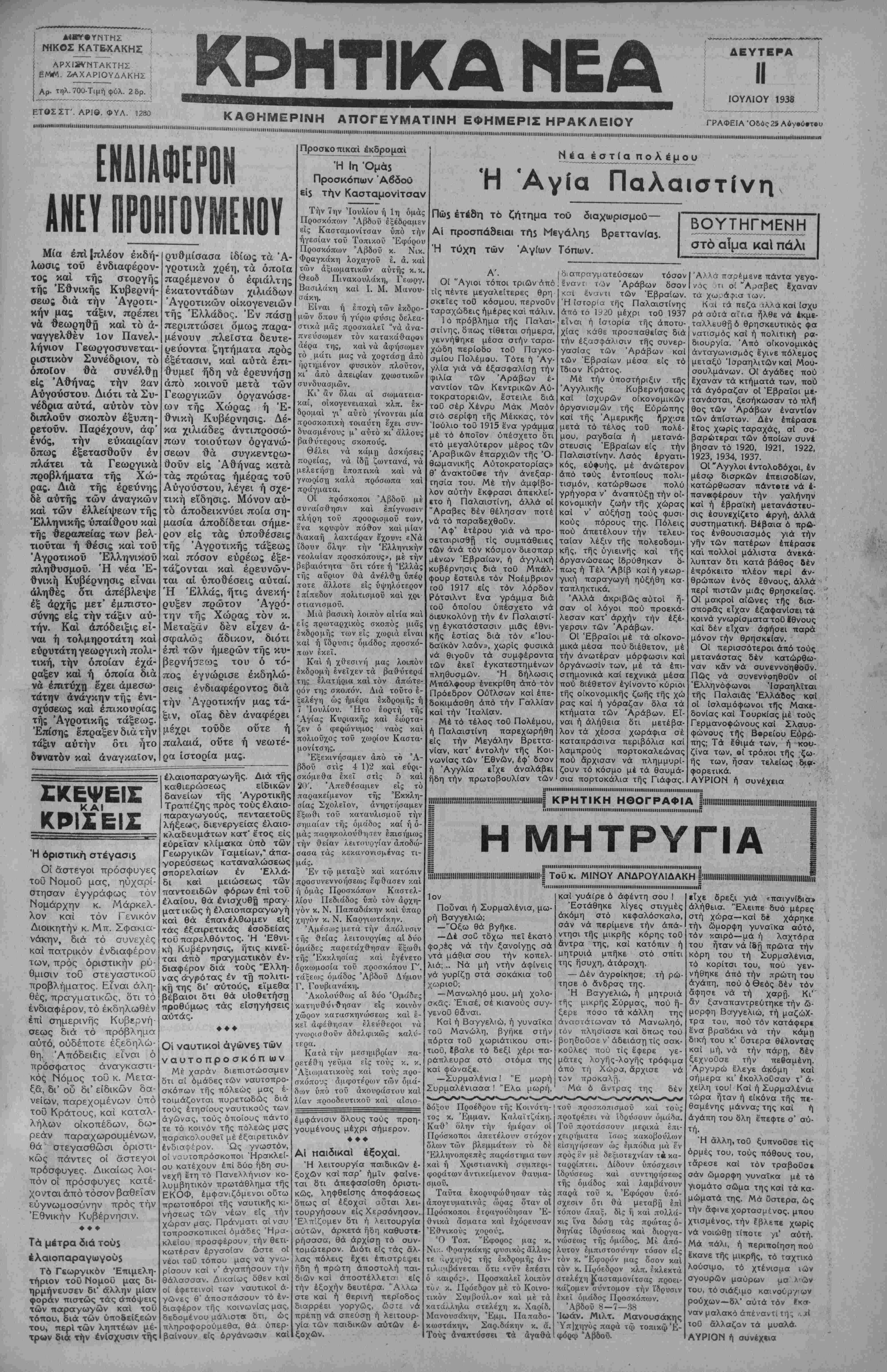 ΑΘΗΝΑΙ 11—7—38 (τοΰ άνταΐτοκριτου