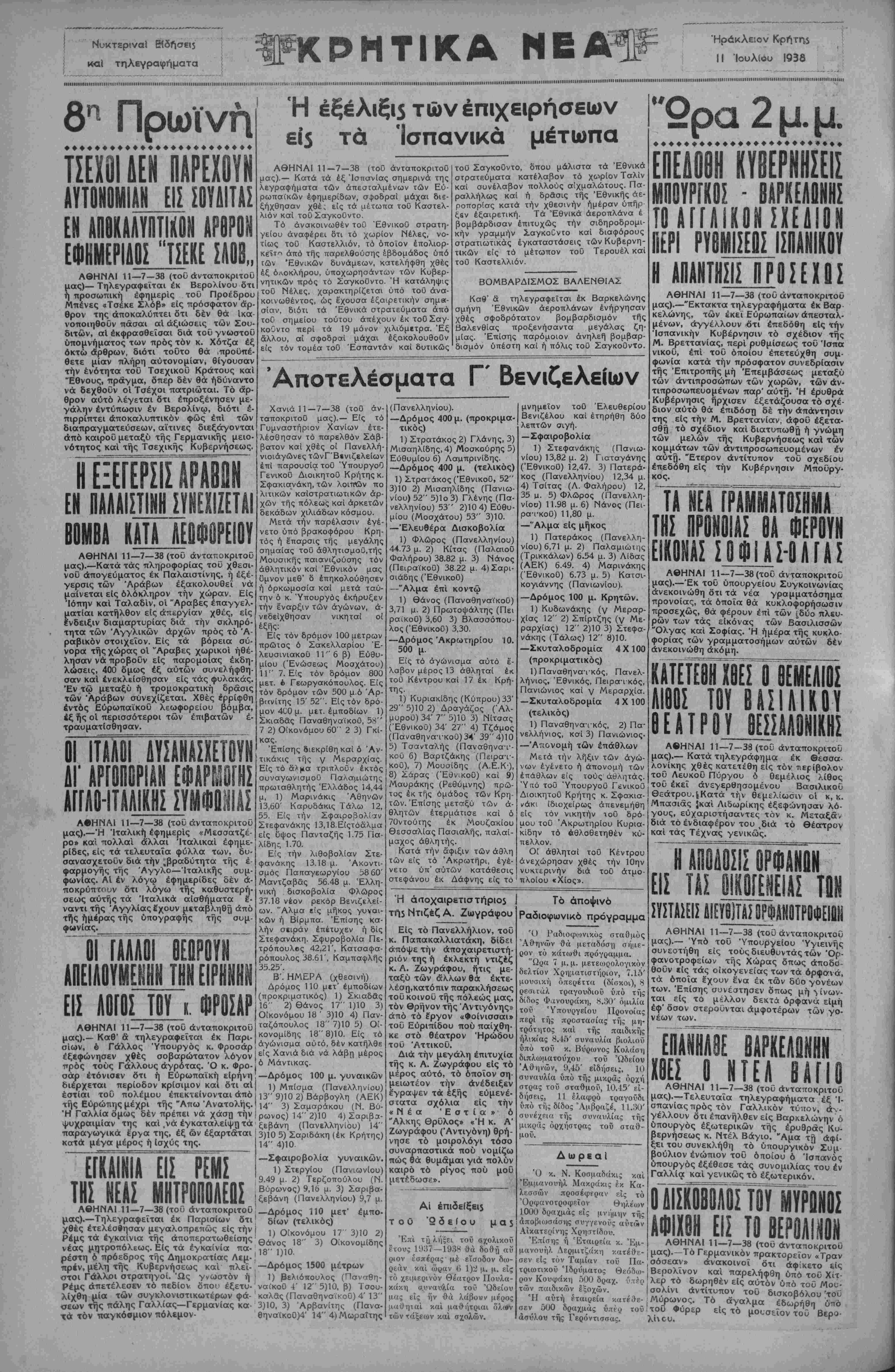 ΑΘΗΝΑΙ 11—7—38 (τού άνταποκριτοΰ