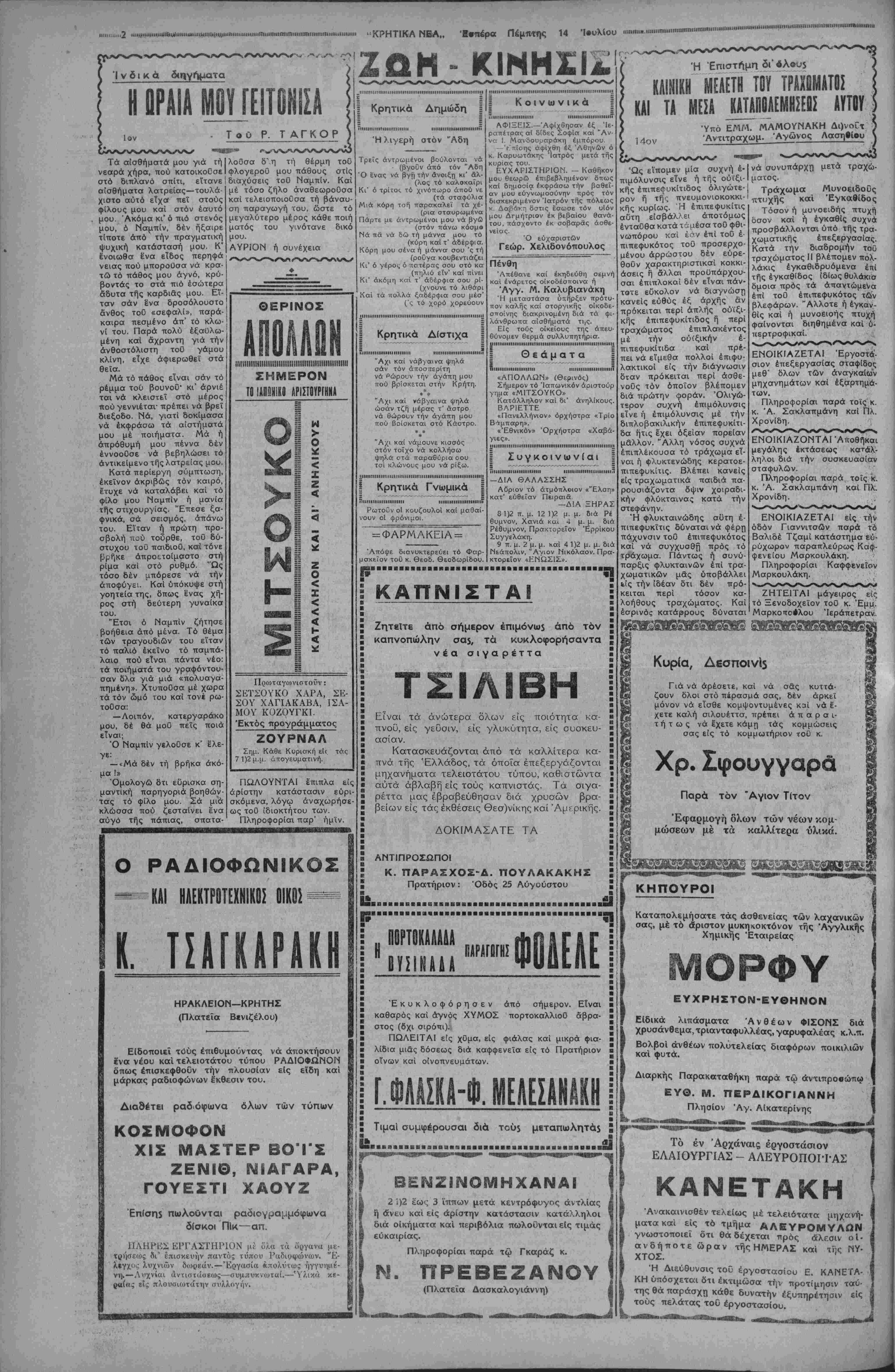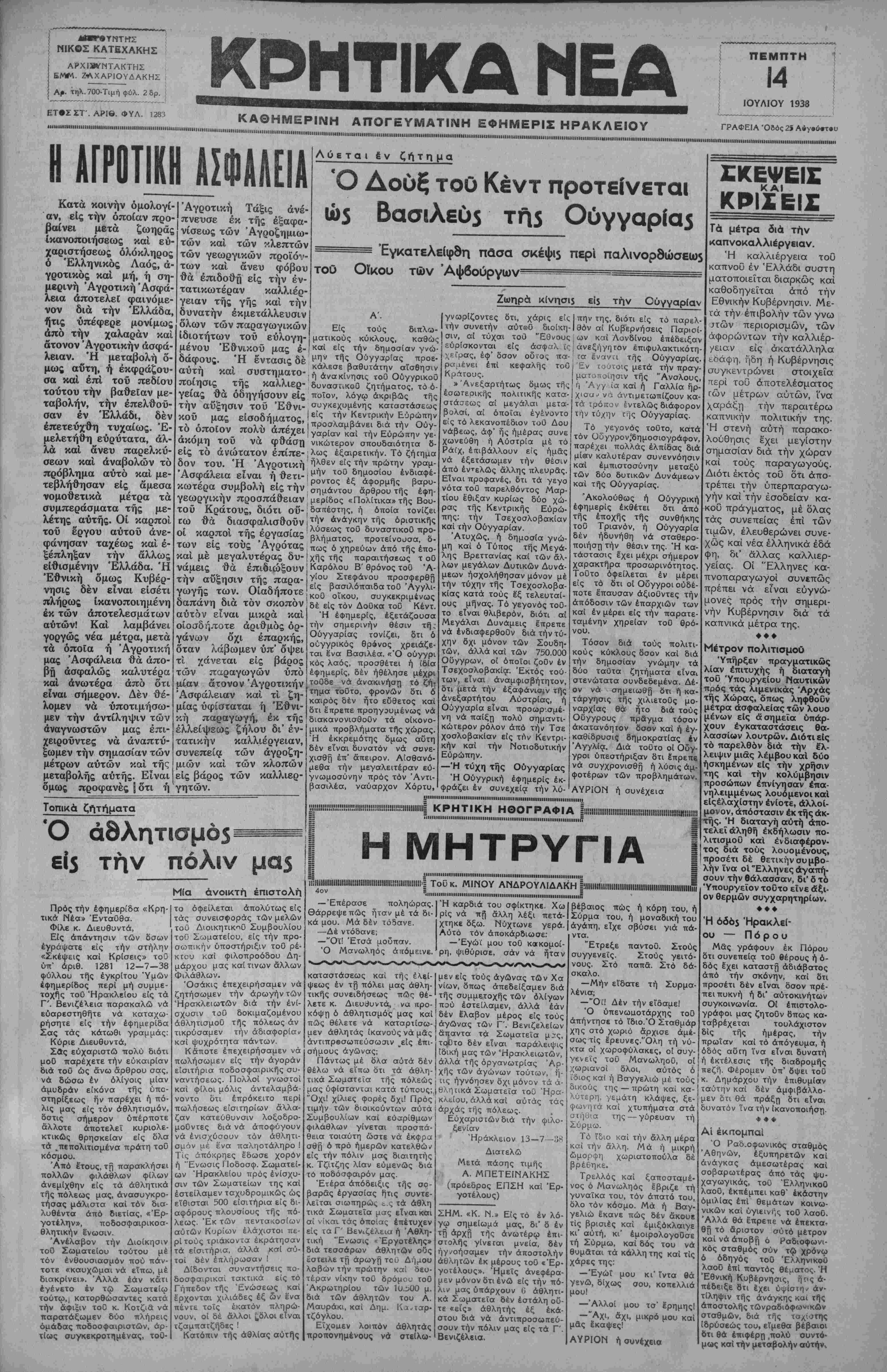 ΙΙ1ΙΙΙΙΠΙ·ΙΙΙΙΙΙΙΙίΙΜΙΙΙΙΙΙ·ΙΙΙ11ΜΙΙΙΙΙΙΙΙΙΙΙΙΜΜΙΙΙΙ1·ΜΙΜ1ΙίΙ1ΙΙΙΙΙΙΙΙΙ|Ι·|ΙΙίΙ1ΙΙΙΜΙΙΜ·ΙΙ|<|1|,|||,|(Ι<Ι1ΙΙΙΙΙΙΙΙΙΙΙ|ΙΙ<||1Ι1ΙΙΙ1ΜΙΙ|1ΙΙΜΙΙΙΙΙΙΙΙ|Ι·1|ΙΙΙΙΙΙΐ11ΙΙΜΙΙΙΙΙ)Ι1ΙΙΙΙΙΙ>ΙΙΙΙΙΙ<>Ι.....>1ΙΙΙΙΙΙΙ·»ΙΙΙΙΙ>1ΙΙΙΜ1ΙΙΗ1Μ1Ι1ΙΙΙΙ(ΙΙΙΙΙΙΙ1ΙΙΙΙΙΙΙΙ1ΙΜΙΙΙΜΙΙΙΙ<ΙΙΙΙ1ΙΙΙΙΙΙΙΙΙΙΜΙΙΙΙΙΙΙΙΙ1ΙΙΙΙΙΙΙΜ·ΙΙΙΙΙΙ·ΙΙΙΙΜΙΙΙΙΙ|1ΙΙΙ(1·1ΙΙ>ΙΙΐηΐΙΙΐηΐ1ΙΙ11ΙΙΙ1ΙΙΙΙΙΙΙΙ·ΙΙΙΙ11Ι·ΙΙΙ1ΙΙΙΙΙΙΙΙΙ·ΙΙΙΙΙ··Ι><·1··'·<·· Η ΑΓΡΟΤΙΚΗ ΑΣΦΑΑΕΙΑ Κατά κοινήν όμολογί- αν, είς την οποίαν προ¬ βαίνει μετά ζωηράς Ικανοποιήσεως καί ευ¬ χαριστήσεως όλόκληρος ό Έλληνικός Λαός, ά- γροτικός καί μή, ή ση- μερινή Άγροτική Άσφά- λεια αποτελεί φαινόμε¬ νον διά την Έλλάδα, ήτις ύπέφερε μονίμως άπό την χαλαράν καί δτονον Άγροτικήν ασφά¬ λειαν. Ή μεταβολή δ- μως αυτή, ή έκφράζου- σα καί επί τοΰ πεδίου τούτου την βαθείαν με¬ ταβολήν, την επελθού¬ σαν έν Ελλάδι, δέν επετεύχθη τυχαίως. Ε¬ μελετήθη ευρύτατα, άλ- λά καί άνευ παρελκύ- σεων καί άναβολών τό πρόβλημα αύτό καί με¬ τεβλήθησαν είς άμεσα νομοθετικά μέτρα τα συμπεράσματα τής με- λέτης αυτής. Οί καρποί τοϋ εργου αύτοΰ άνε- φάνησαν ταχέως καί έ- ξέπληξαν την άλλως είθισμένην Έλλάδα. Ή Έθνική δμως Κυβέρ¬ νησις δέν είναι εισέτι πλήρως ίκανοποιημένη έκ των άποτελεσμάτων αυτών! Καί λαμβάνει γοργώς νέα μέτρα, μετά τα όποία ή Άγροτική μας Άσφάλεια θά απο¬ βή ασφαλώς καλυτέρα καί ανωτέρα άπό ότι είναι σήμερον. Δέν θέ¬ λομεν νά ύποτιμήσω- μεν την αντίληψιν των αναγνωστών μας επι¬ χειρούντες νά άναπτύ- ξωμεν την σημασίαν των μέτρων αυτών καί^ τής Άγροτική Τάξις άνέ- πνευσε έκ τής εξαφα¬ νίσεώς των Άγροζημιω- τών καί των κλεπτών των γεωργικών προϊόν- των καί άνευ φόβου θά επιδοθή είς την έν- τατικωτέραν καλλιέρ¬ γειαν τής γής καί την δυνατήν εκμετάλλευσιν δλων των παραγωγικών Α ο ε τ α ι £ν ζήτη μα Ό Λούξ τοθ Κέντ προτείνεται ιί>5 Βασιλεϋ; τη5 Ουγγαρίας