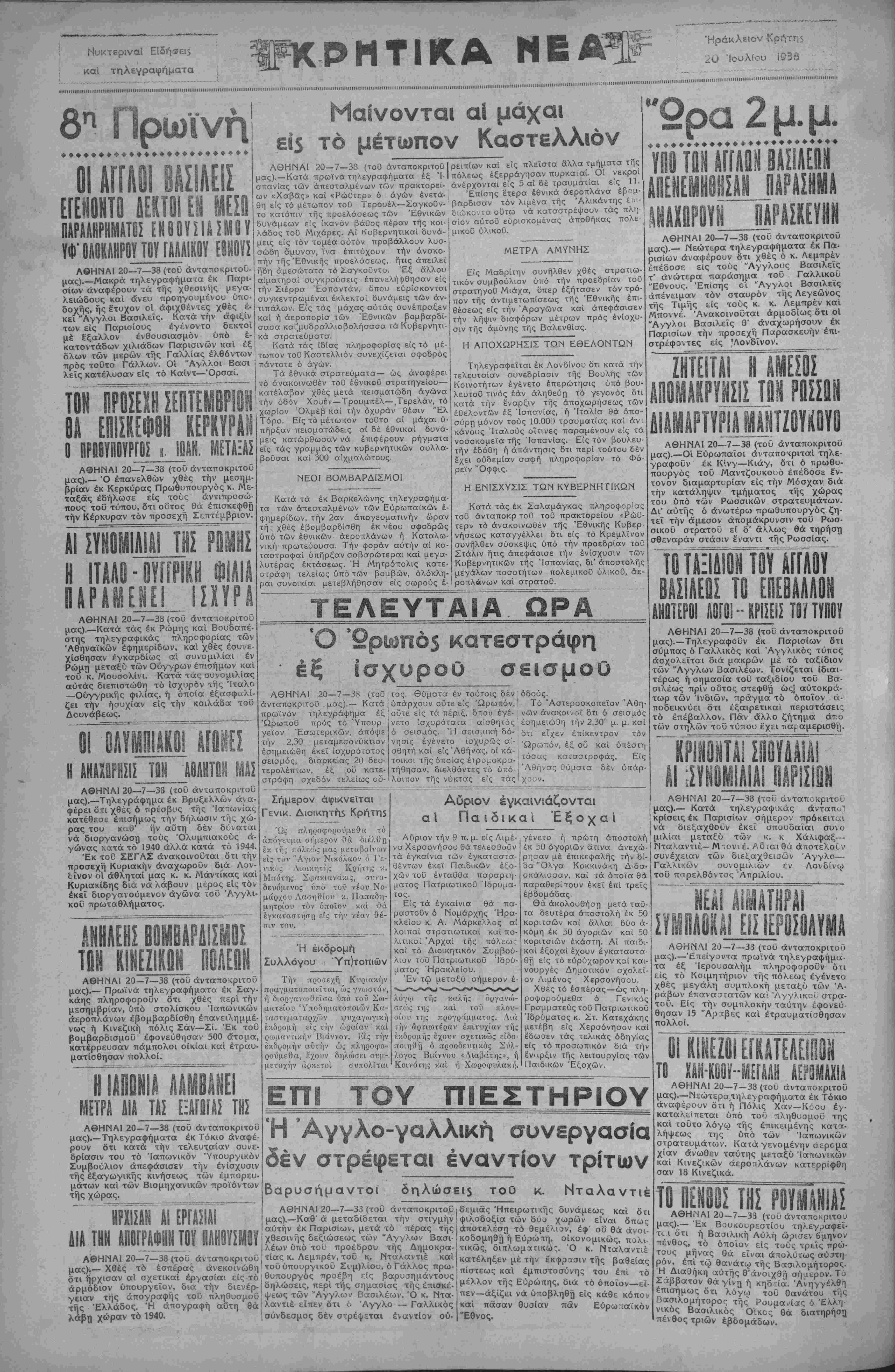 ΑΘΗΝΑΙ 20—7—38 (τού άντατιοκριτου