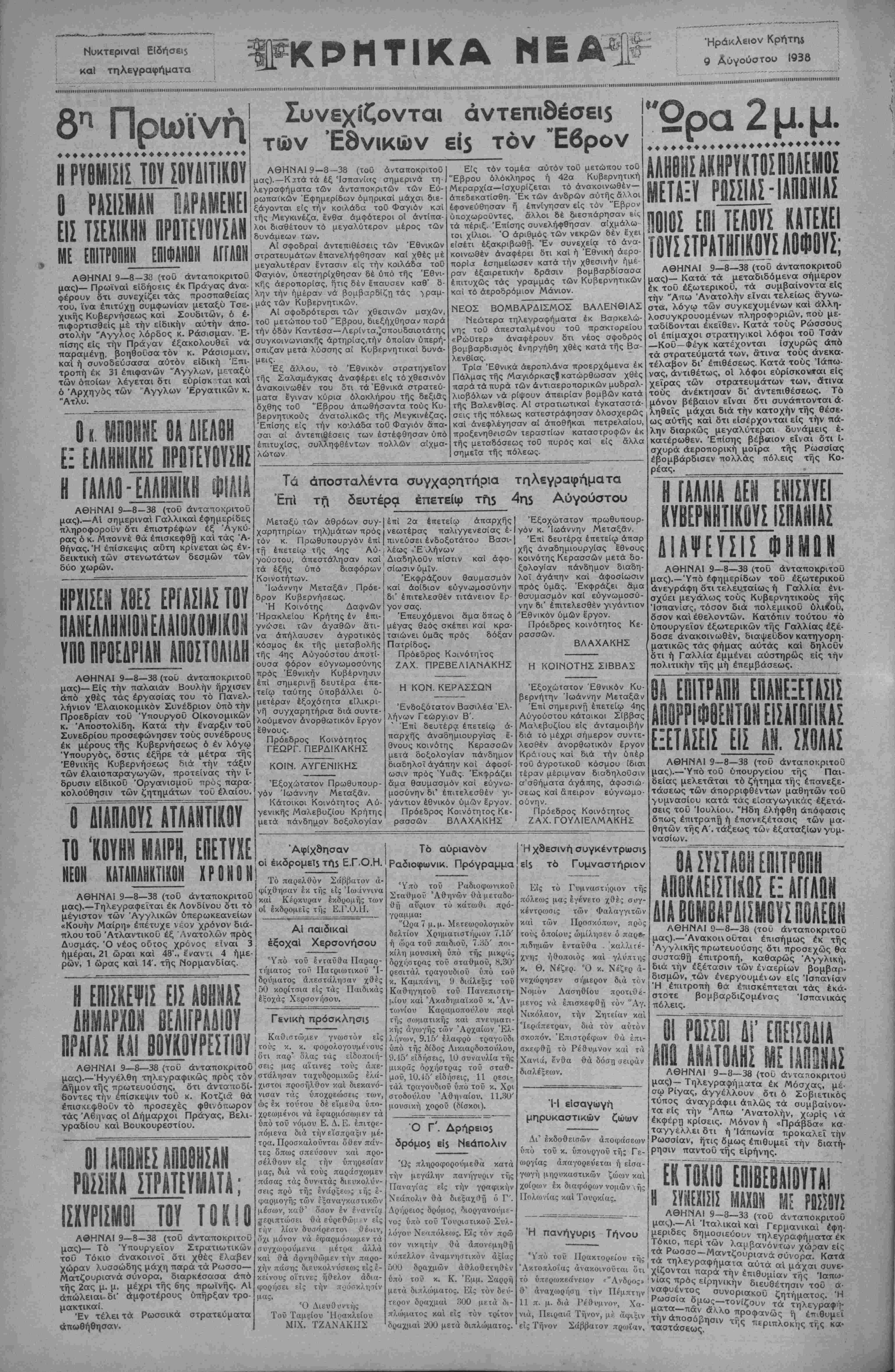 ΑΘΗΝΑΙ 9—8—38 (τού άνταποκριτοΰ