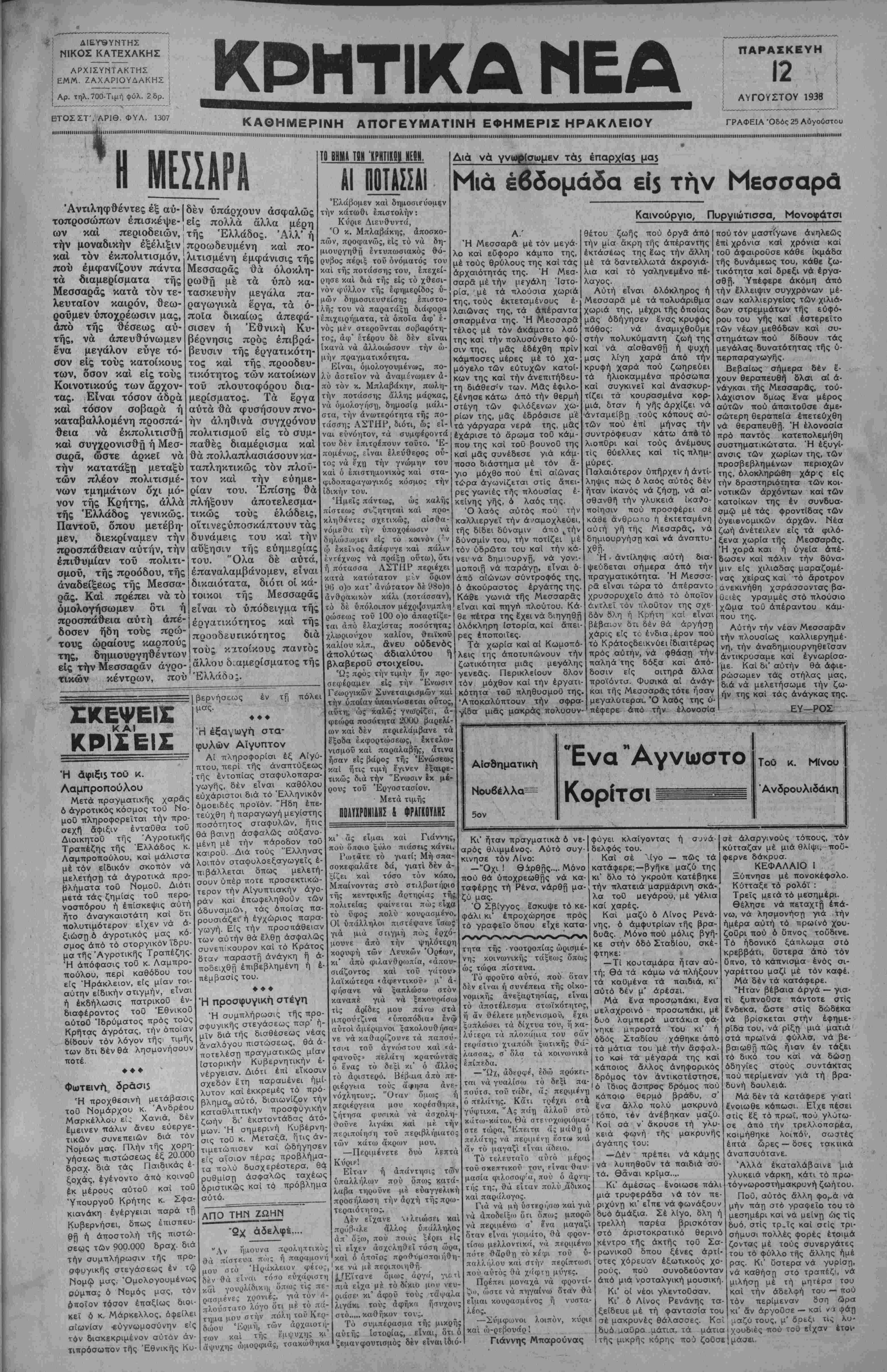 ΑΘΗΝΑΙ 12—8—38 (τοΰ'άνταποκριτοΰ