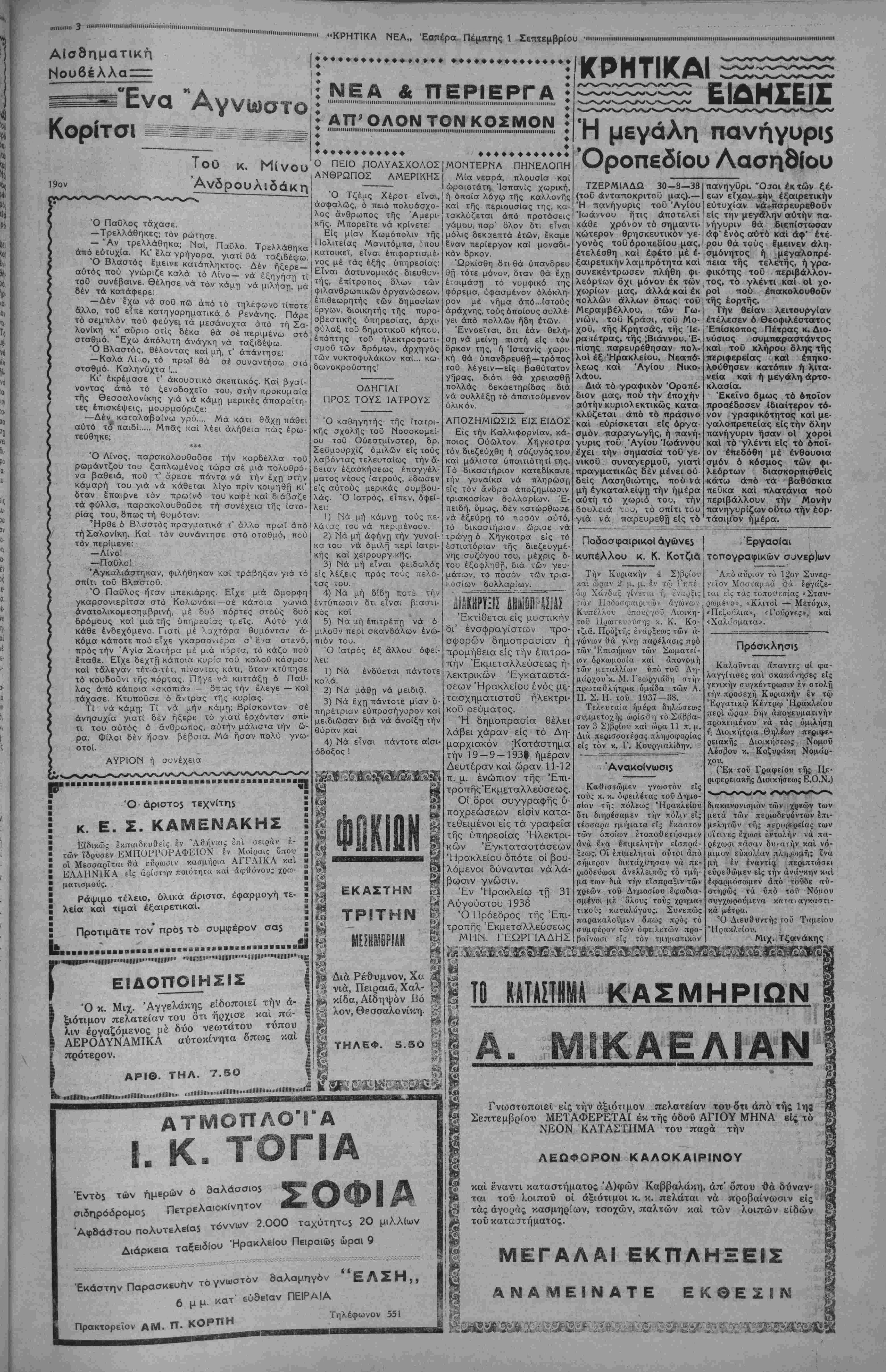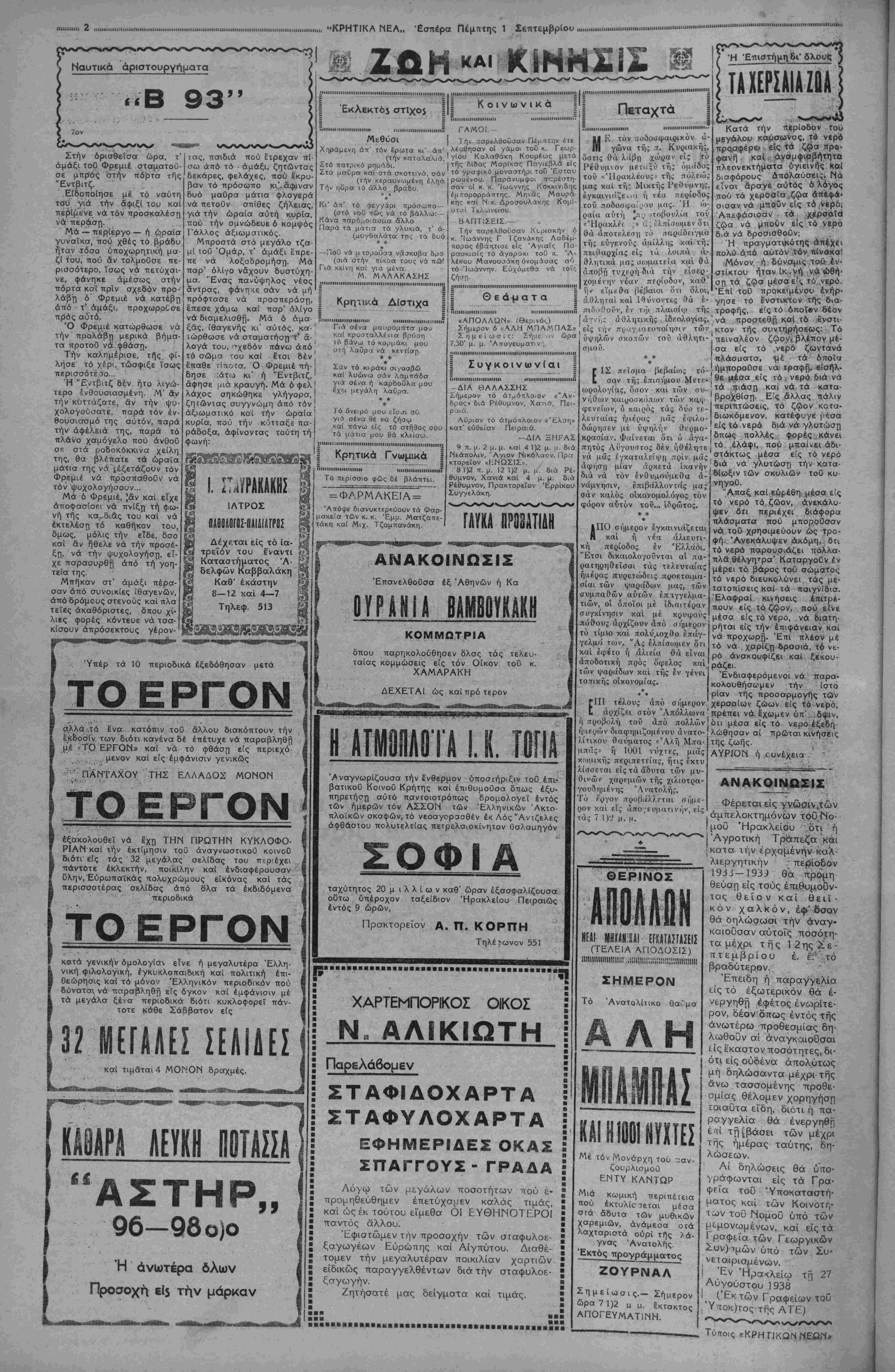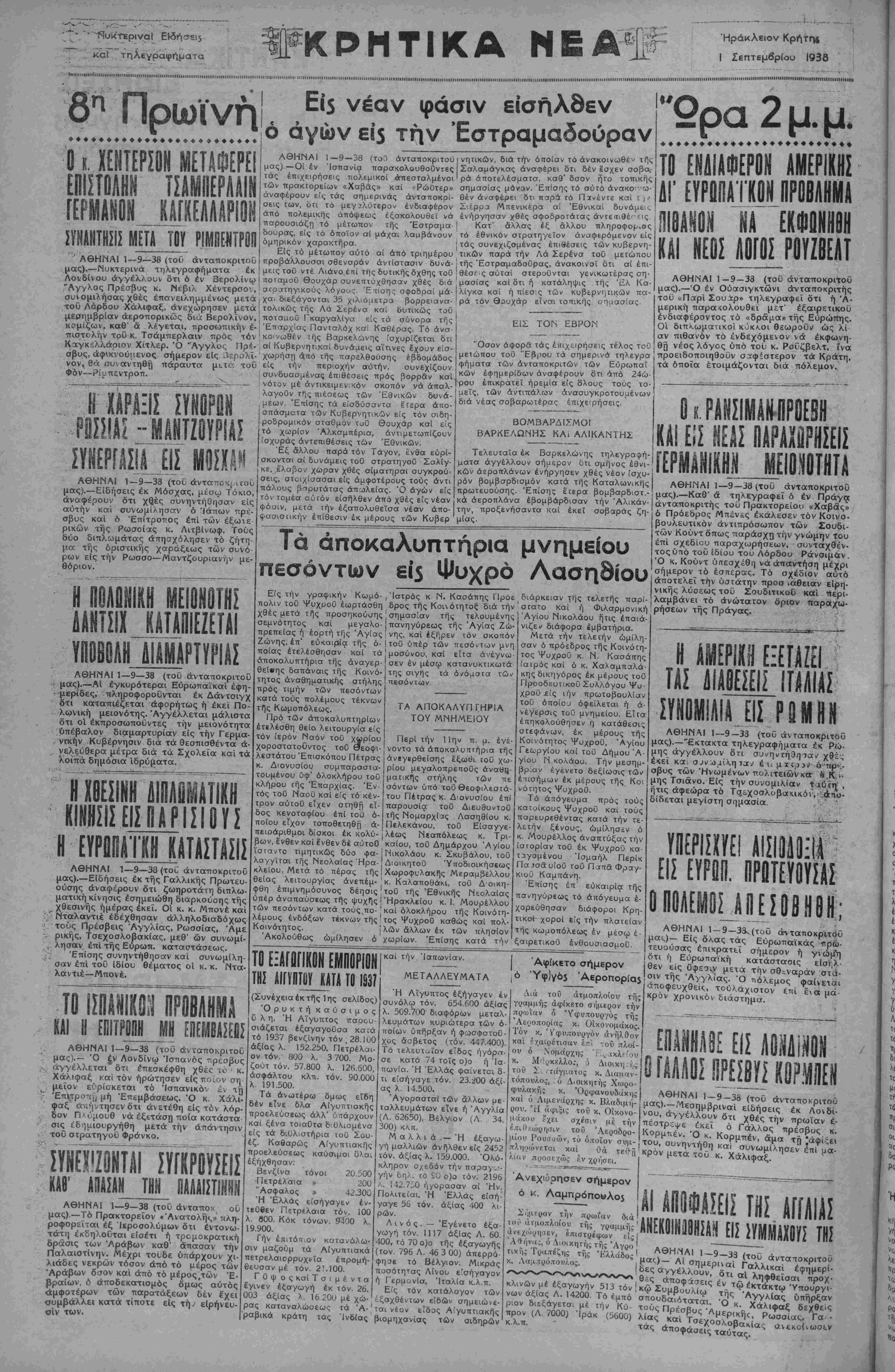 ΑΘΗΝΑΙ 1-9-38 (τοϋ άνταποκριτοΰ