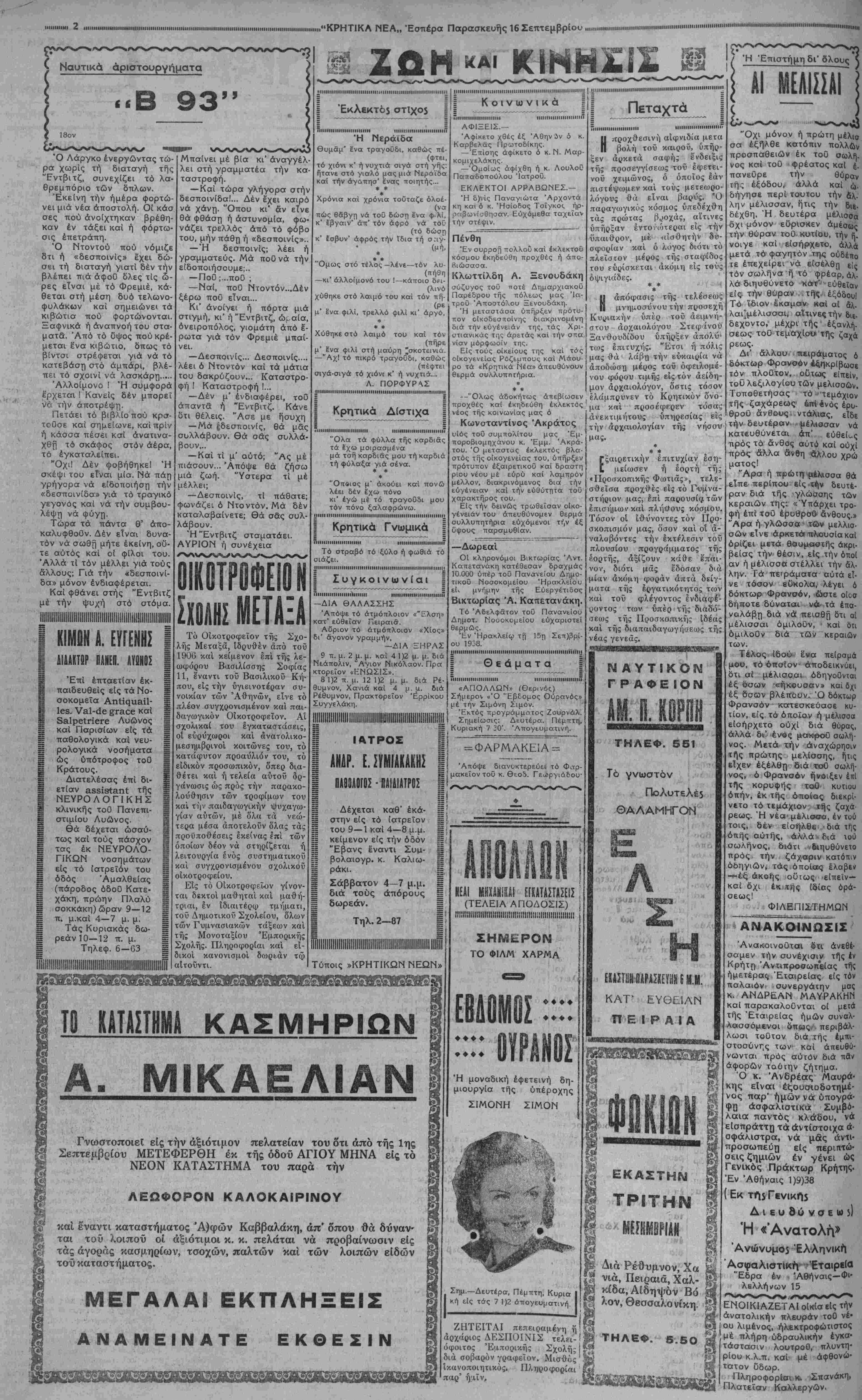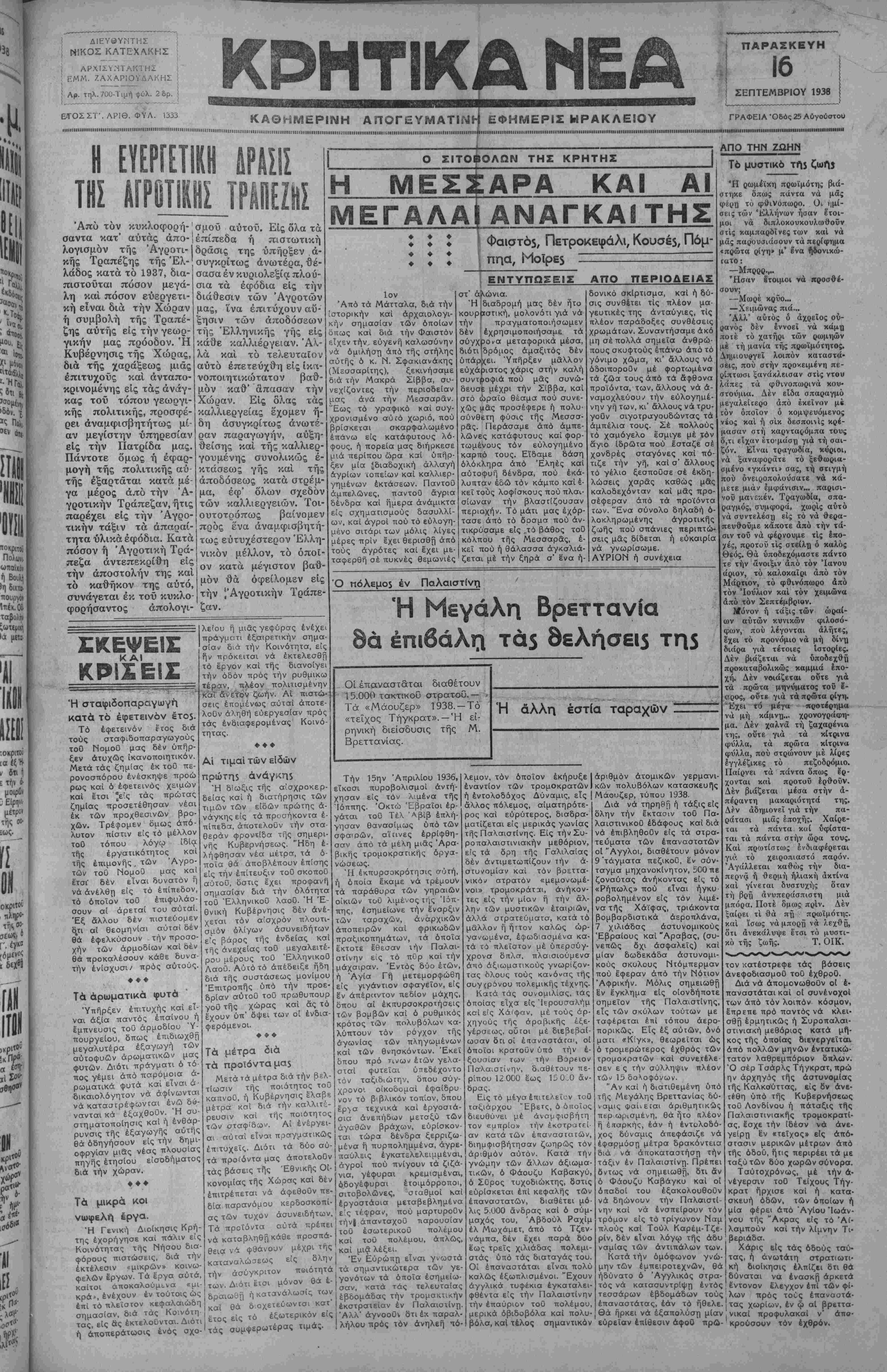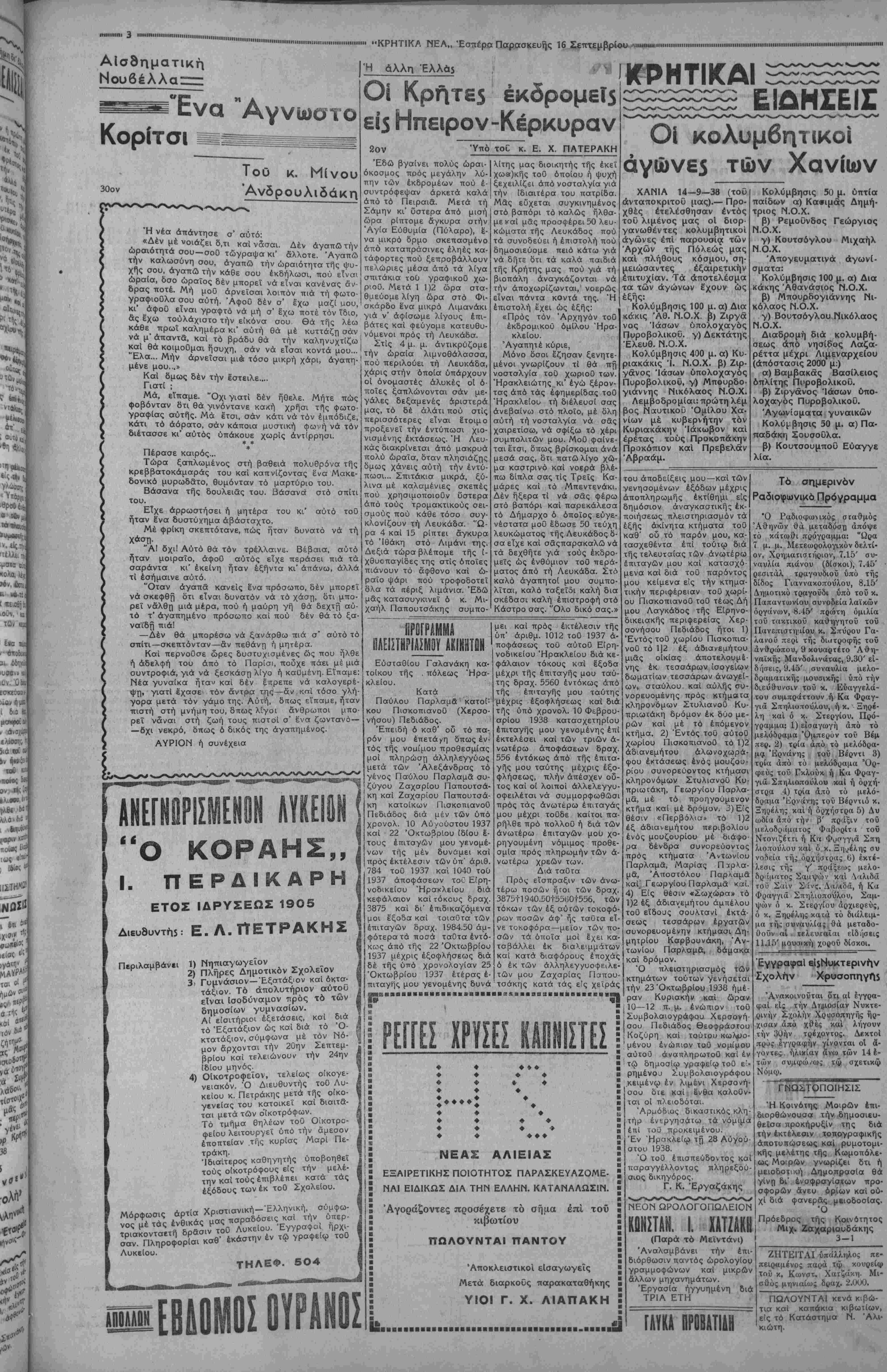ΑΘΗΝΑΙ 16— 9— 38 (τοθ άνταπυκριτοΰ