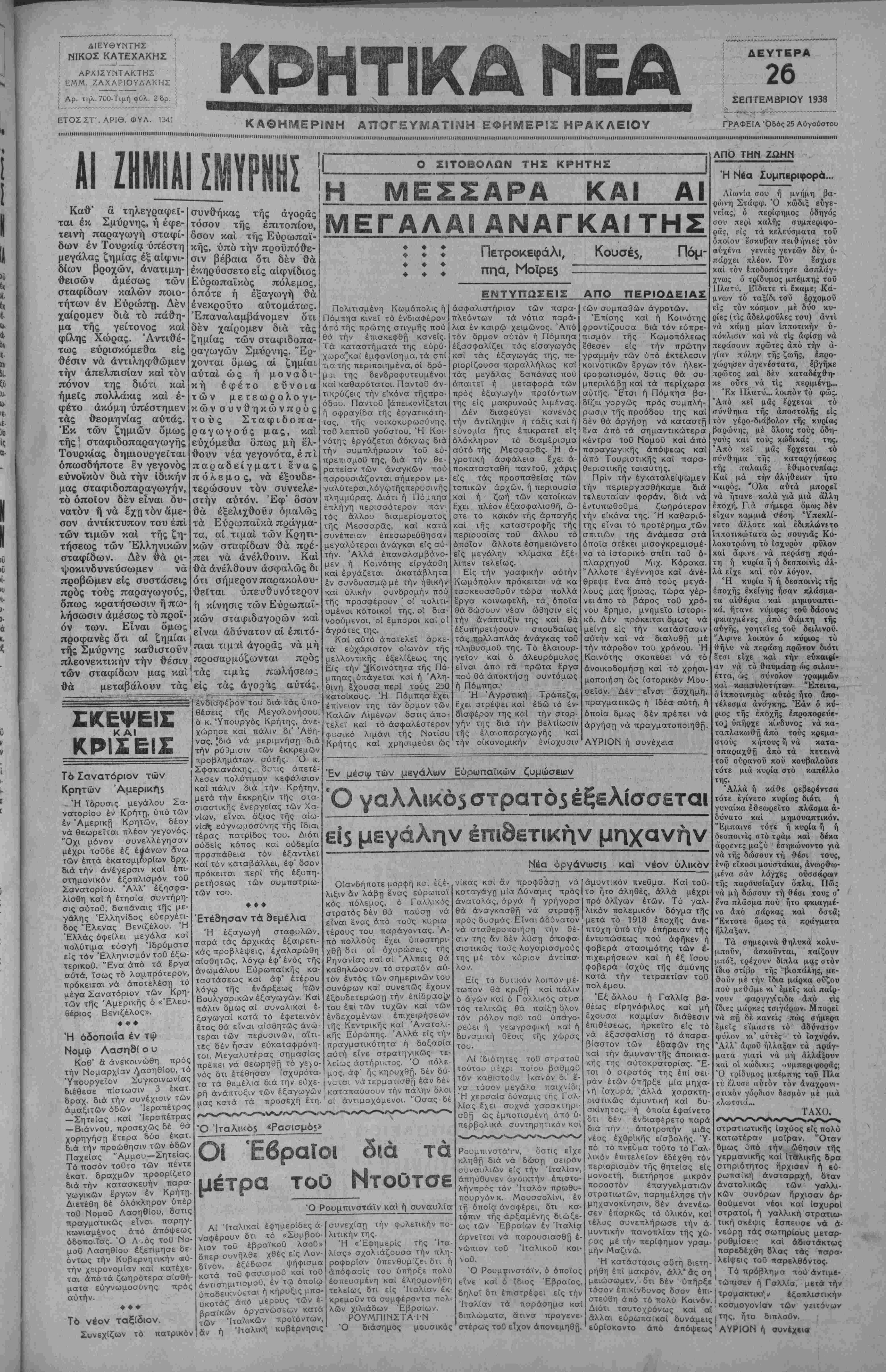 ΑΘΗΝΑΙ 26—9—38 (τού άνταποκριτοθ