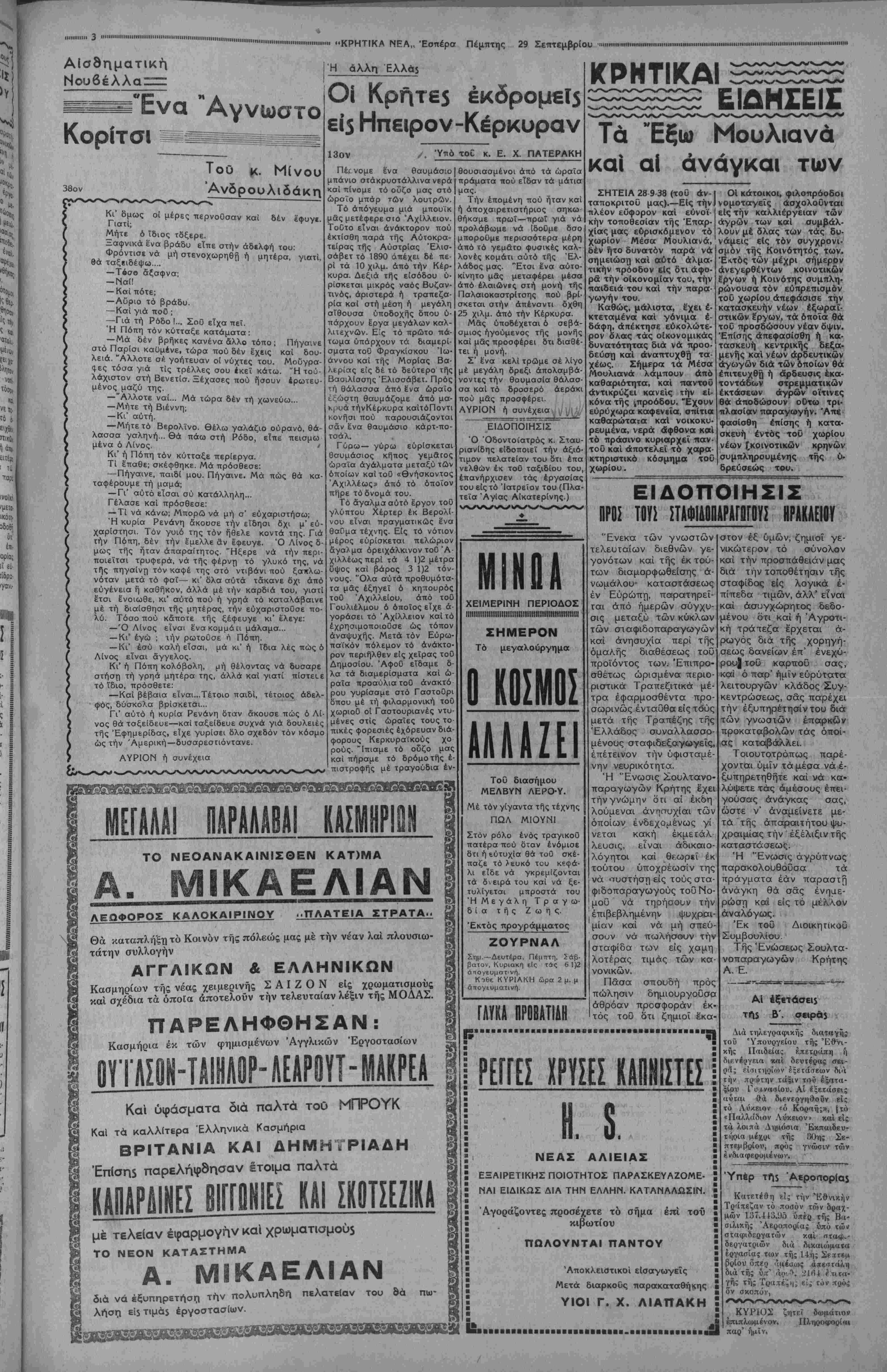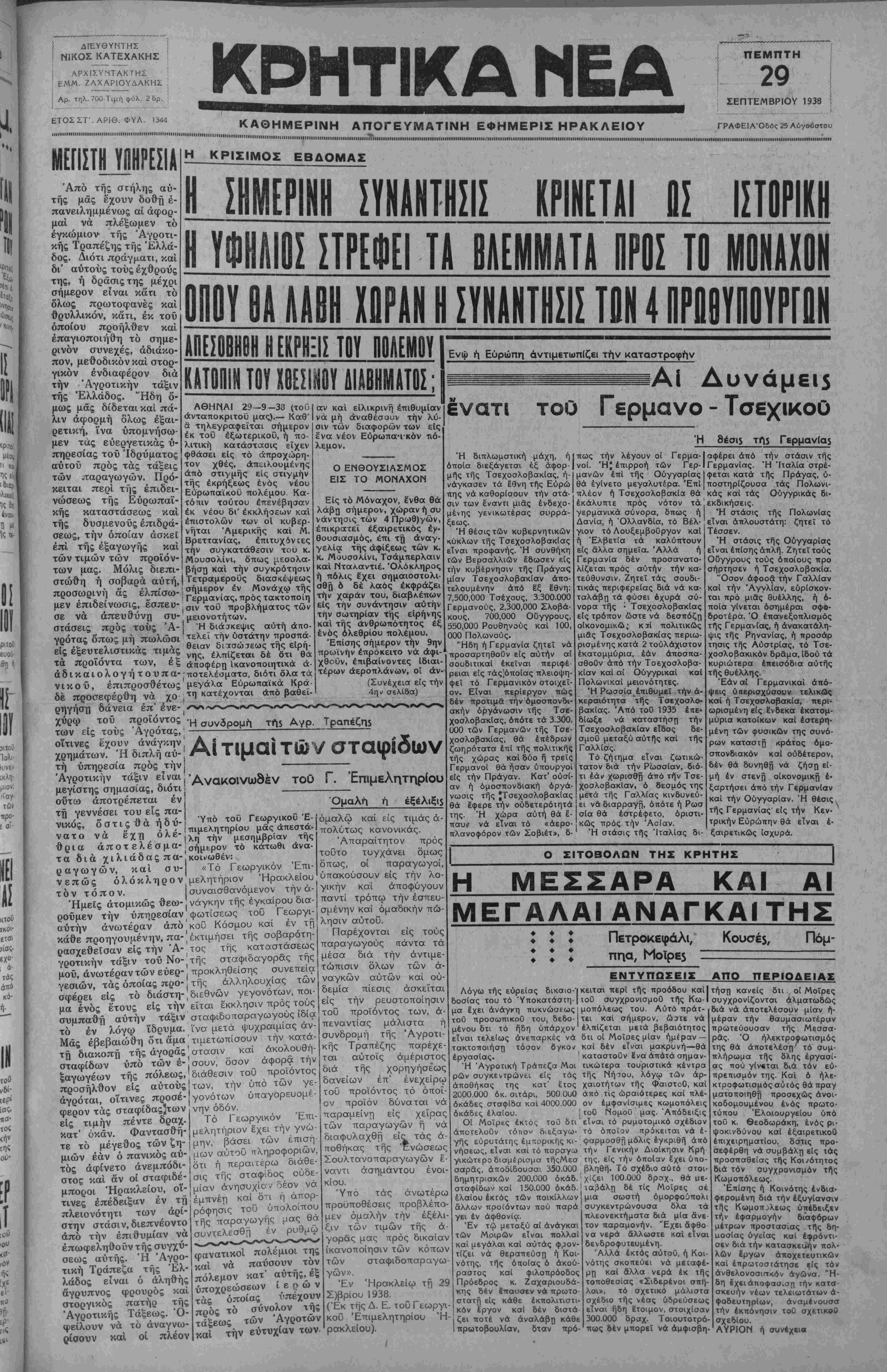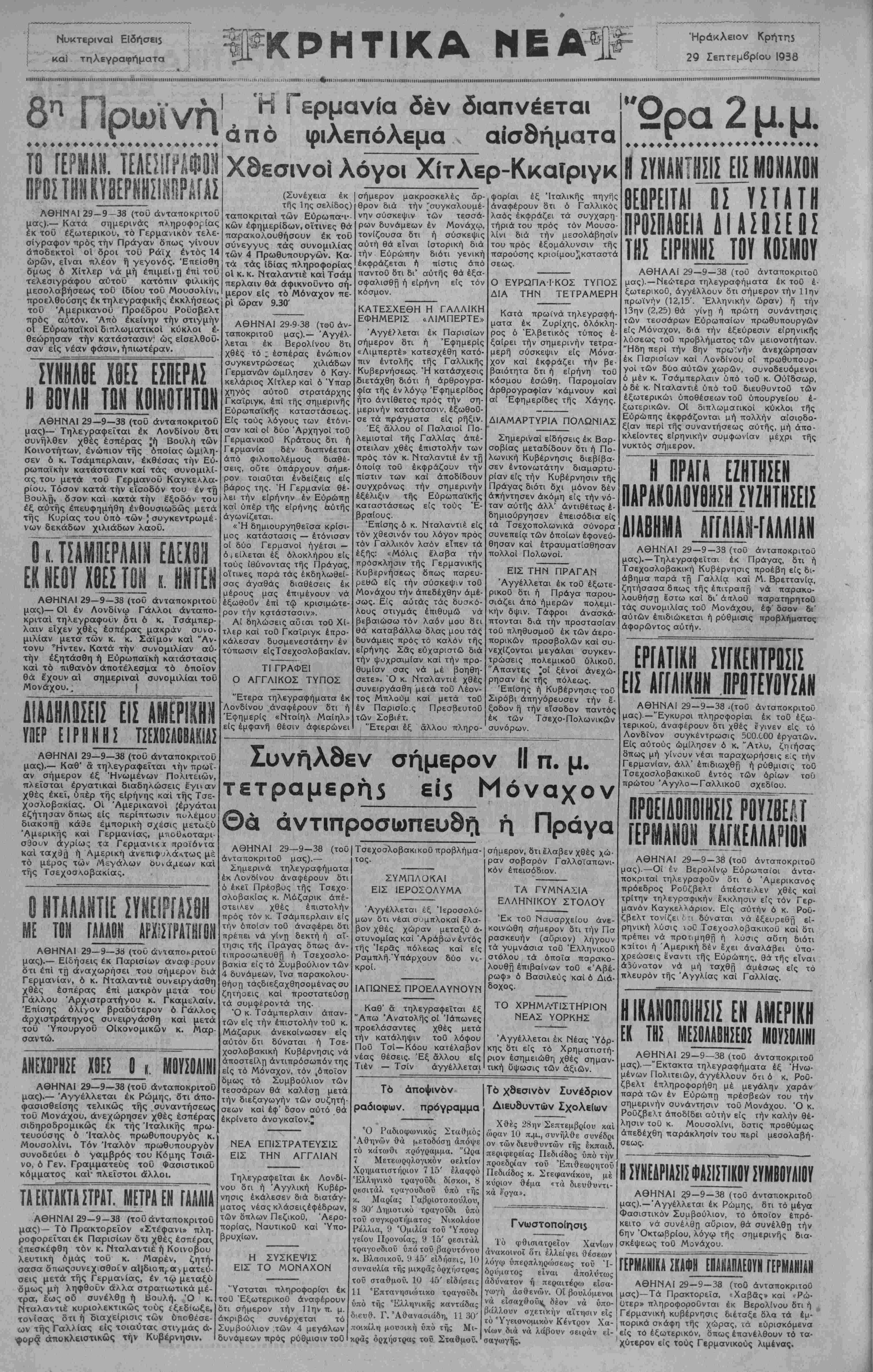 ΑΘΗΝΑΙ 29-9-38 (τοθ άνταποκριτοθ