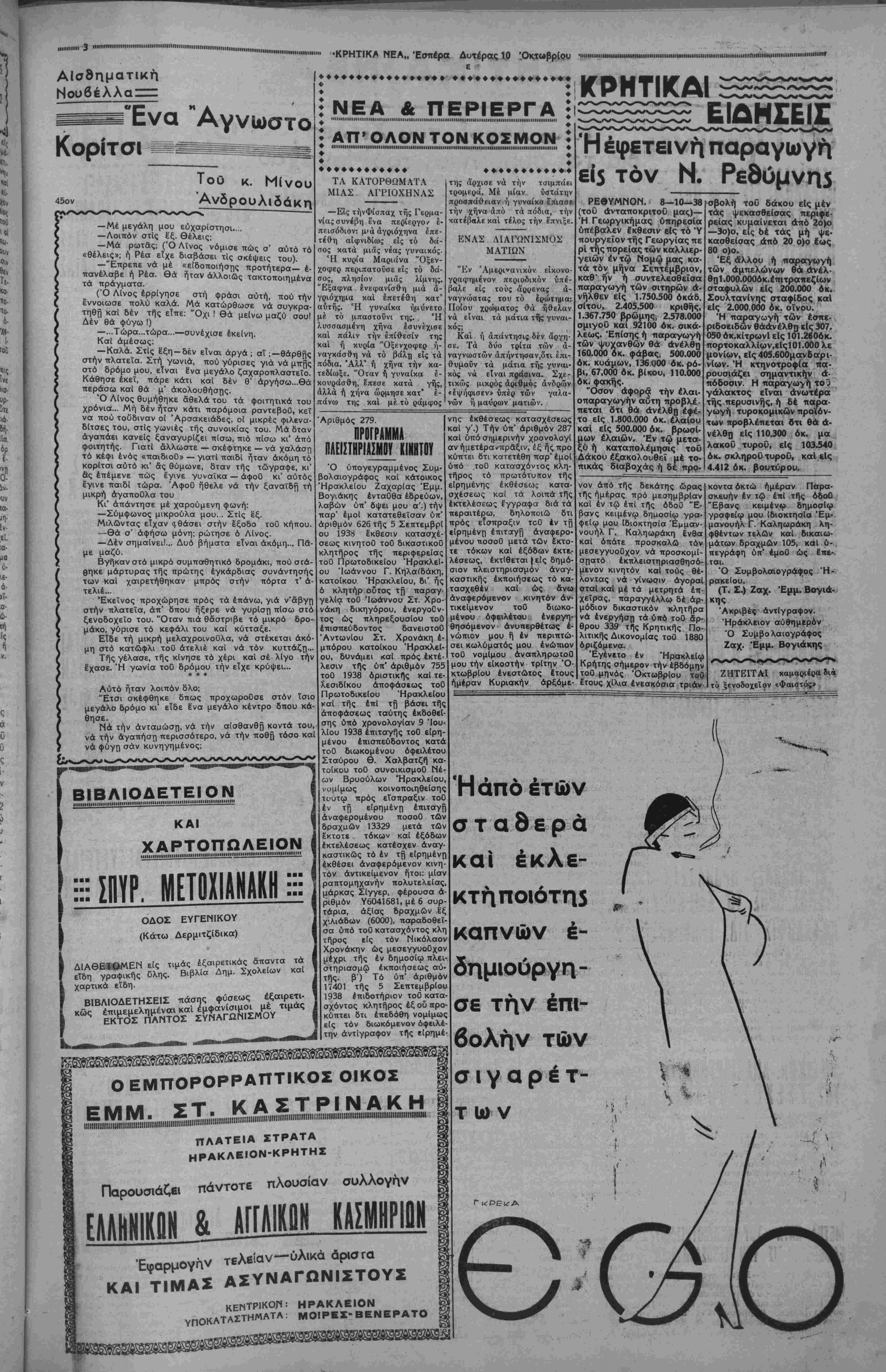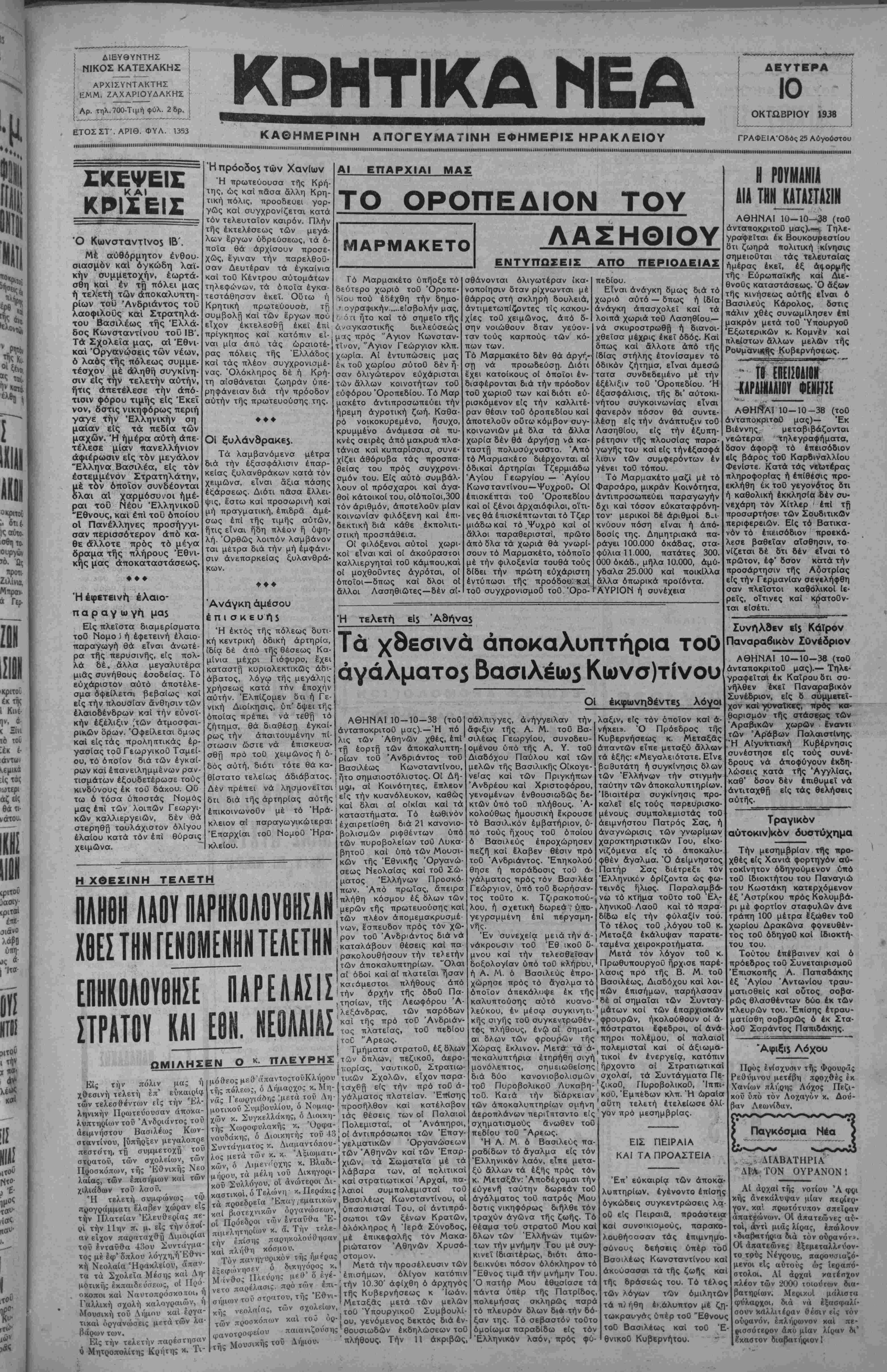 ΑΘΗΝΑΙ 10—10—38 (τοΰ άνταποκριτοΰ