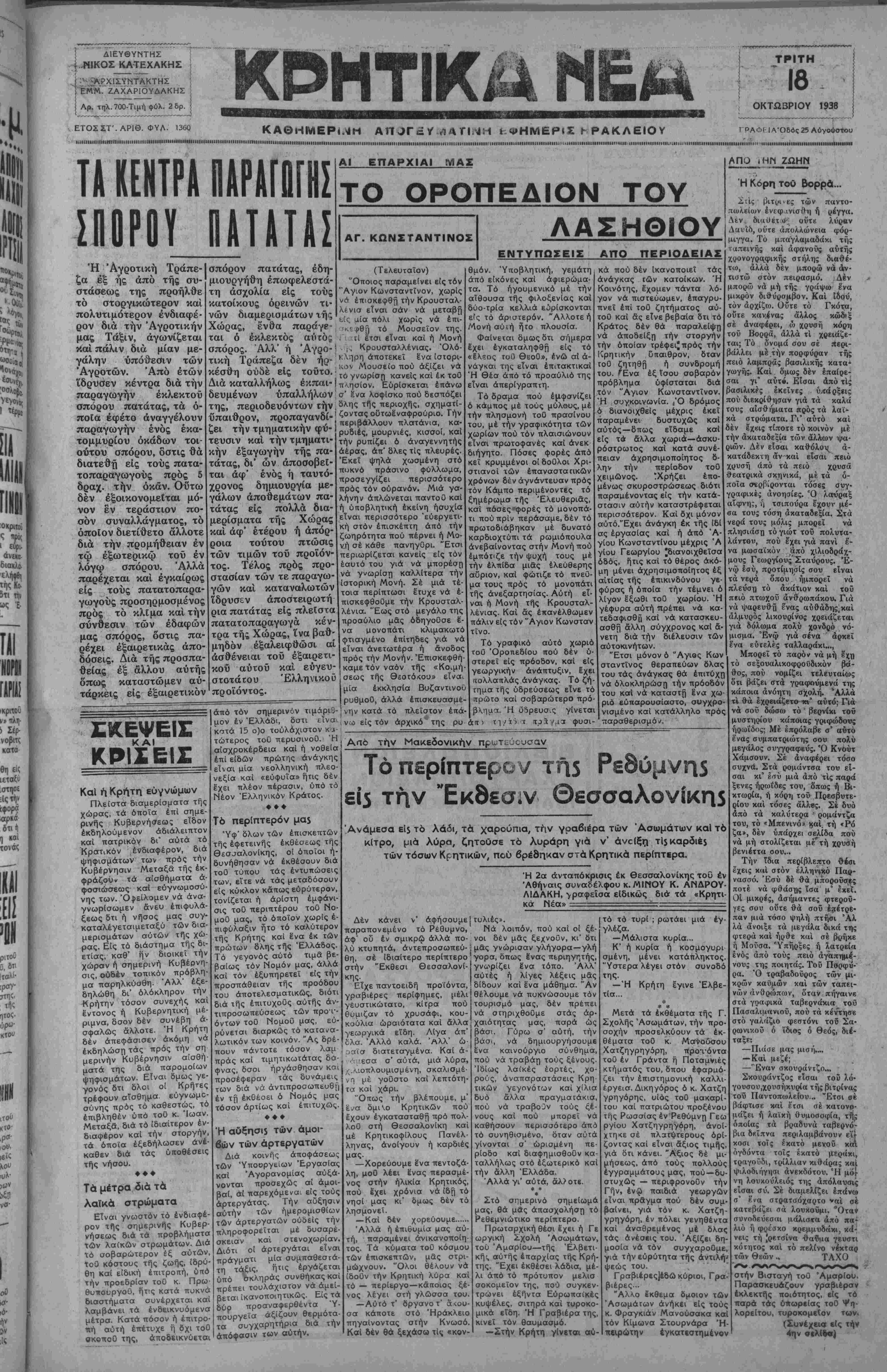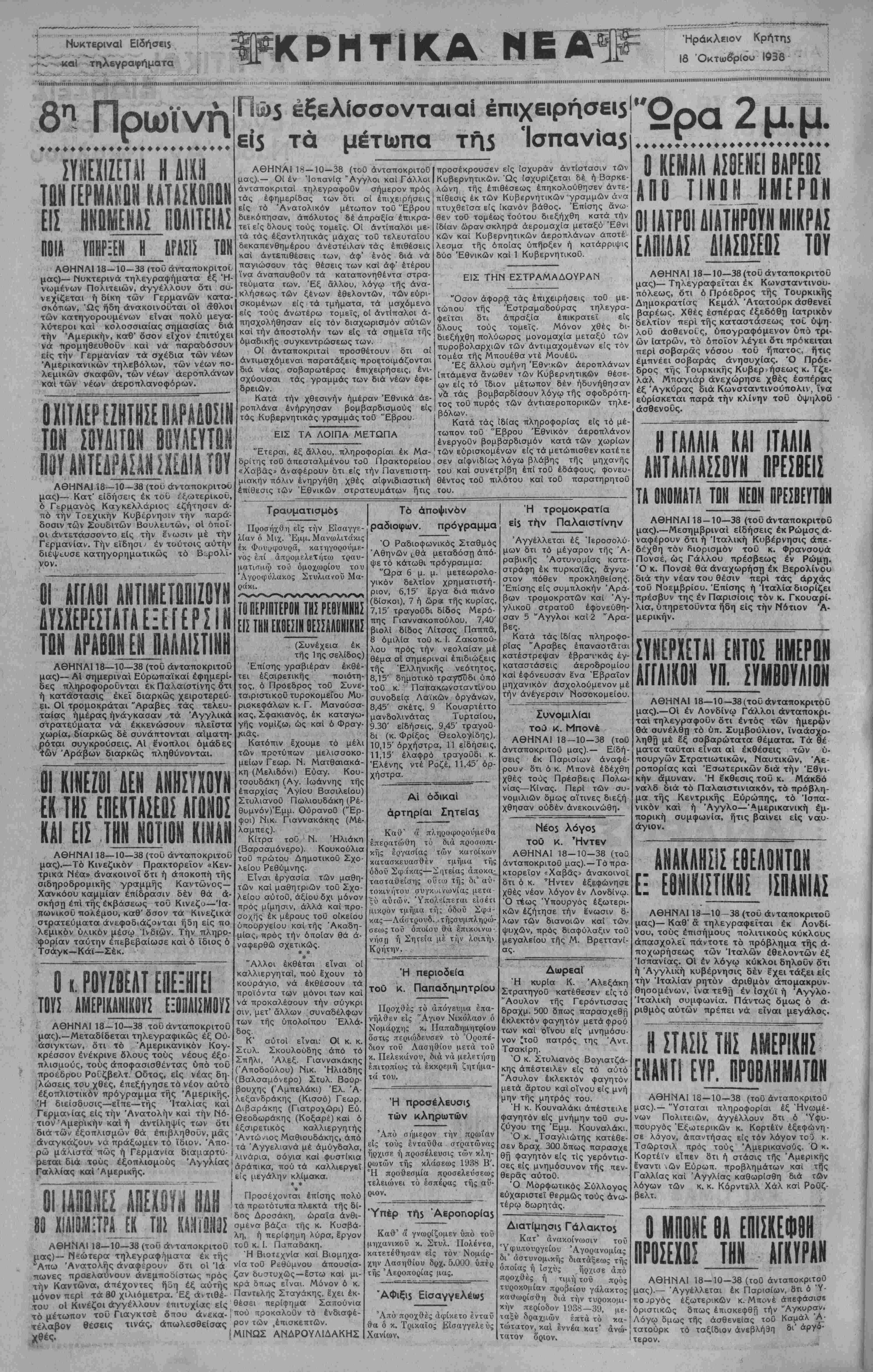 ΑΘΗΝΑΙ 18—10—38 (τοΰ άνταποκριτοΰ