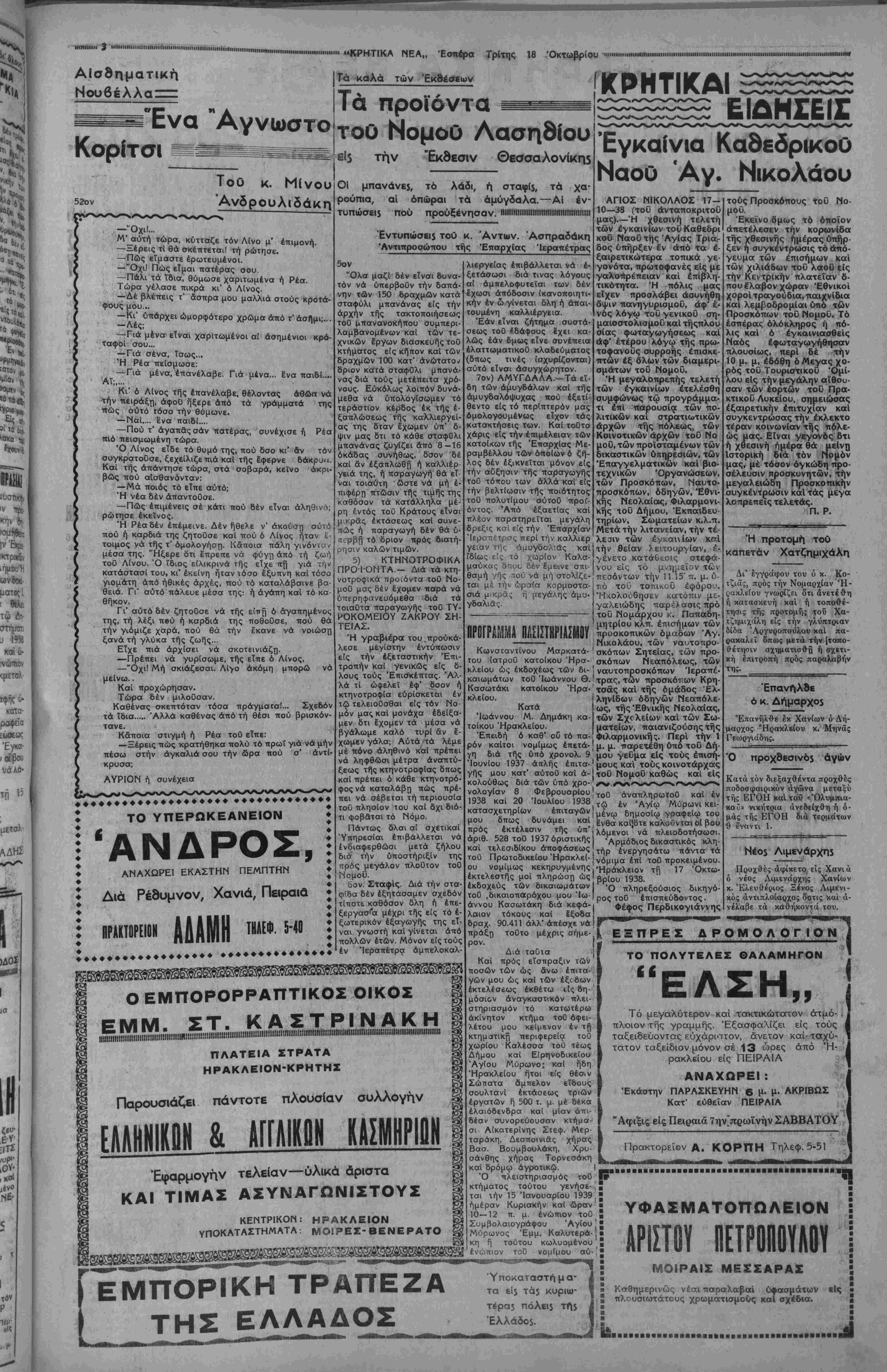 ΑΘΗΝΑΙ 18—10-38 (τοΰ άνταποκριτοΰ