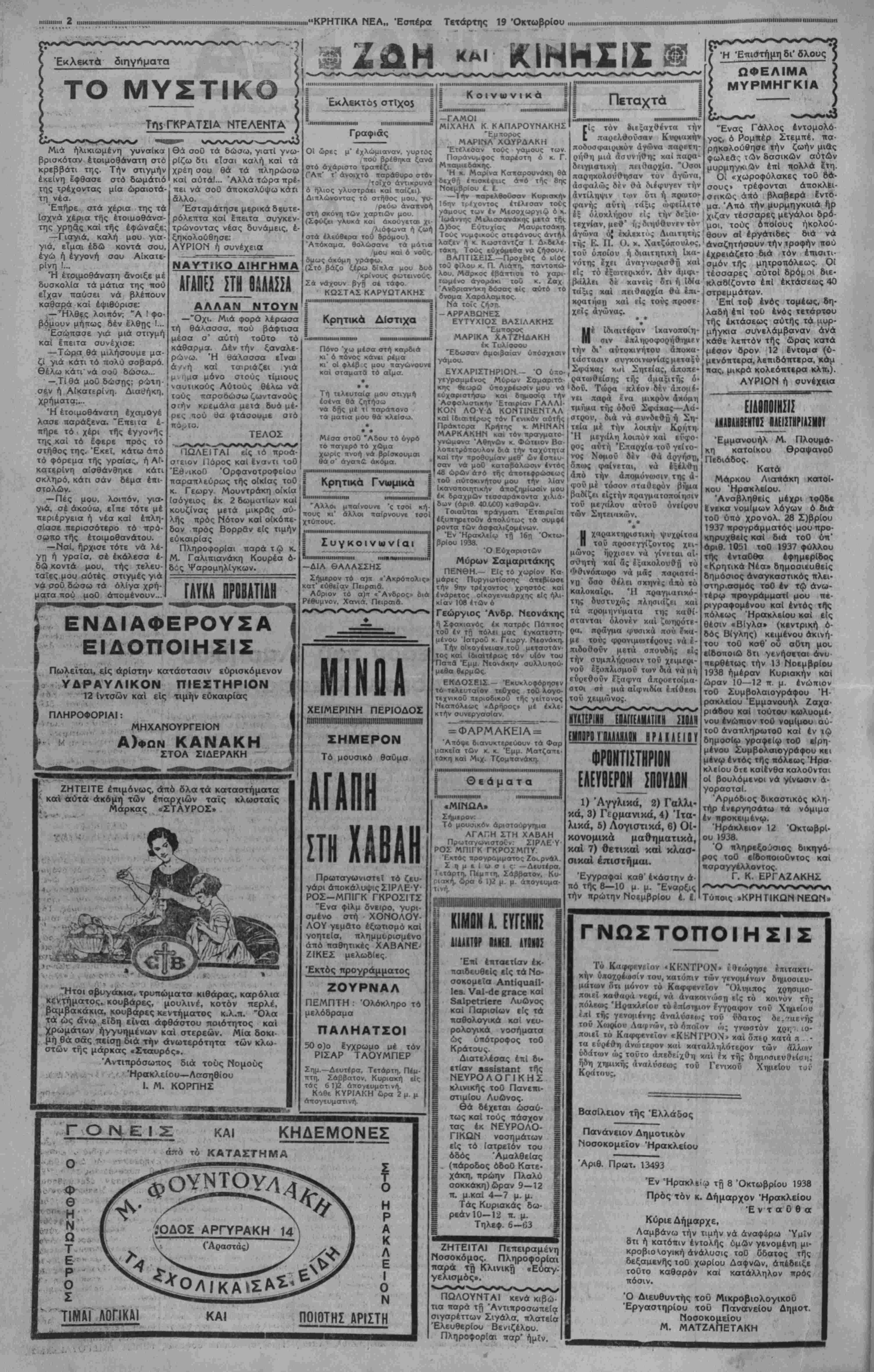 ΑΘΗΝΑΙ 19-10—38 (τοθ άνταποκριτοθ