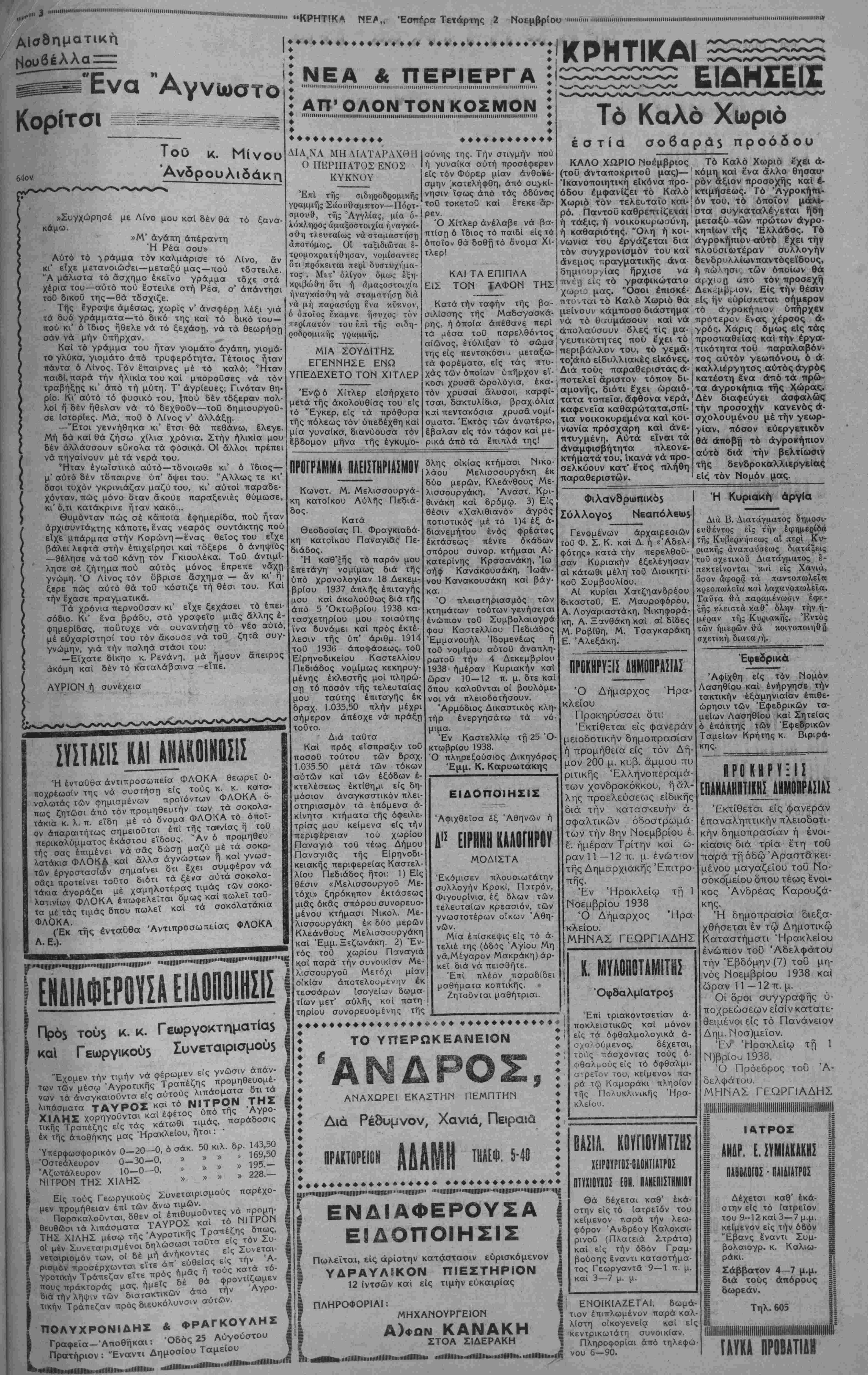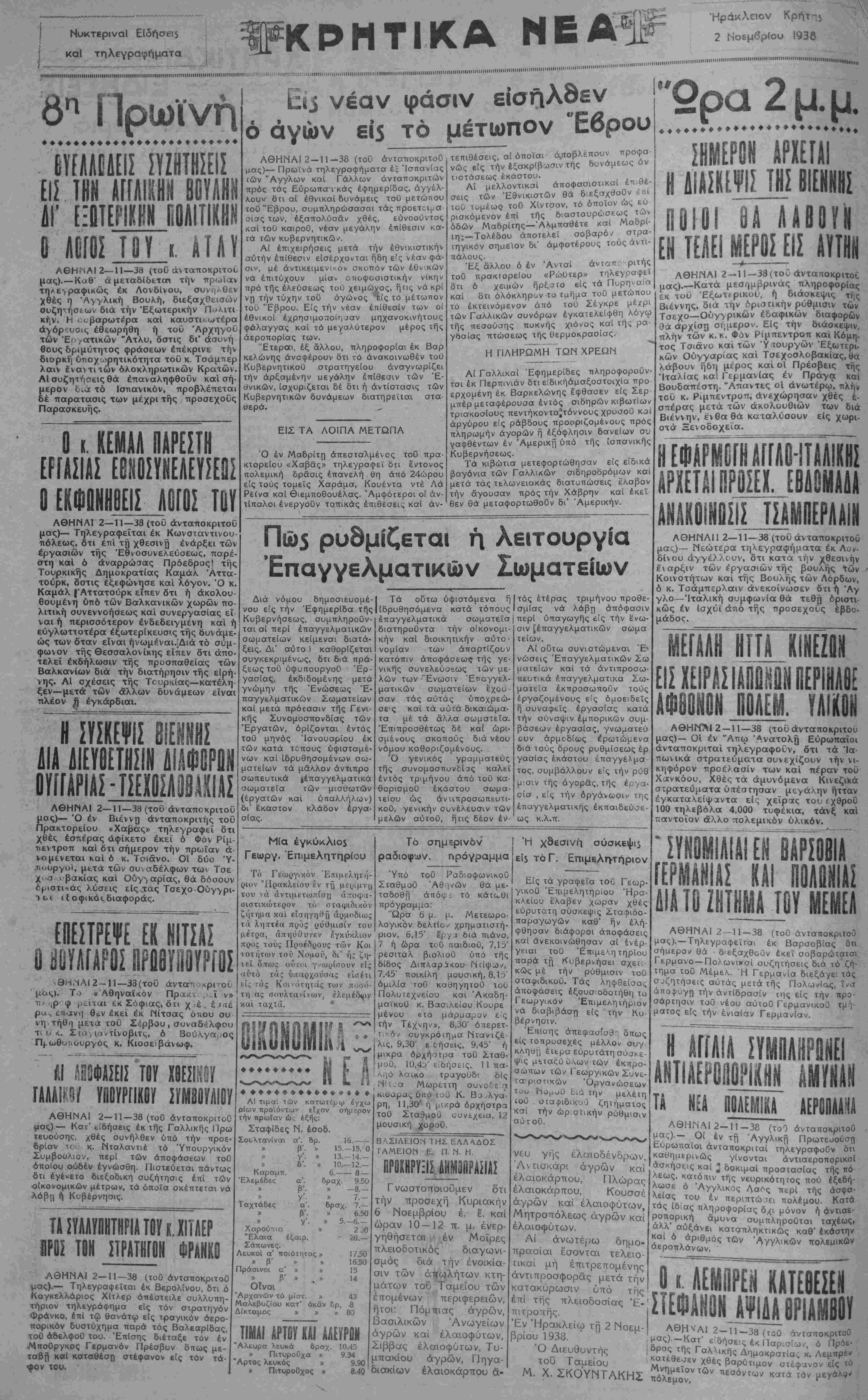 ΑΘΗΝΜ 2-11-38 (τοϋ ανταποκριτού