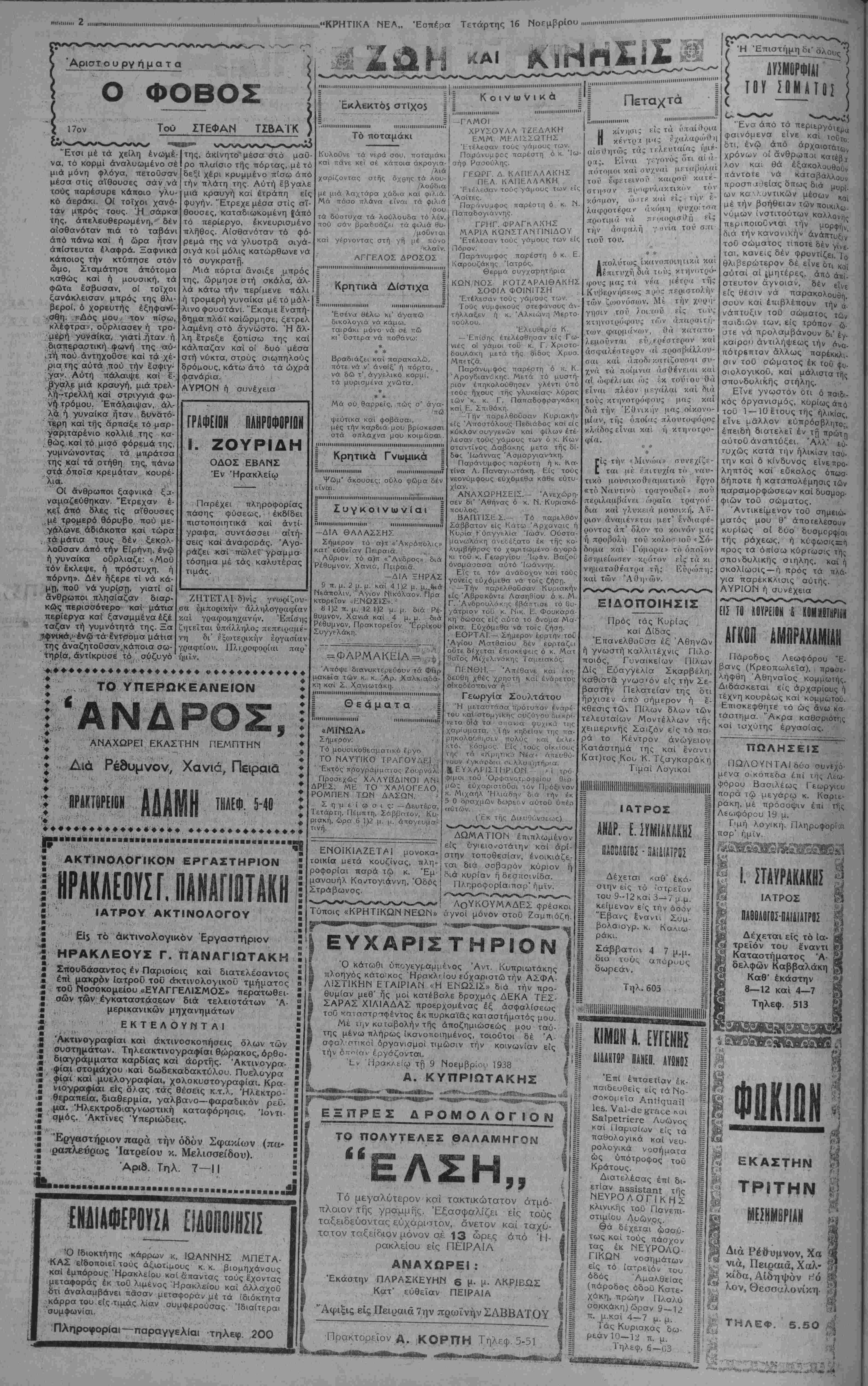 ΑΘΗΝΑΙ 16—11— 38 (τοΰ άνταιτοκρι.