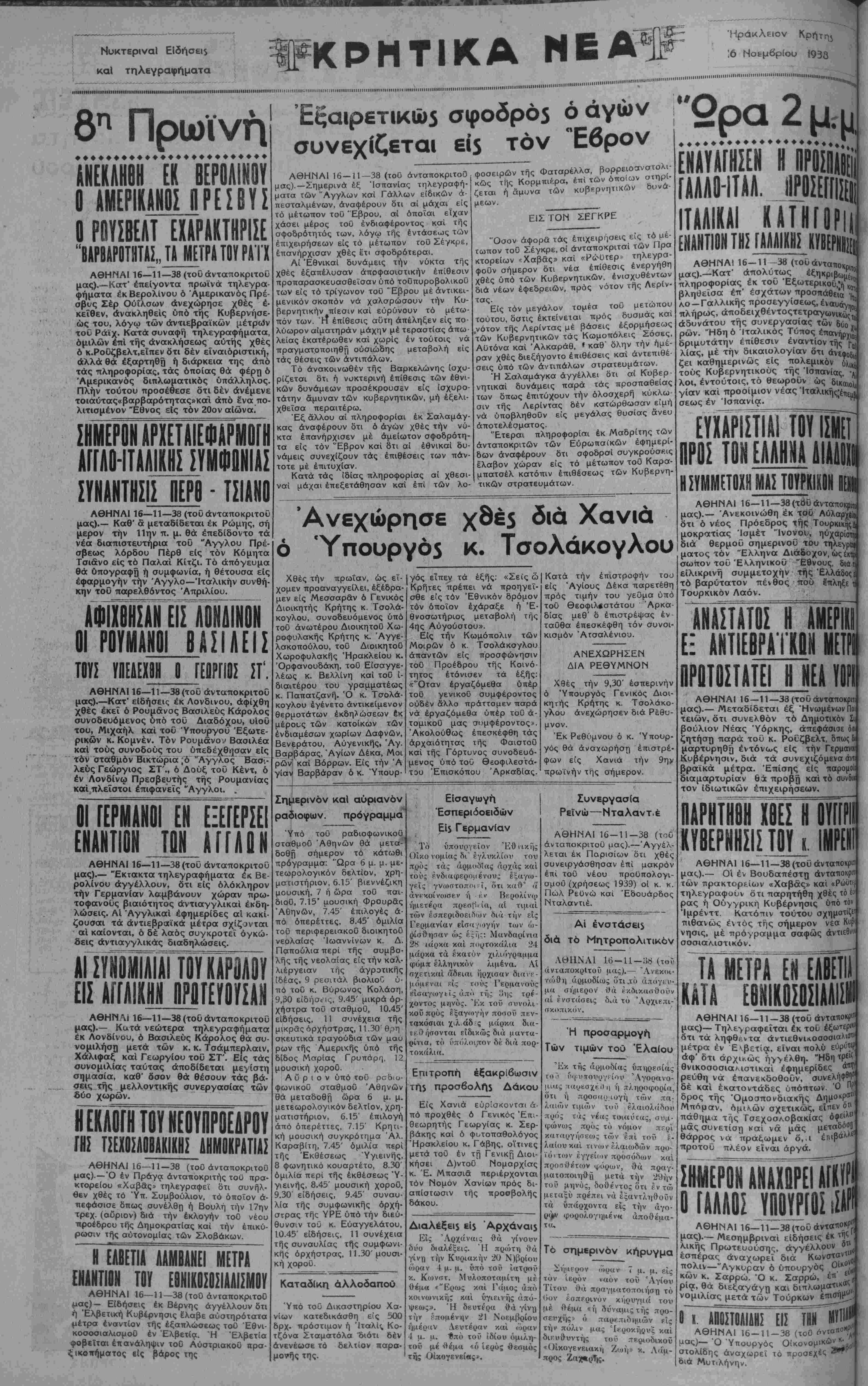 ΑΘΗΝΑΙ 16—11—38(τοΰάνταποκρι