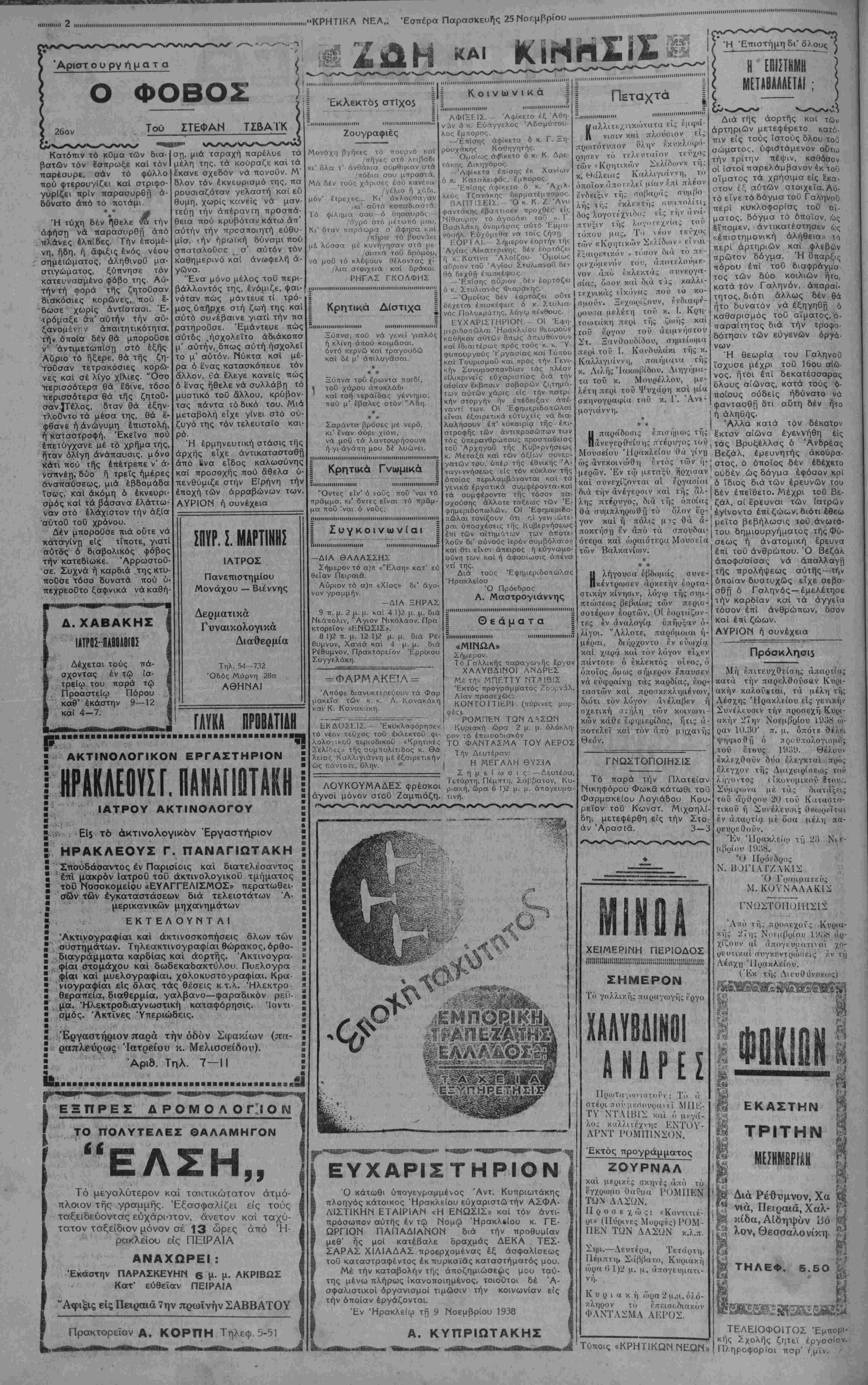 ΑΘΗΝΑΙ 25—11—38 (του ανταποκριτού