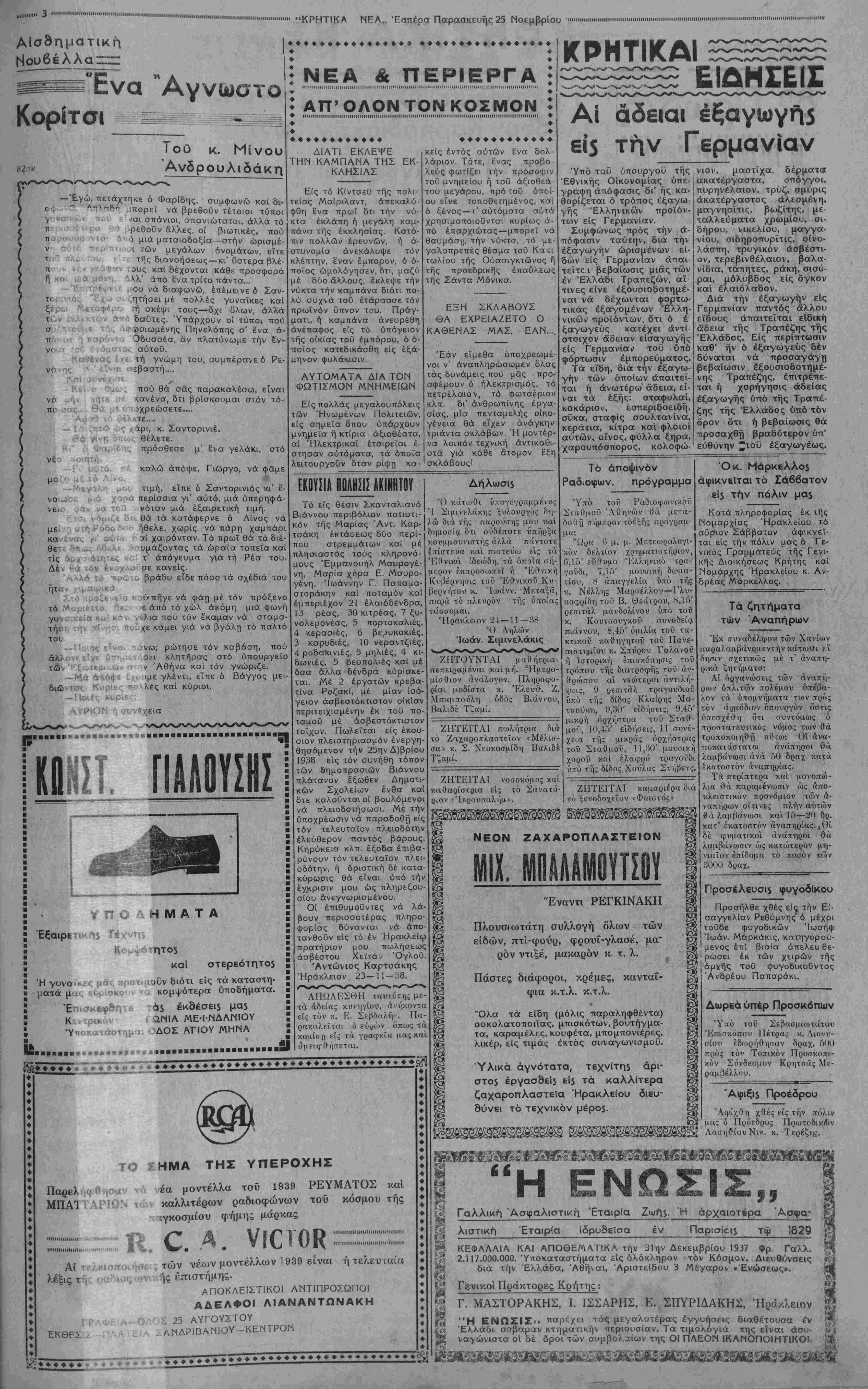 ΑΘΗΝΑΙ 25-11—38 (του ανταποκριτού