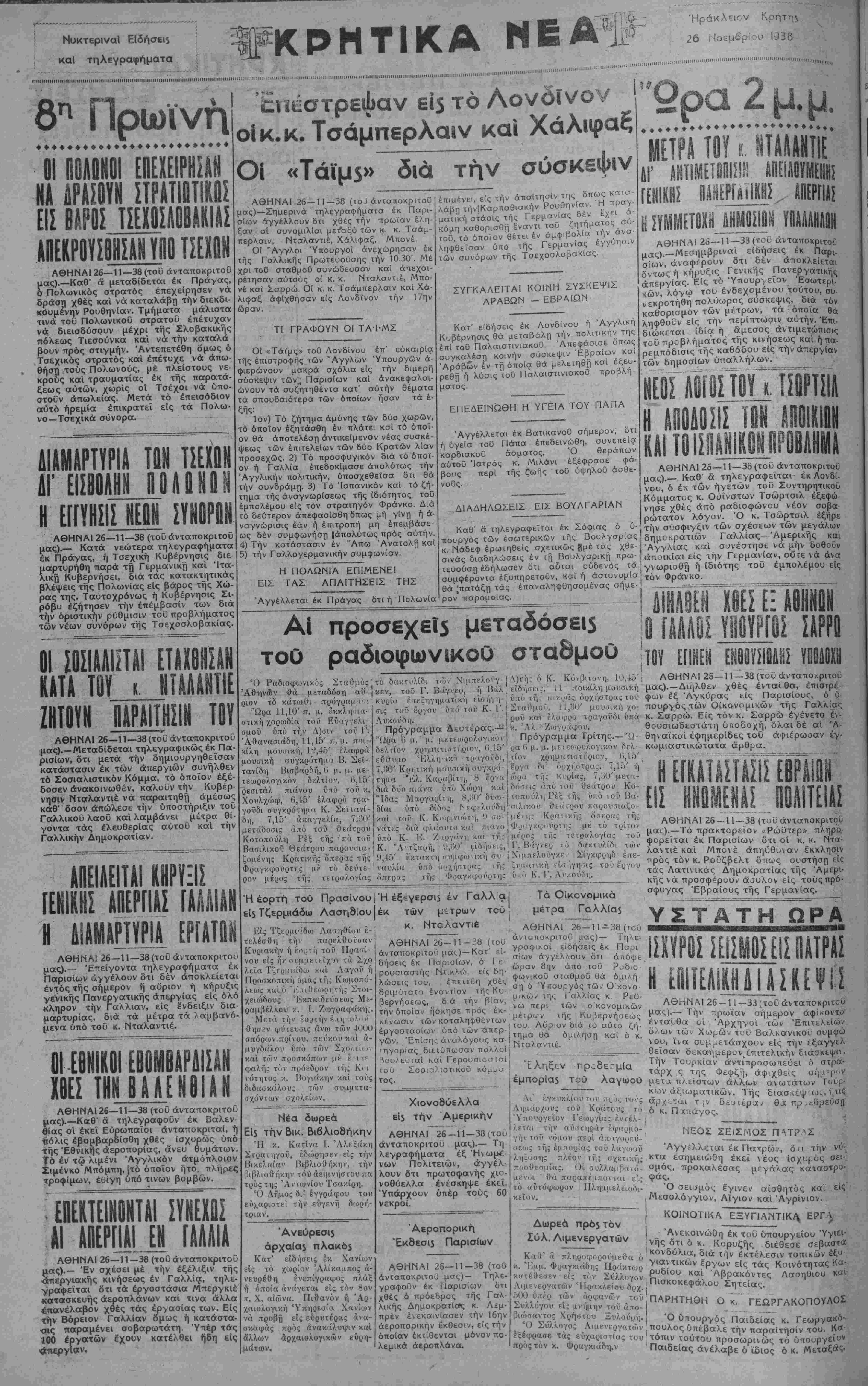 ΑΘΗΝΑΙ 26-11—38 (τοΰ ανταποκριτού