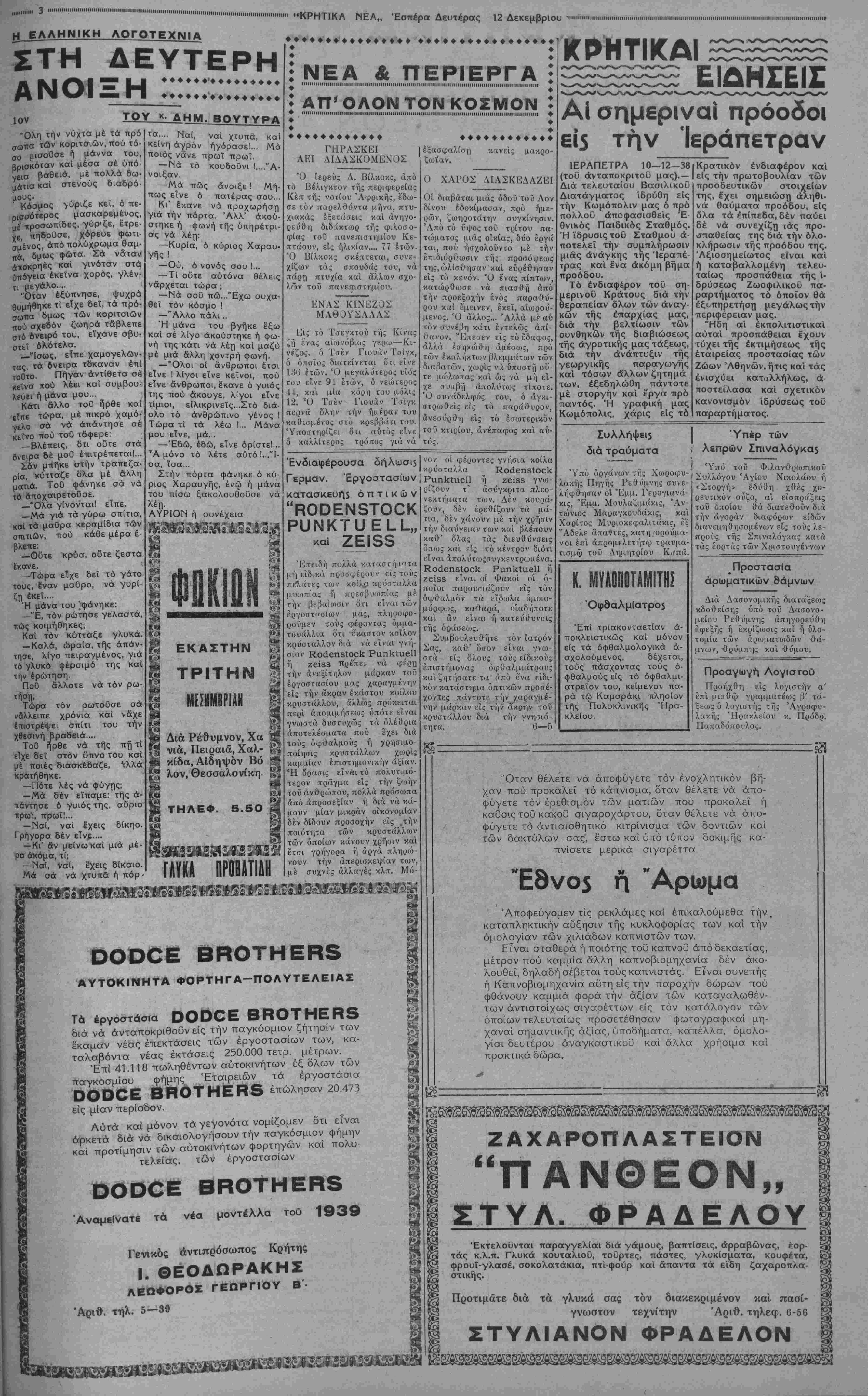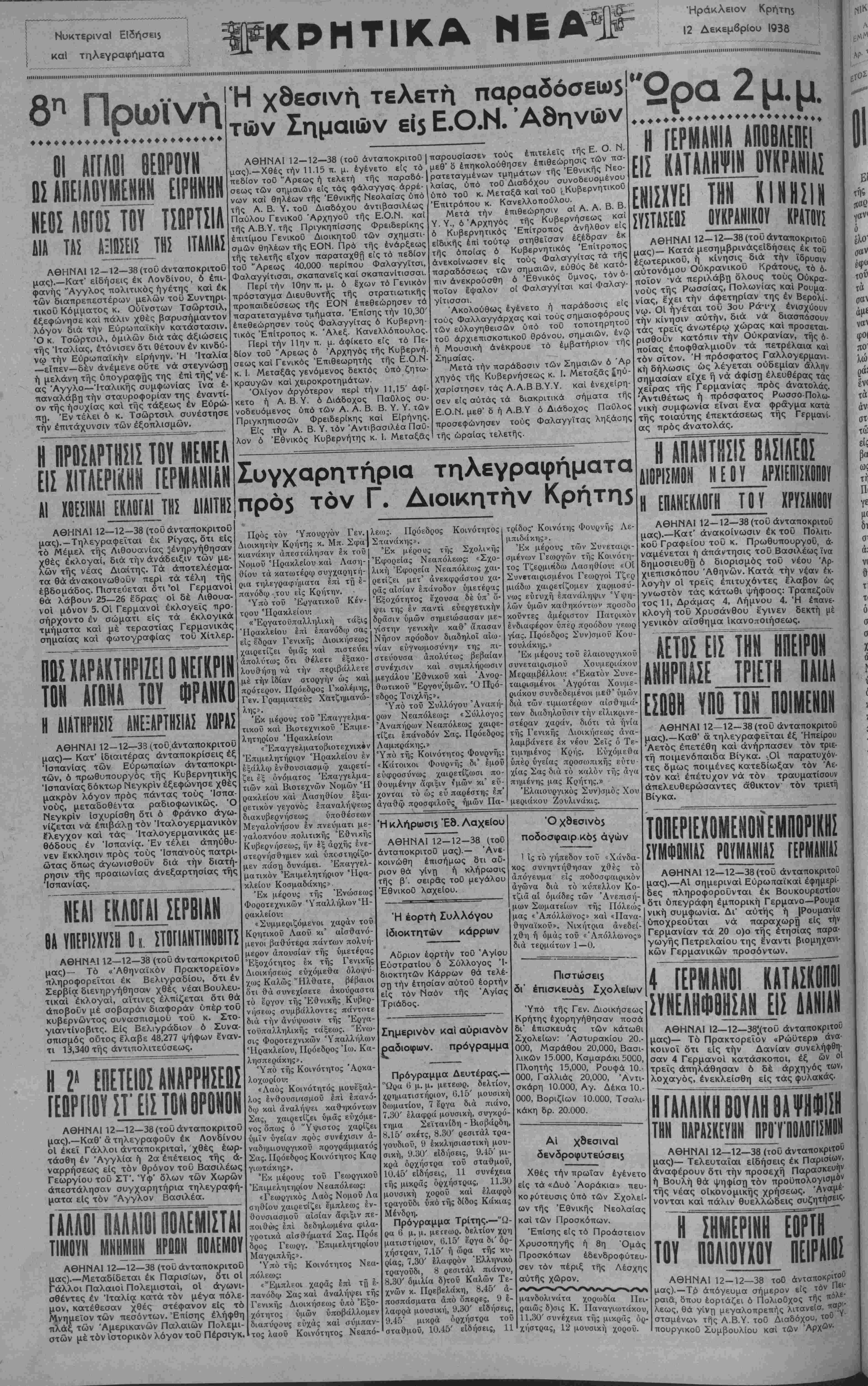 ΑΘΗΝΑΙ 12—12—38|(τοΟ ανταποκριτού