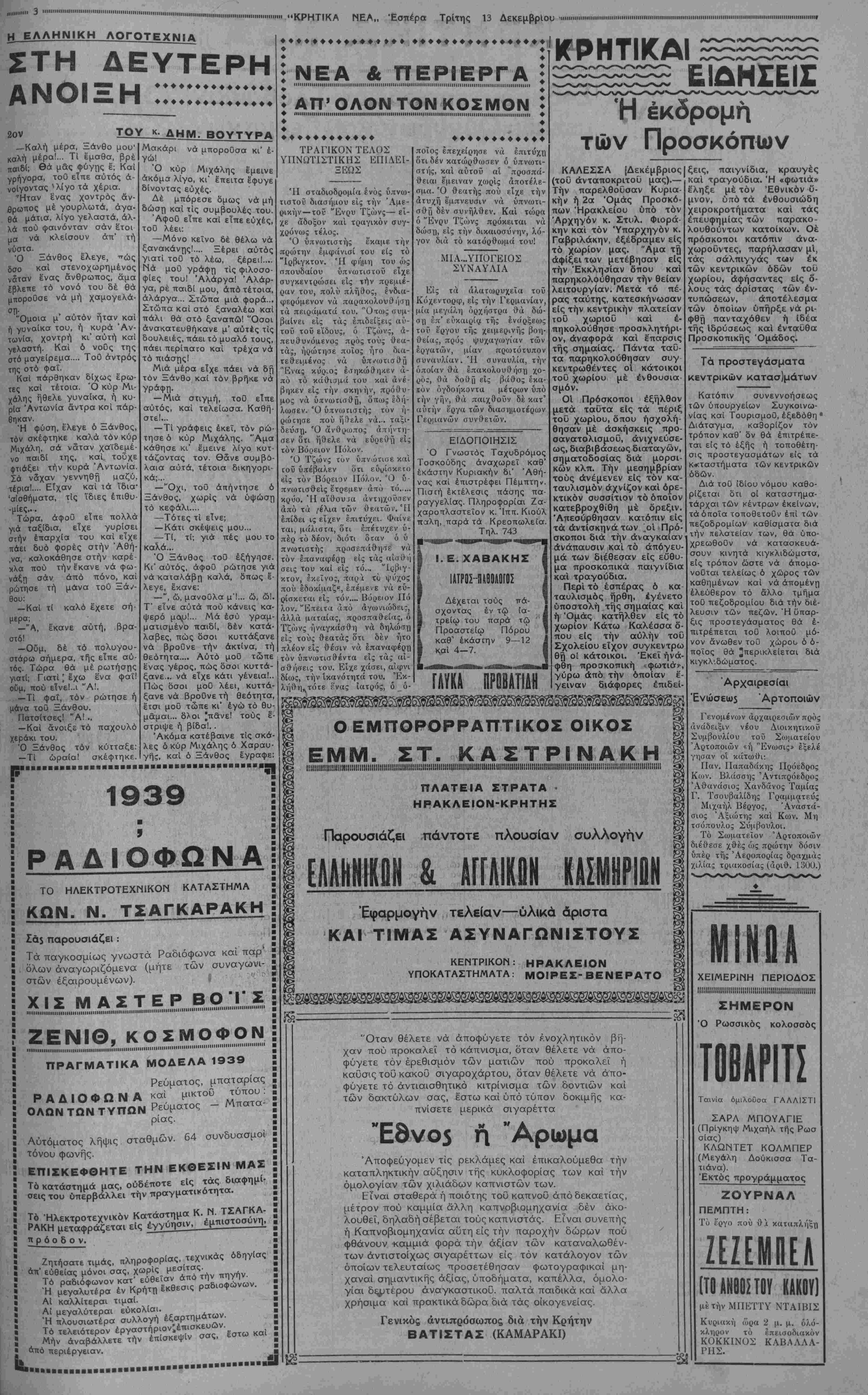 ΑΘΗΝΑΙ 13—12—38 (του ανταποκριτού