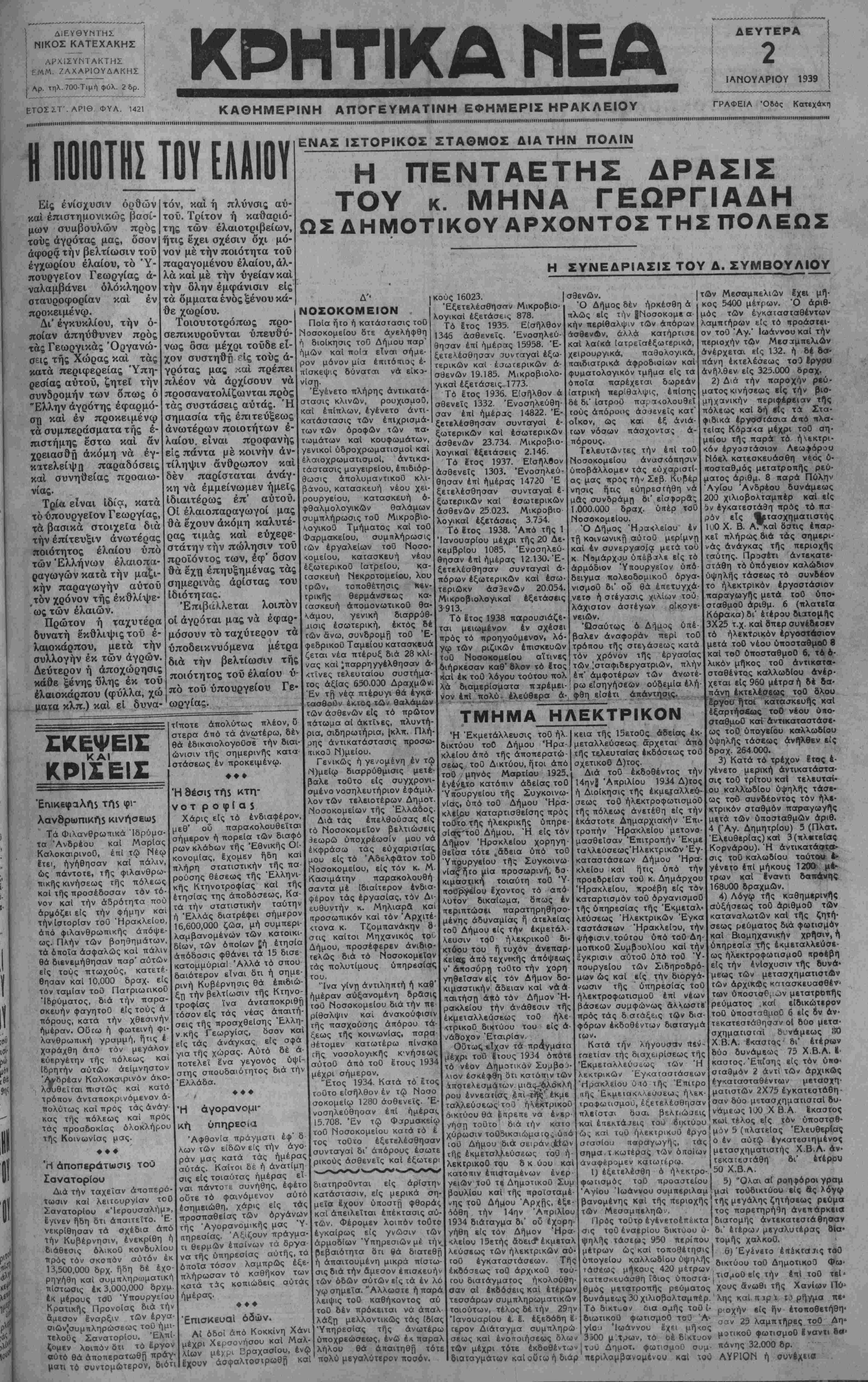 τείας Κ6ρα<α μέχρι τοΟ ση¬ μείου τής παρά τό ήνεκτρι- κόν έργαστάσιον Λεωφόρου Νόβλ κατεσκευάσθη νέος υ¬ ποσταθμός μετατροπής ρεύ¬ ματος αριθμ. 8 παρά Πύλην "Αγίου Ανδρέου δυνάμεως 200 χιλιοβολταμπέρ καί είς !)ν έγ<ατεστάθη προς τό πα ρόν εις φτασχηματιστής Η)0 Χ. Β. Α. καί δστις επαρ¬ κεί πλήρως διά τάς σημερι¬ νάς άνάγκας τής περιοχής ταύτης. Προσέτι άντεκατε- στάθη τό όπόγειον καλώδιον υψηλής τάσεως τό συνδέον το ήλεκτρικόν έργοστάσιον παραγωγής μετά τοΟ ΰπο· σταθμοΟ αριθμ. 6 (πλατεία Κόρακα) δι' ετέρου διατομής 3X25 τ.χ. καΐ δπερ συνέ&εσεν τό ήλεκτρικόν έργοστάσιον μετά τοΟ νέου ΰποσταθμοΟ 8 καί έκ τοΟ λόγου τούτου πολ' έπ' αμφοτέρων τών άνωτέ- λά διαμερίσματα π ζρέμει-' ρω εισηγήσεων ουδεμία έλη νσν έπί πολύ- ελεύθερα ά·, φθη είσέτι απάντησα^ ΤΜΗΜΑ ΗΛΕΚΤΡΙΚΟΝ Ή 'Εκμετάλλευσις τοΟήλ. |κεια τής 15ετο0ς άδειας εκ¬ λλύ ά ά δικτύου τοΟ Δήμου Ηρα¬ κλείου άπό τής άποπερατώ- σεως τοΟ Δικτύου, ήτοι άπό του , μηνός Μαρτίου 1925. έγένε,το κατόπιν αδείας τοΟ Ύπ'όυργείου τής Συγκοινω¬ νίας, ύπό τοΟ Δήμου "Ηρα- κλεϊρυ καταρτισθείσης προς τοΟτο τής ήλεκρικής υπηρε¬ σία^*™0 Δήμου. "Η είς τόν Δή^ιον "Ηρακλείου χορηγη¬ θείσα τότε ,αδεία ύπό τοΟ Υπουργείου τής Συγκοινω νίας'ή'το μία προσωρινή, δο¬ κιμαστική, τοιαύτη τοΟ Ύ· ποσργέίου Ιχοντος τό από¬ λυτον δικαίωμα, δπως έν περιπτώσει παρατηρηθήσο- μένης αδυναμίας ή άτελείας Δήμου είς τήν έκμετάλ- λευσιν τοΟ ήλ.εκρικοΟ δι¬ κτύου του ή τυχόν άνεπαρ- ί5 άπό τεχν*κής απόψεως ν" Λποσύρη τοΟτο τήν χορη γηθεΐσαν εις τόν Δήμον δο- κιμαστικήν άδειαν καί νά ά ιταιτήση ά^ιό τόν Δήμον "Η¬ ρακλείου |ήν άνάθεσιν τής εκμεταλλεύσεως τοΟ ήλε- κτρικοΟ δικτύου του είς ά· δ Έταιρίσν. Τ δοχον Έταιρίσν. ΟΰτωςίΤχον τά πρ^γμαια μέχρι τοΟ 6ιους 1934 όπότέ τό νέον Δημοτικόν Συμβο^· λιον έσκέφθ'η δτι κατόπιν ιών Αποτελεσμάτων. μια^Γ·6^λόκλή ρου έννεαιίας ^πι<τϊ^', έκμβ ταλλεύσεως'τοΟ" ήνέκτρικοΟ όικτϋου θά έπρεπε να έ^ερ- ήη τοΰΐο 6ιά τήν καίο χύρωσιν το05ικαιώμαιοςιύπό ιού Δήμου διά σειράν^ών της έκμετσλΚ&ύσεως τοΟ ή- λεκτρικοΟ του δ κ ύου καί κατόπιν επισταμένων ενερ¬ γειών του τ« Δημοτικοί) Συμ βαυλίου καί τής προϊσταμέ¬ νης τοΟ Δήμου "Αρχής, εξε¬ δόθη τήν Μην "Απριλίου 1934 διάταγμα δι' οδ έχορη- νήθη είς τών Δήμον "Ηρα¬ κλείου 15ετής άοεισ> έκμεταλ