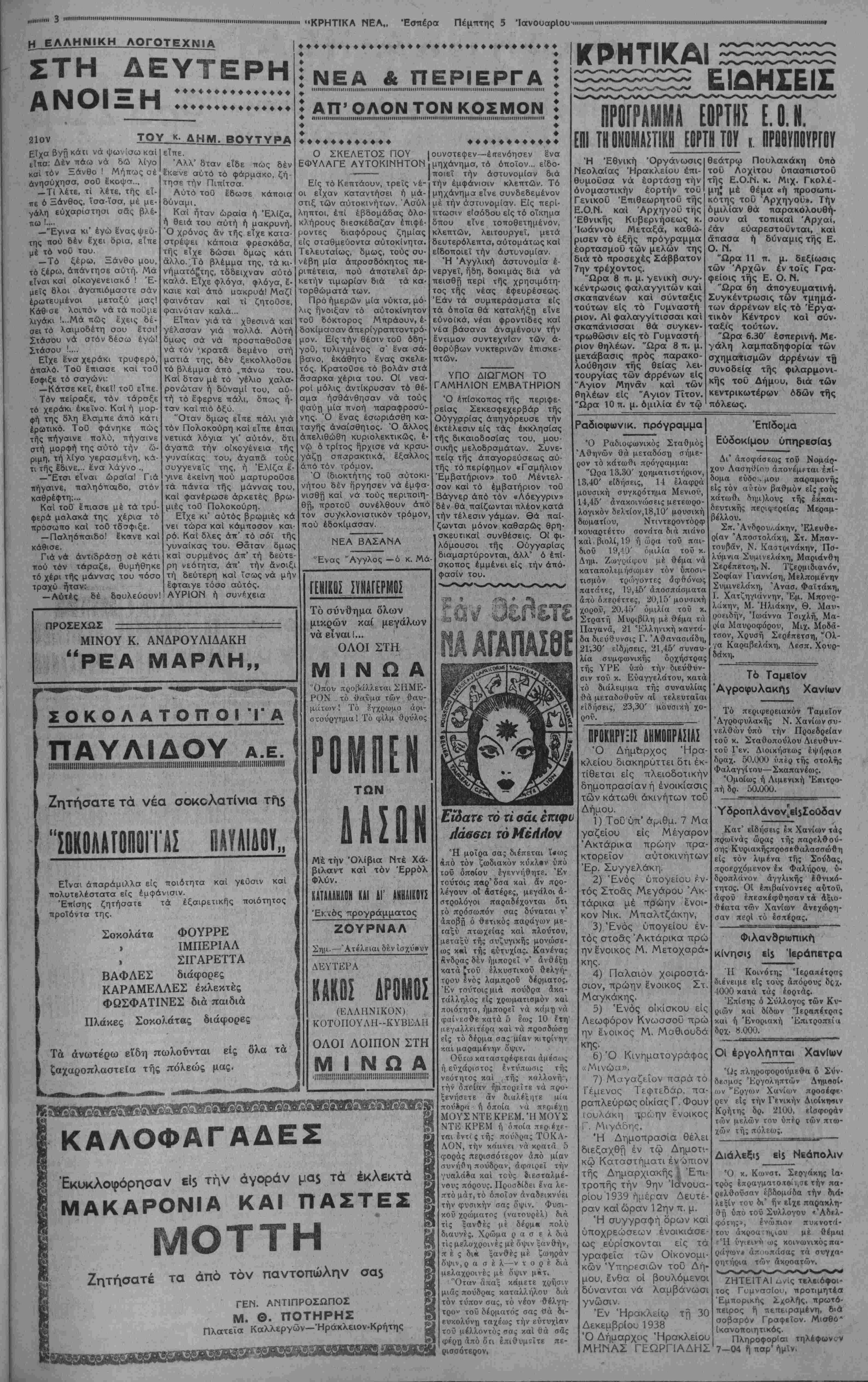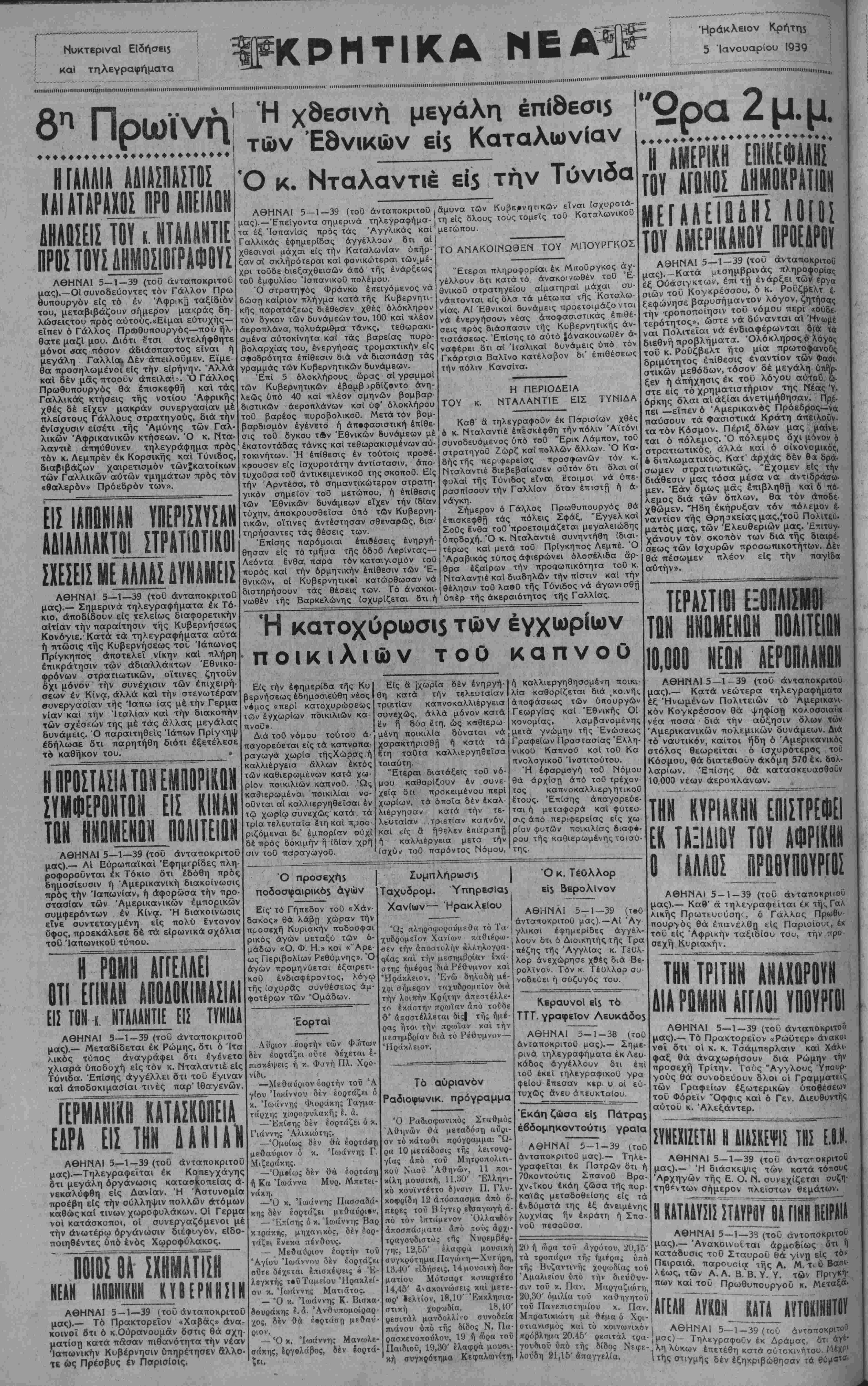 ΑΘΗΝΑΙ 5-1-39 (τοΰ ανταποκριτού