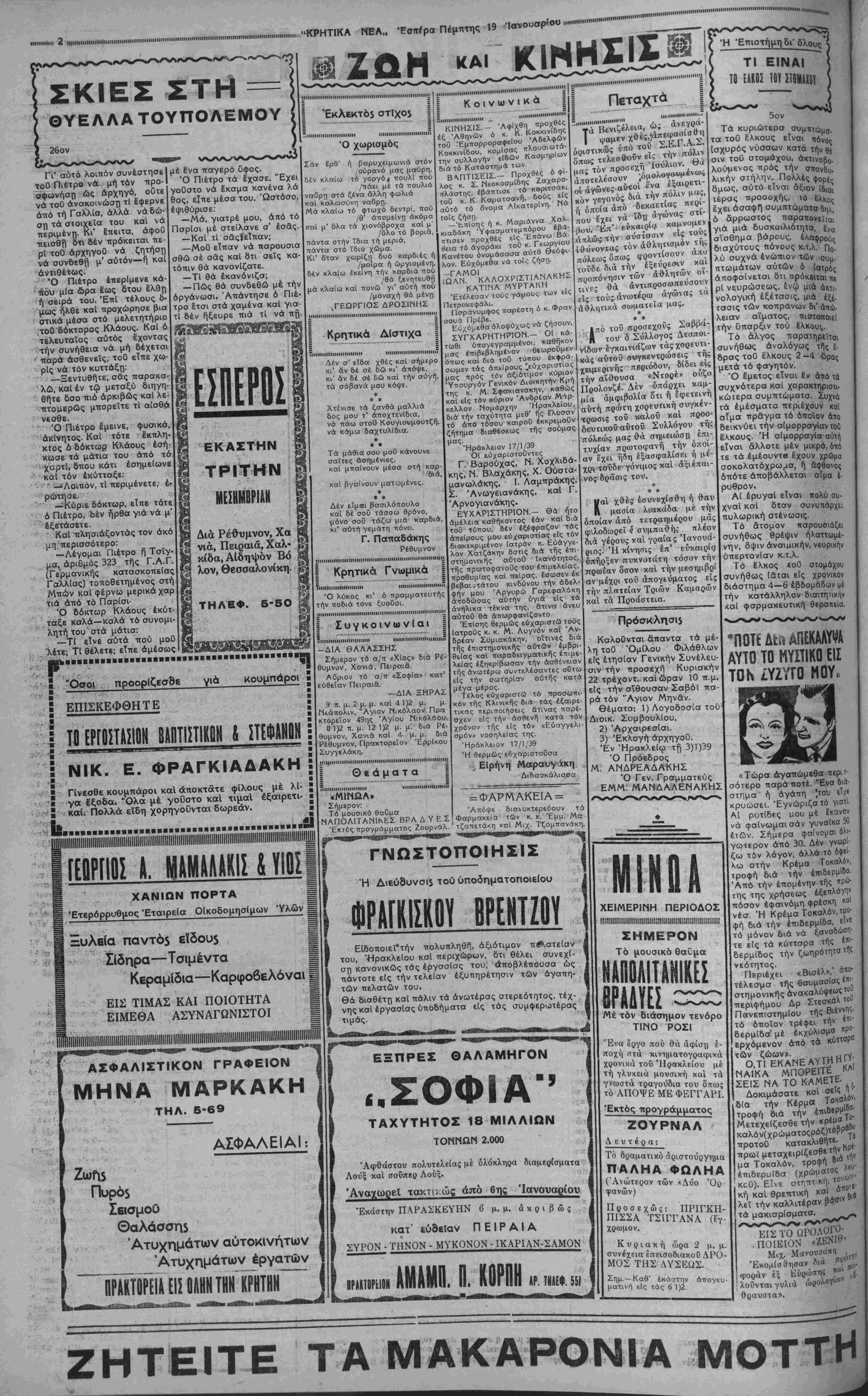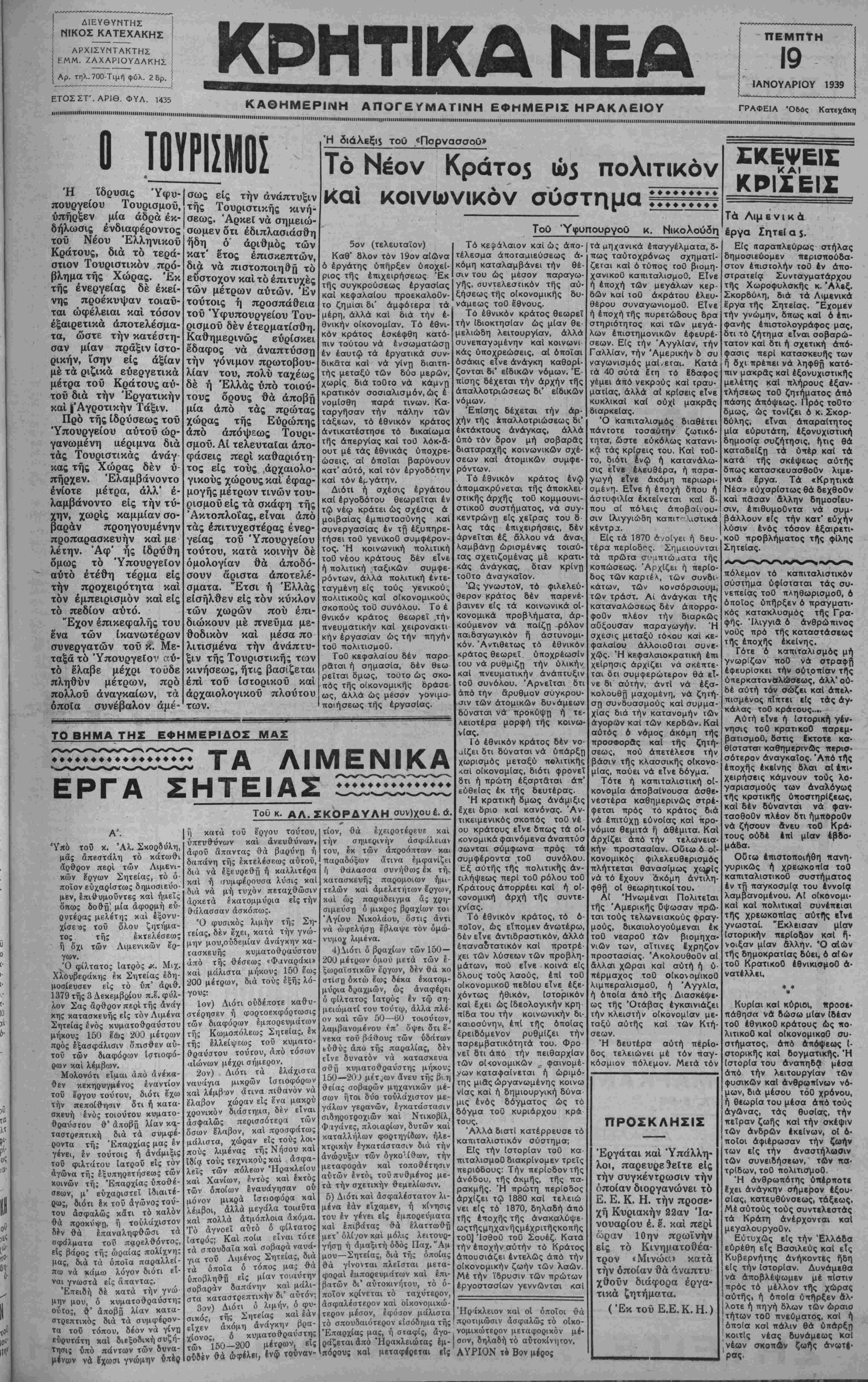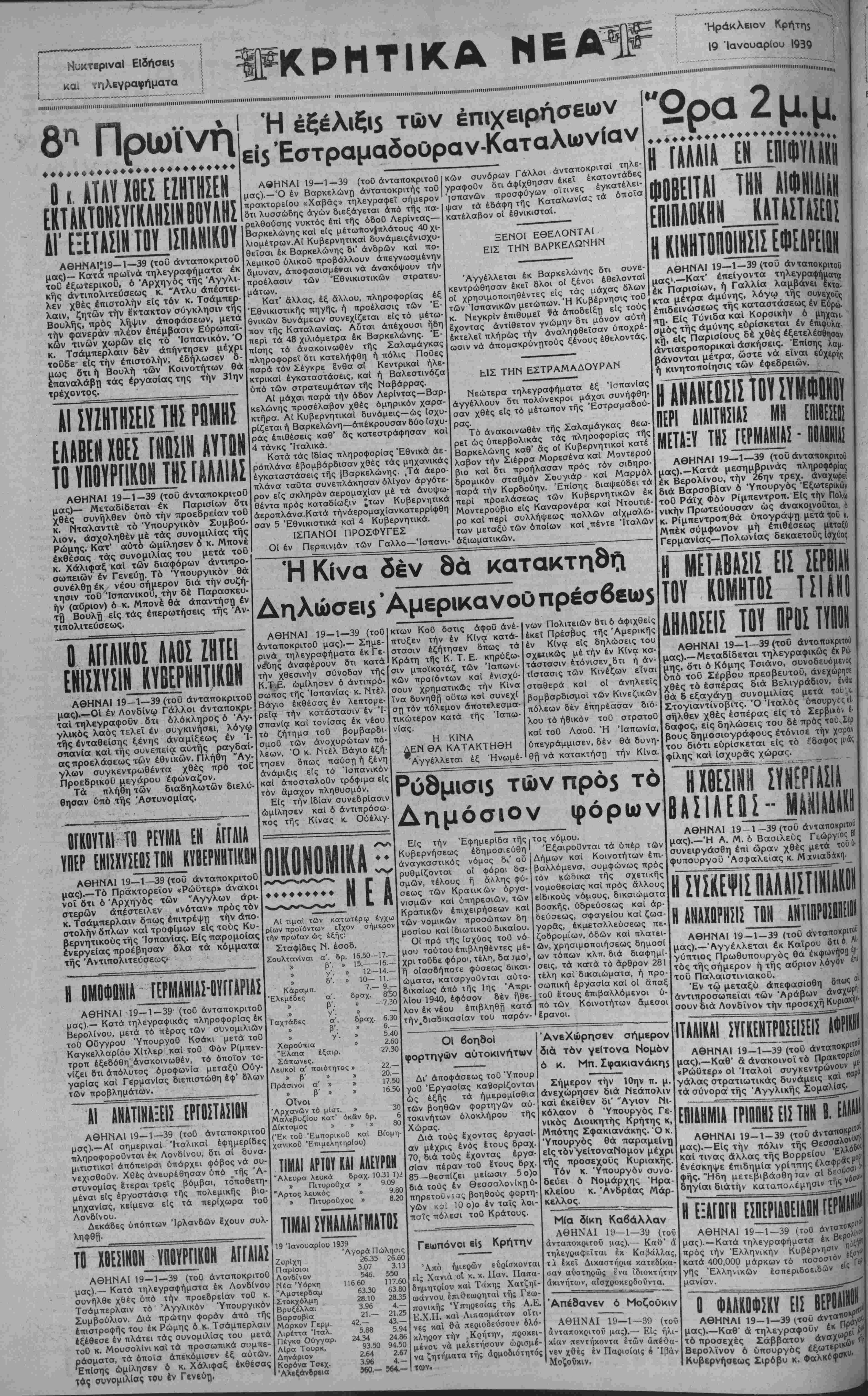 ΑΘΗΝΑΙ 19—1—39 (τοΰ άνταποκριτοϋ