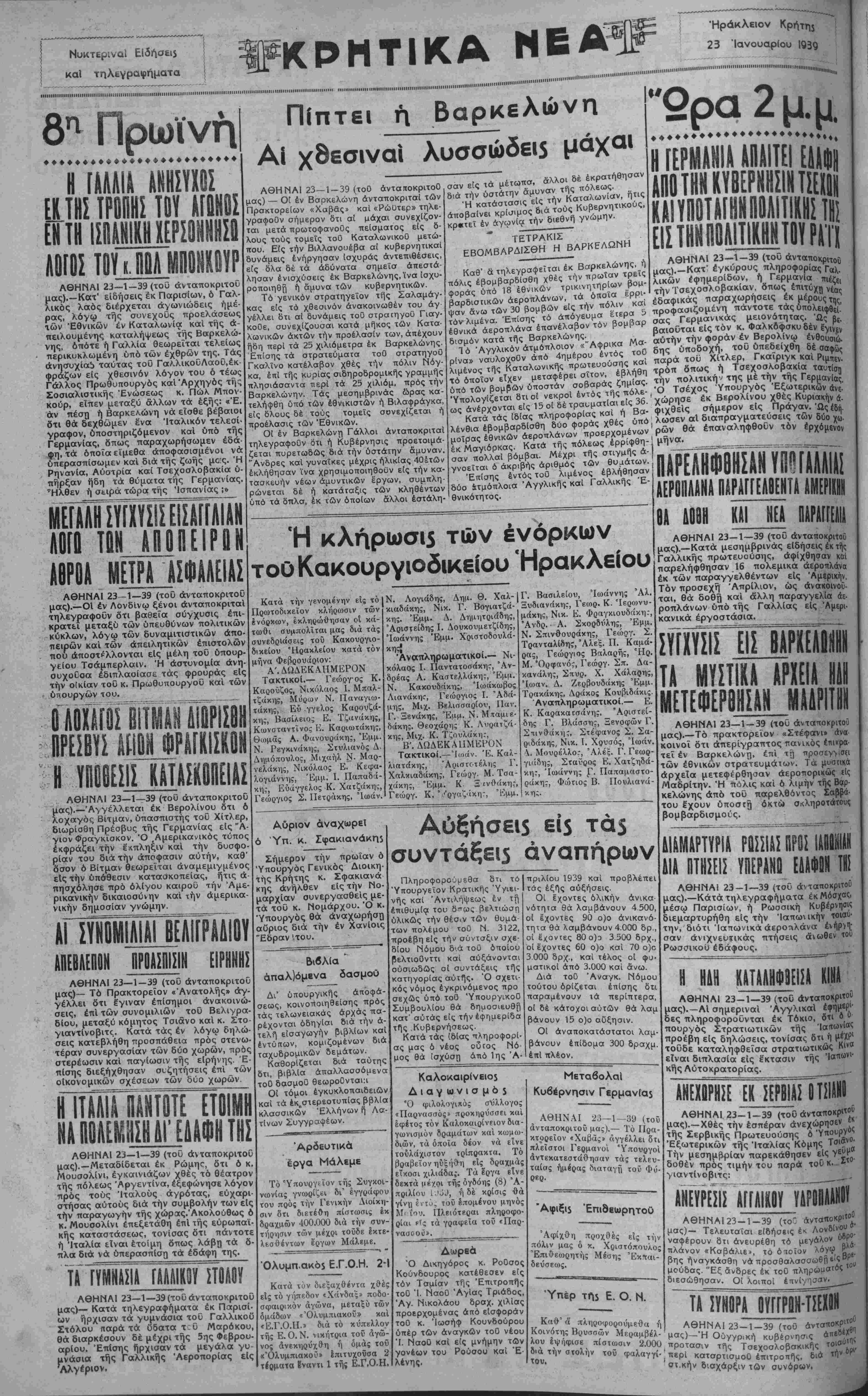 ΑΘΗΝΑΙ 23—1—39 (του ανταποκριτού