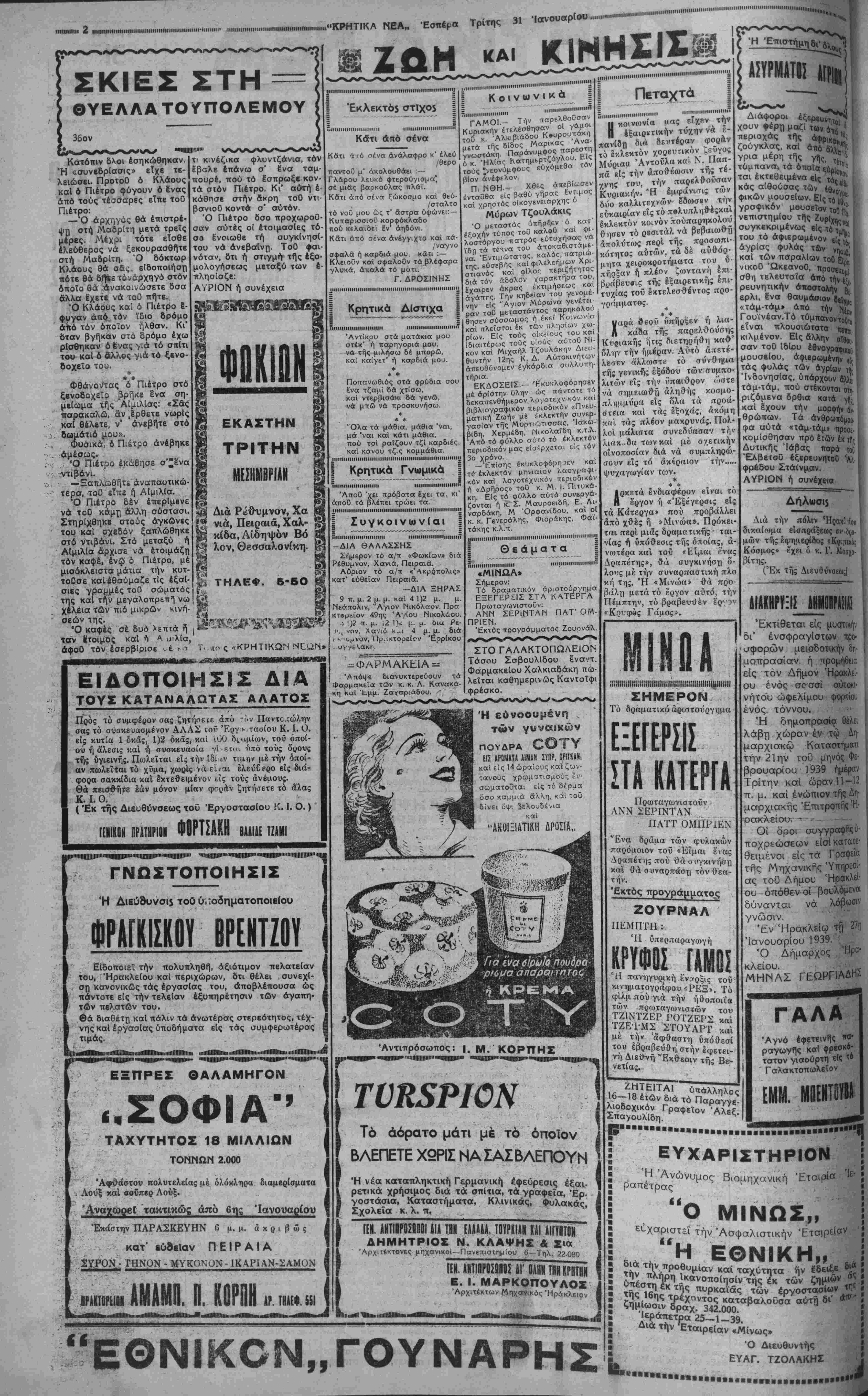 ΑΘΗΝΑΙ 31—1—39 (τοΟ άντοποκριτοί